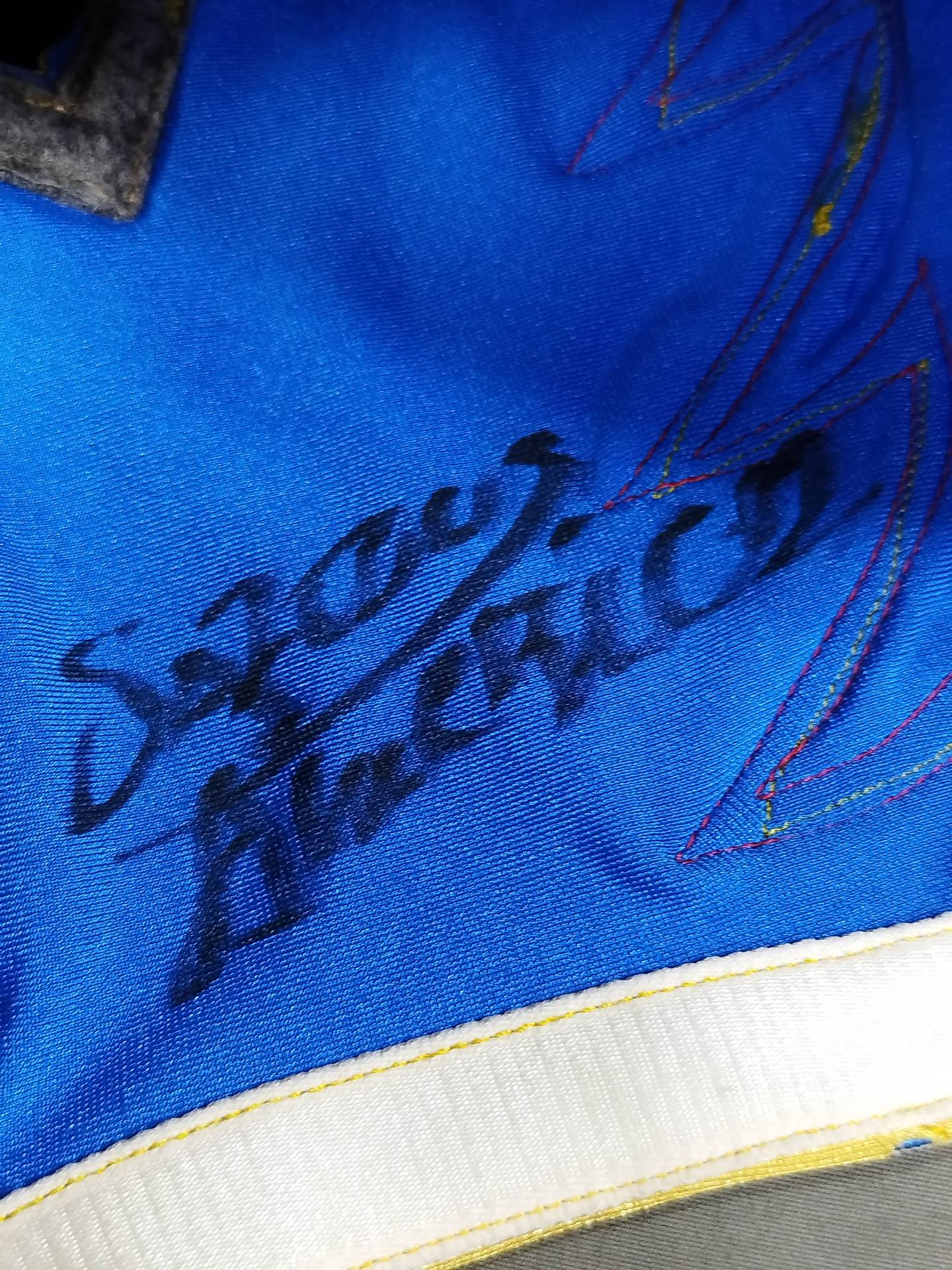Signed Yellow & Blue Leotard 2 Fabric Red Edge & Yellow Edge & Blue Edge
