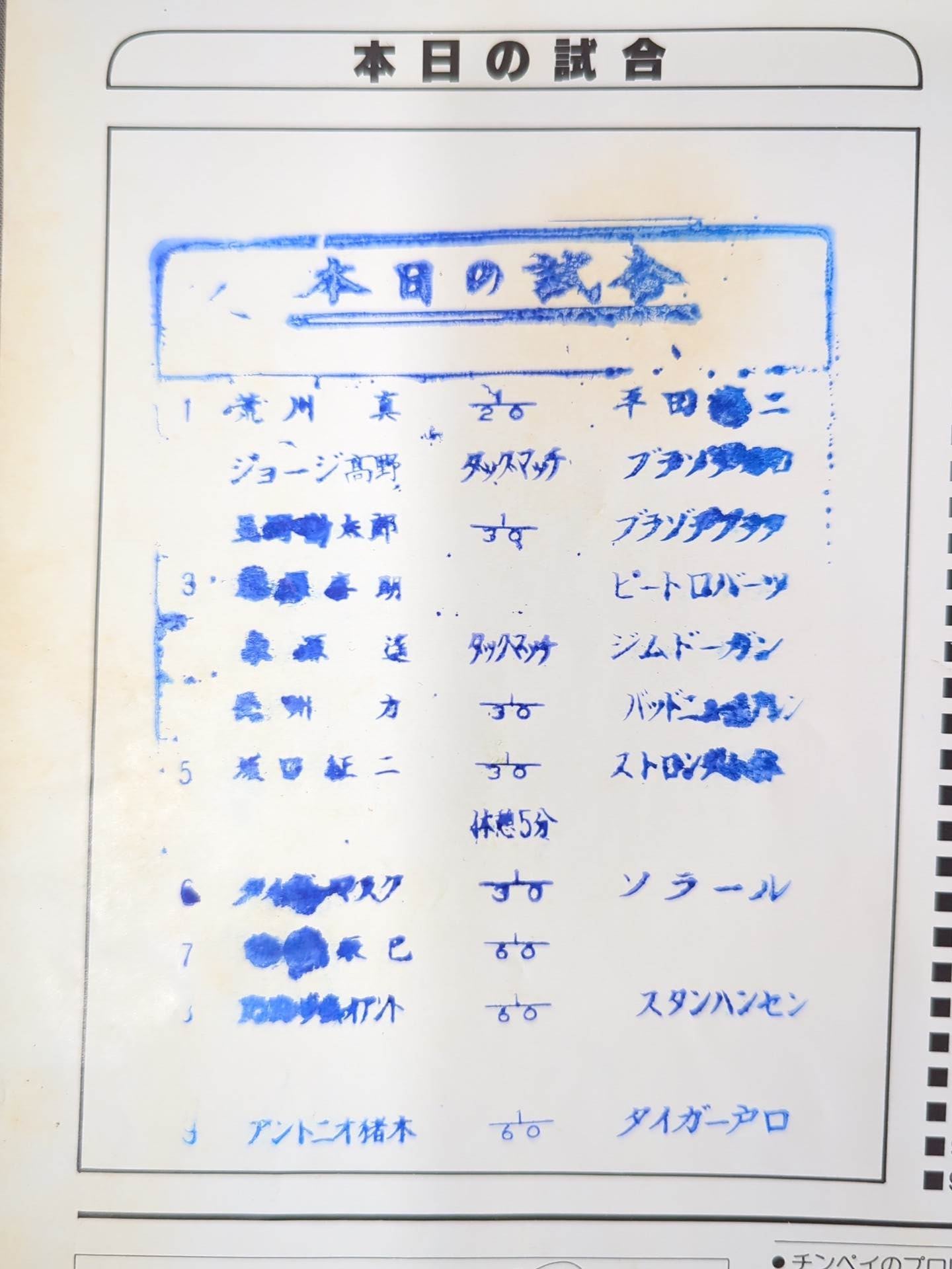 Venue: Rural Coliseum / stamped with list of matches :Antonio Inoki vs Tiger Toguchi / Andre the Giant vs Stan Hansen