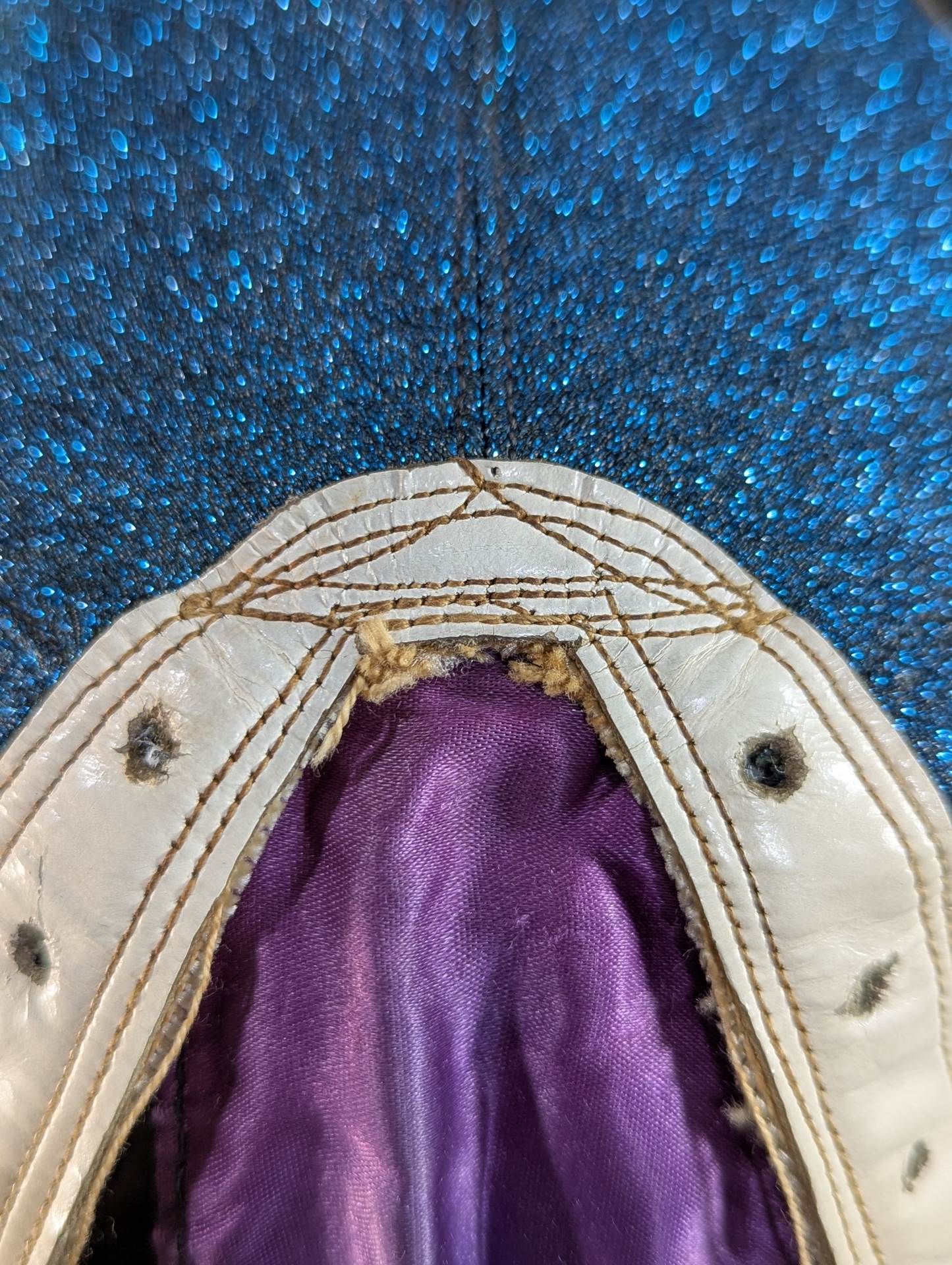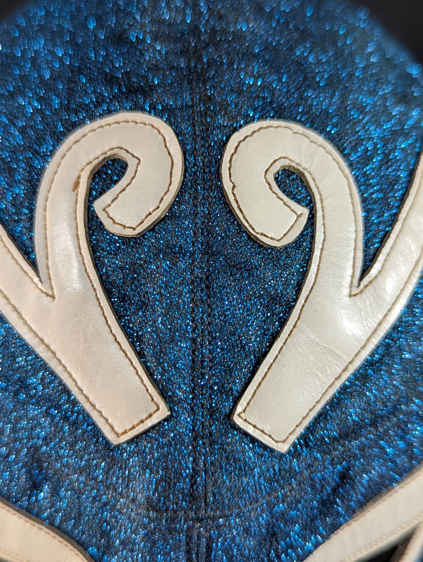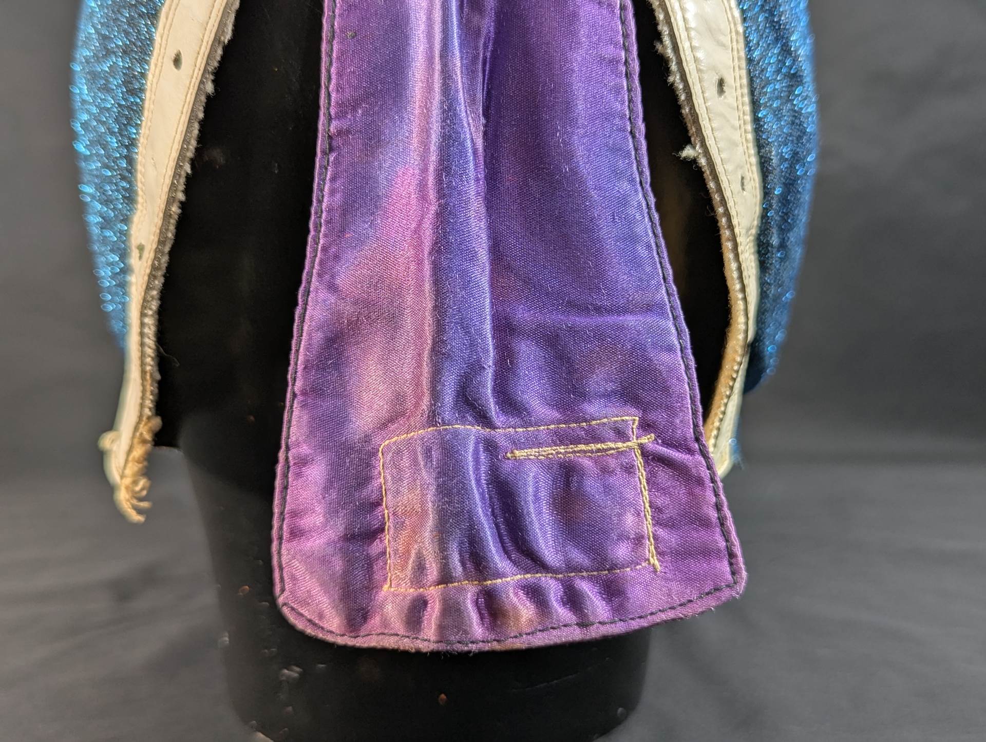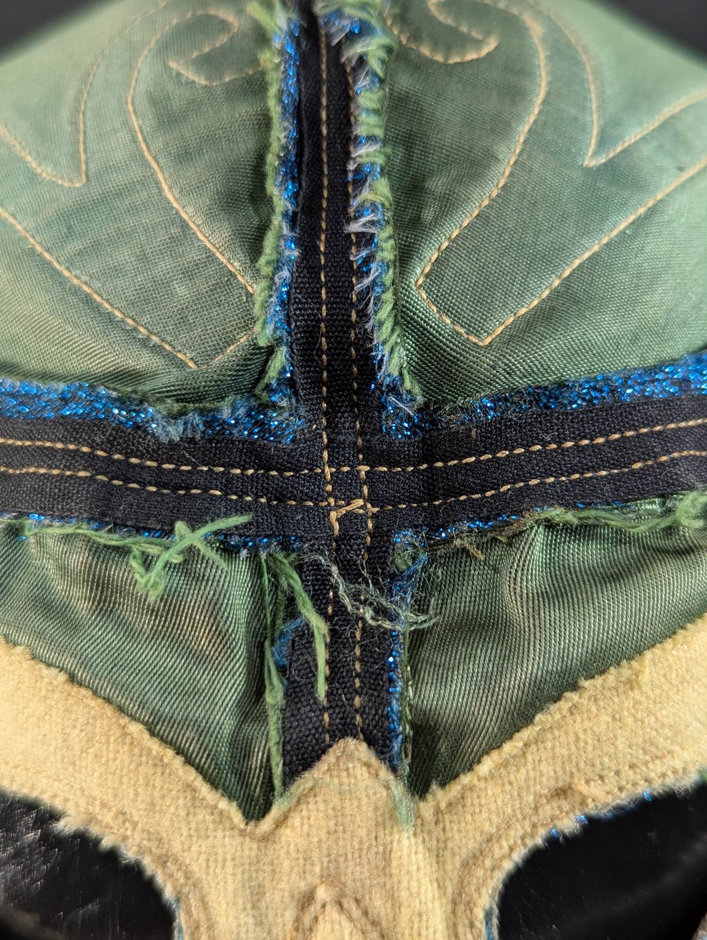 ★ worn by him !! 70s Original ★ Blue Briot Salame 2-layer fabric (lining is dark green old satin fabric) White leather edge The tongue is made of purple satin fabric, the throat tape is 1.5 cm wide and has dark yellow-green top and bottom W stitching ~Mysterious Mask Art~ The actual mask published on page 9 of the Lopez edition and page 6 of the Mexican Lucha Libre edition of the same book The actual mask that he kept for many years even after his retirement Since it has a double structure, it seems to have been produced around 1970 ~ 1972.