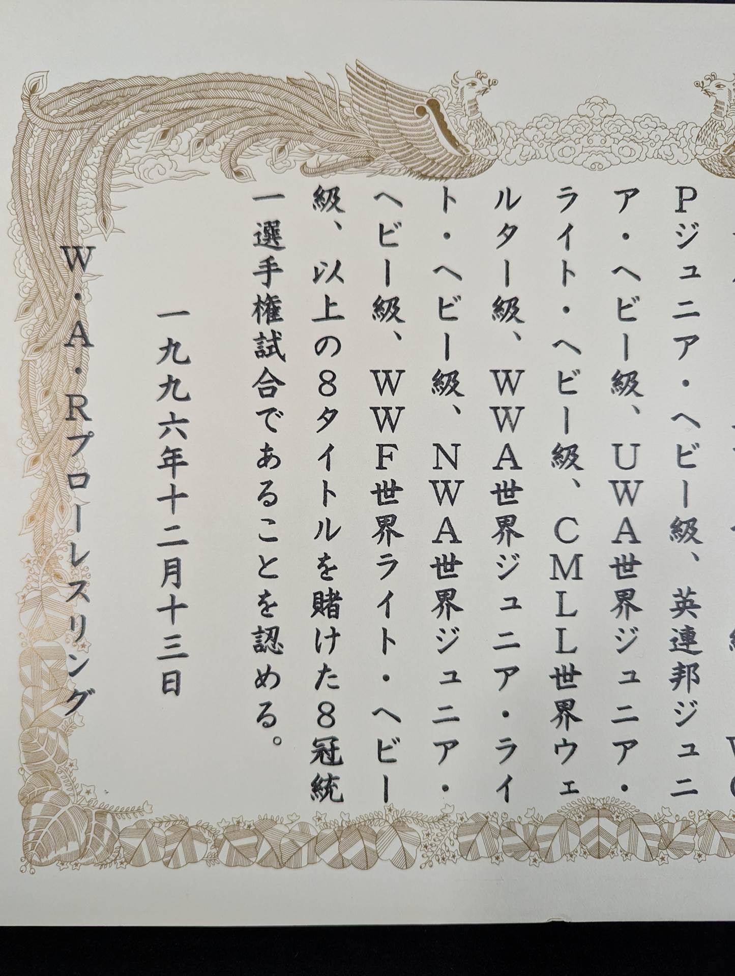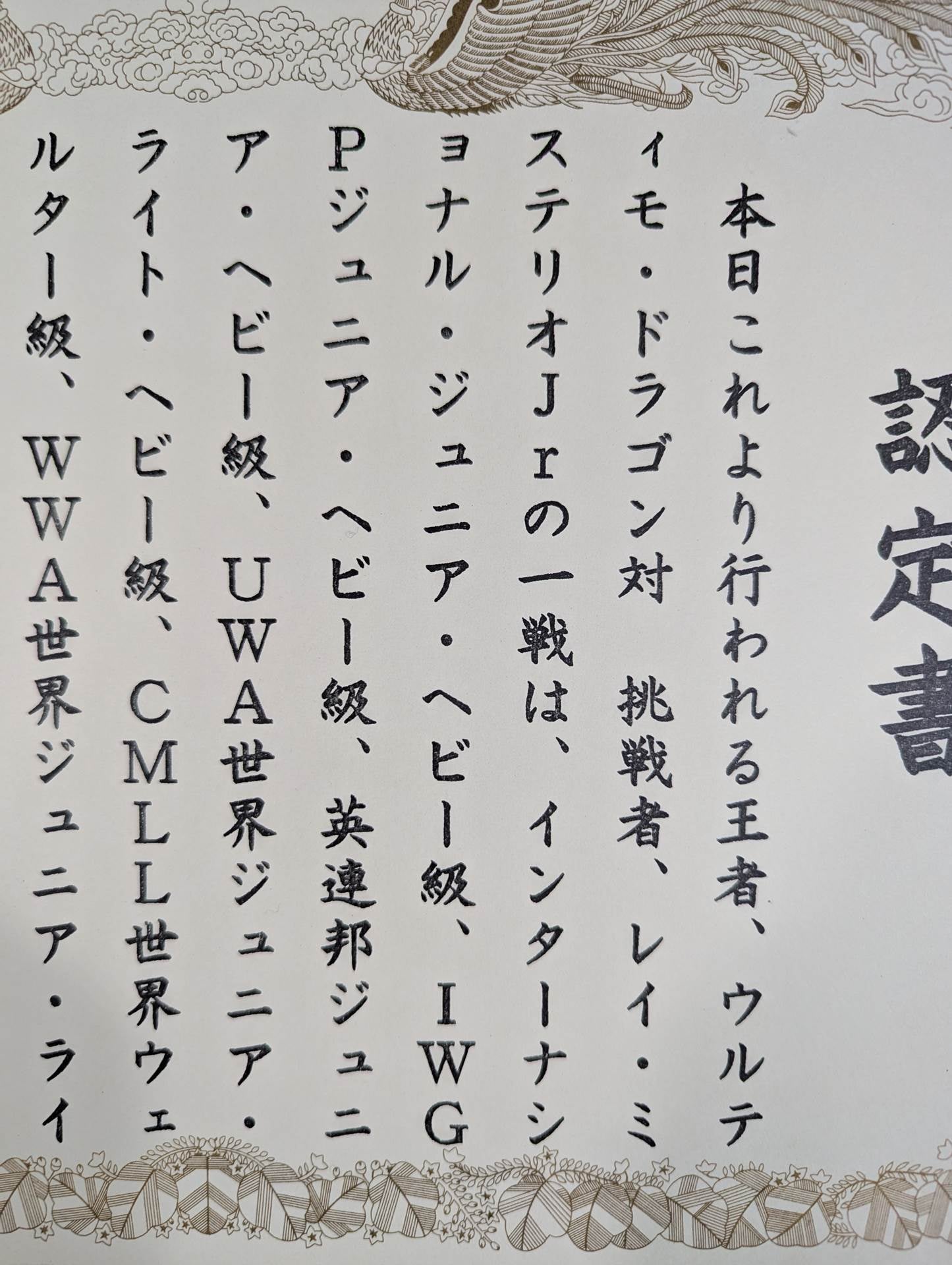 ★ Ultimo Dragon vs. Rey Mysterio Jr ★. 8 Crowns Unified Junior Heavyweight Championship Certificate of fighters right match