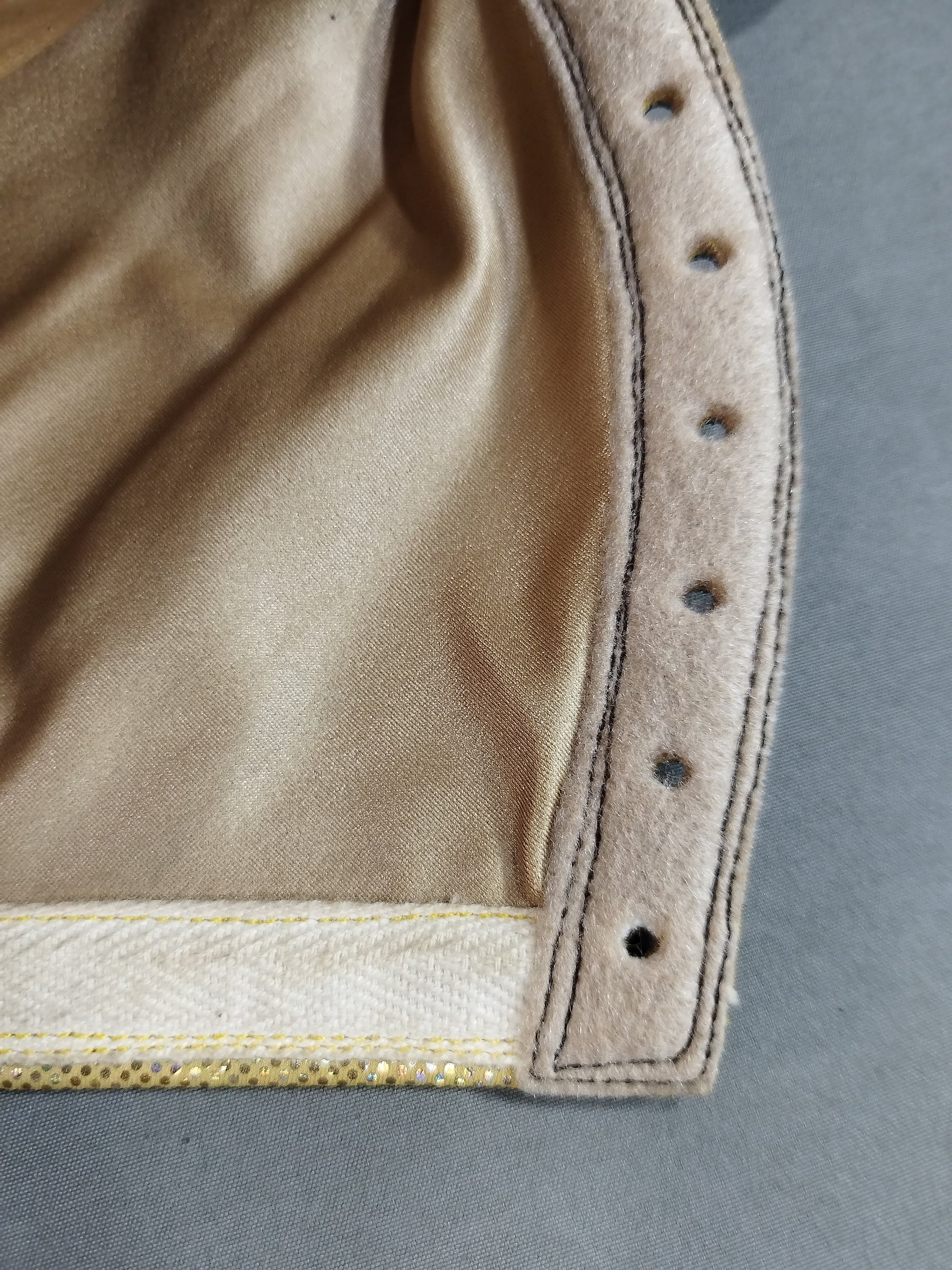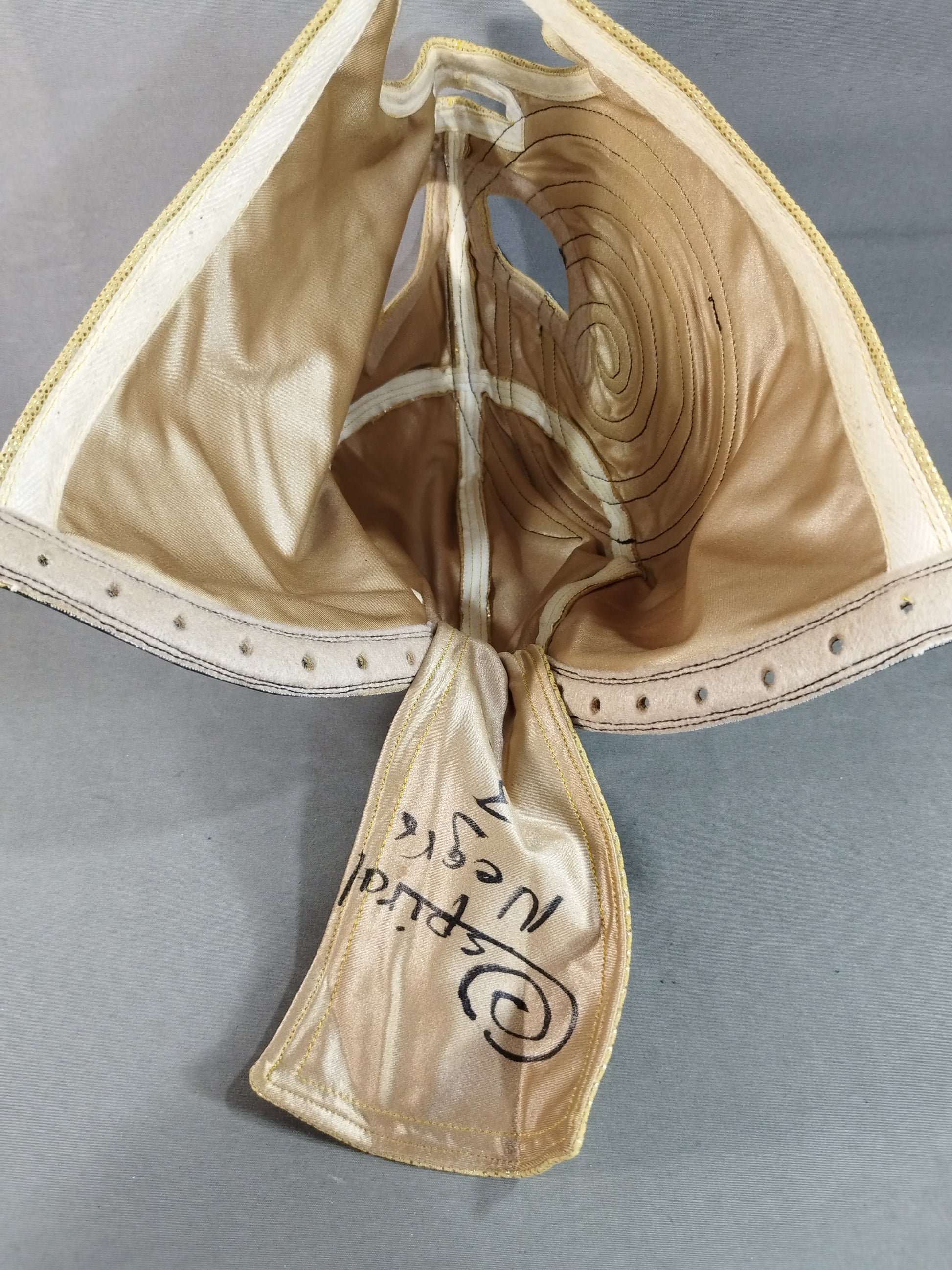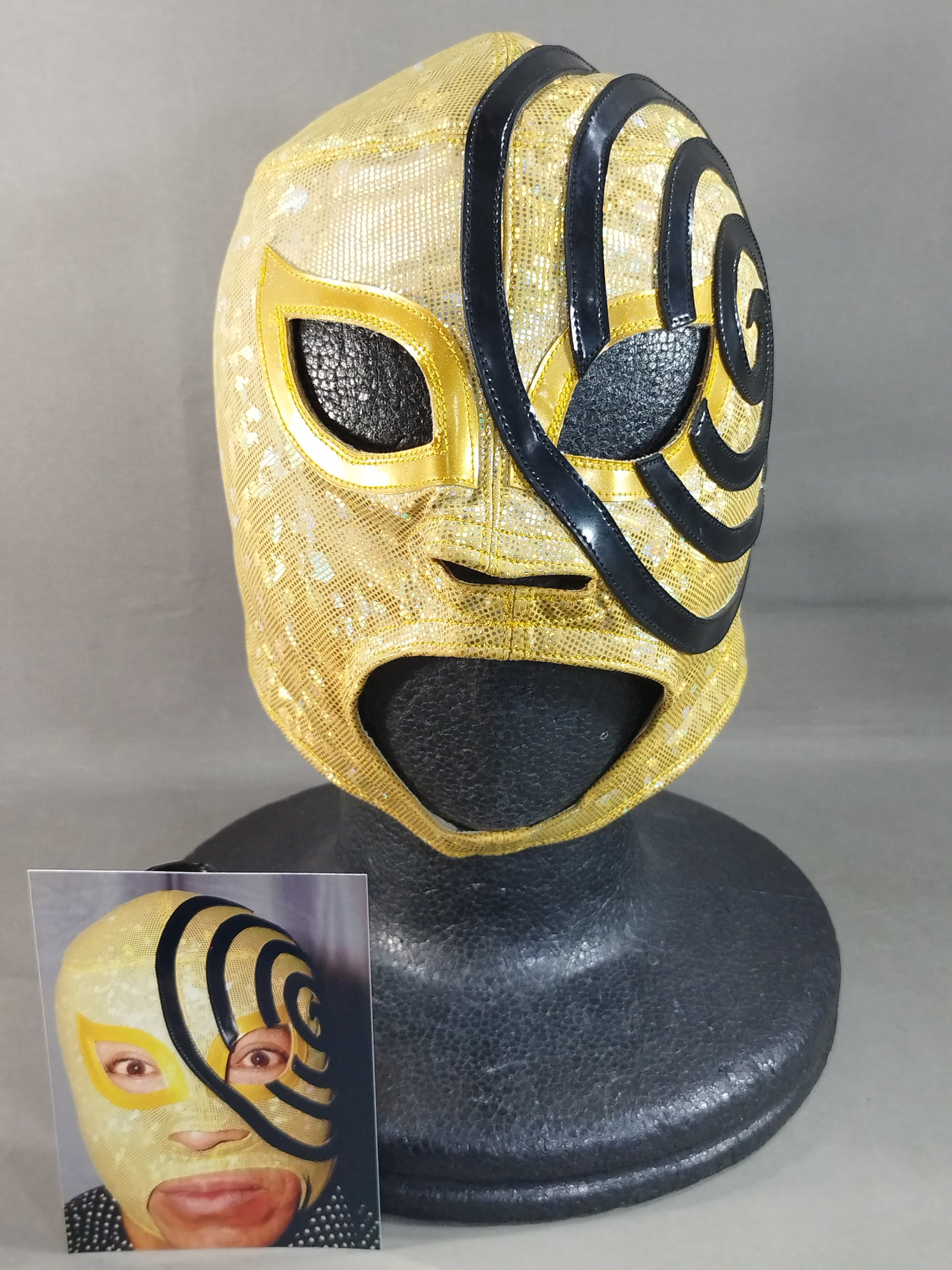 Signed by the person wearing it with wearing photo Gold special leotard double fabric black edge