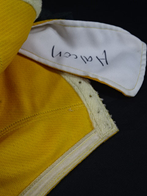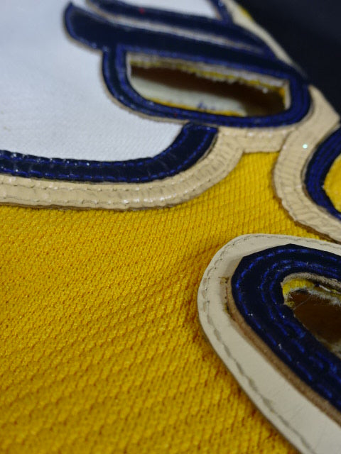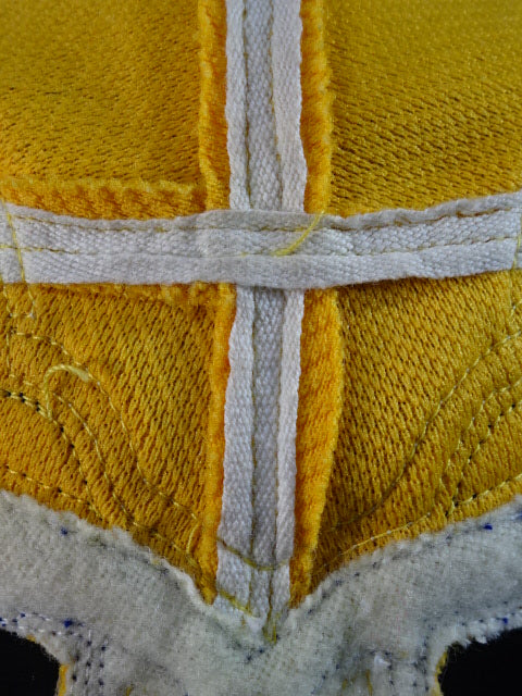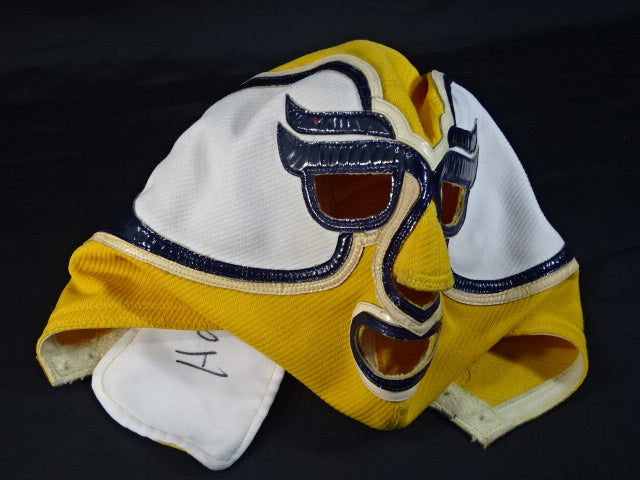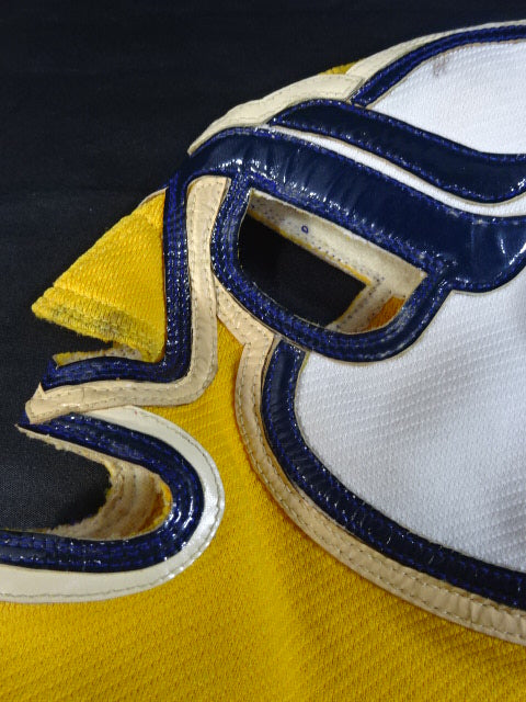 ★ worn by him !! 70's Original ★ Signed Yellow Tellenka Jersey Fabric & White Tellenka Jersey Fabric Dark Blue Leather edge & light beige leather edge (white) The tongue is made of yellow terlenca jersey fabric and white jersey fabric The throat tape is a plain color with a height width of 1.5 cm Jose Luis Mechor Ortiz used for a short time when he transformed into El Archon (original sound) Produced by Victor Romero Luna after 1973
