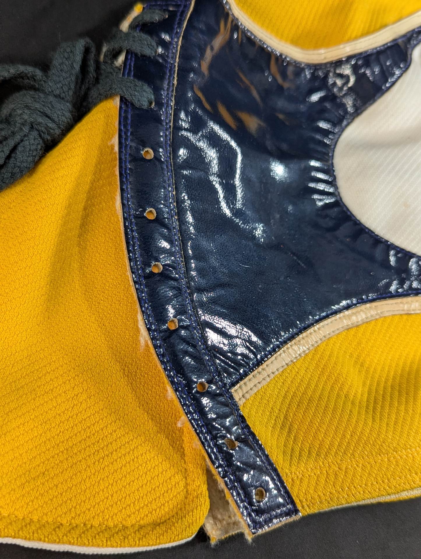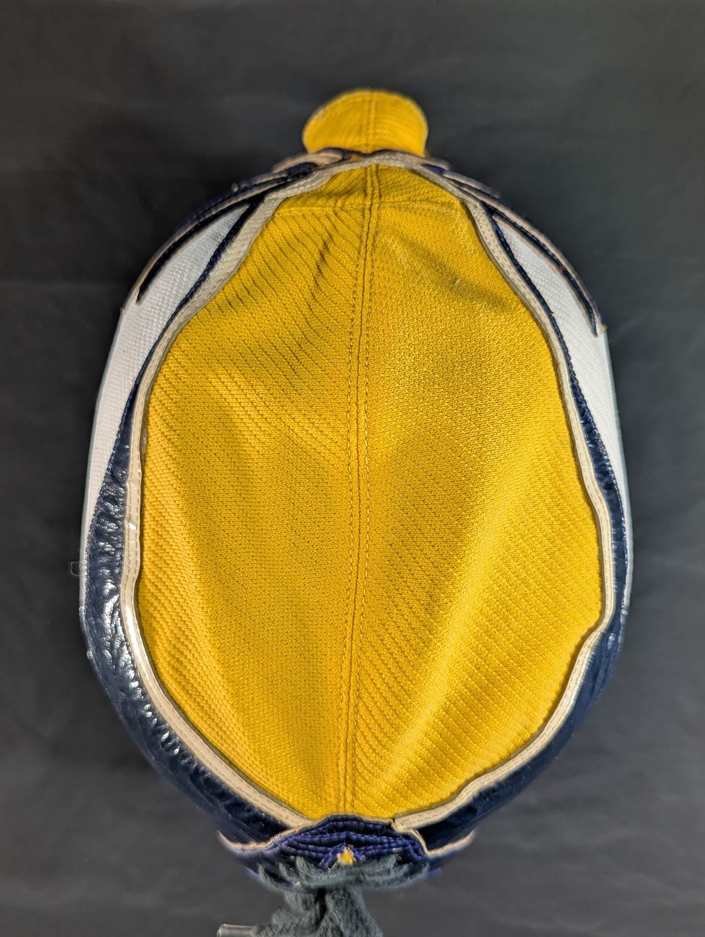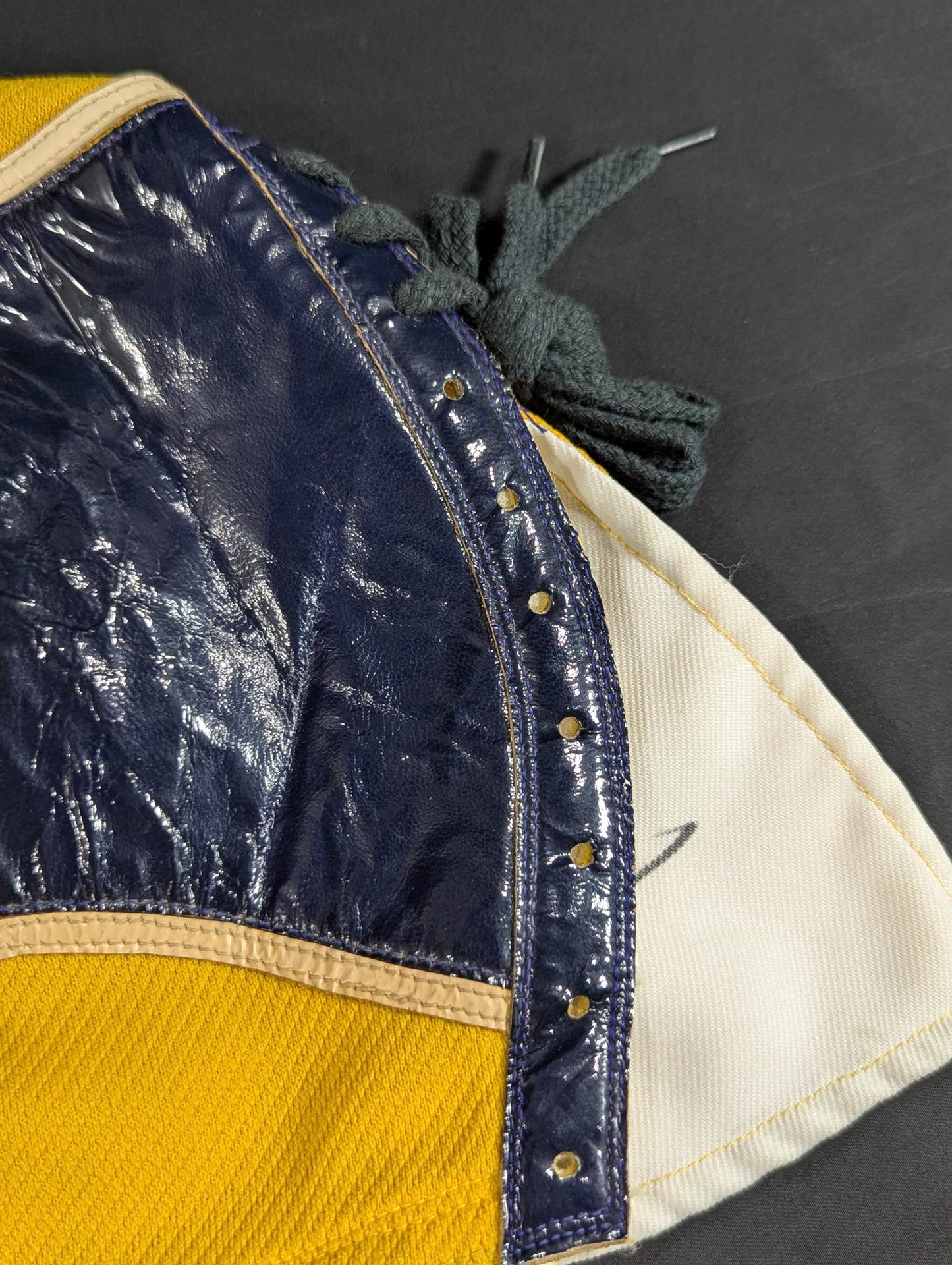 ★ worn by him !! 70's Original ★ Signed Yellow Tellenka Jersey Fabric & White Tellenka Jersey Fabric Dark Blue Leather edge & light beige leather edge (white) The tongue is made of yellow terlenca jersey fabric and white jersey fabric The throat tape is a plain color with a height width of 1.5 cm Jose Luis Mechor Ortiz used for a short time when he transformed into El Archon (original sound) Produced by Victor Romero Luna after 1973