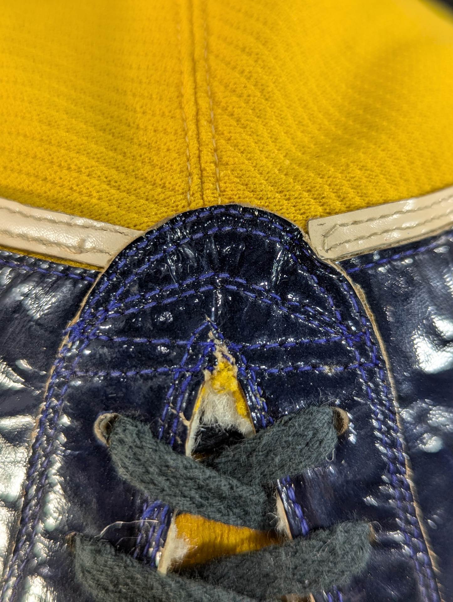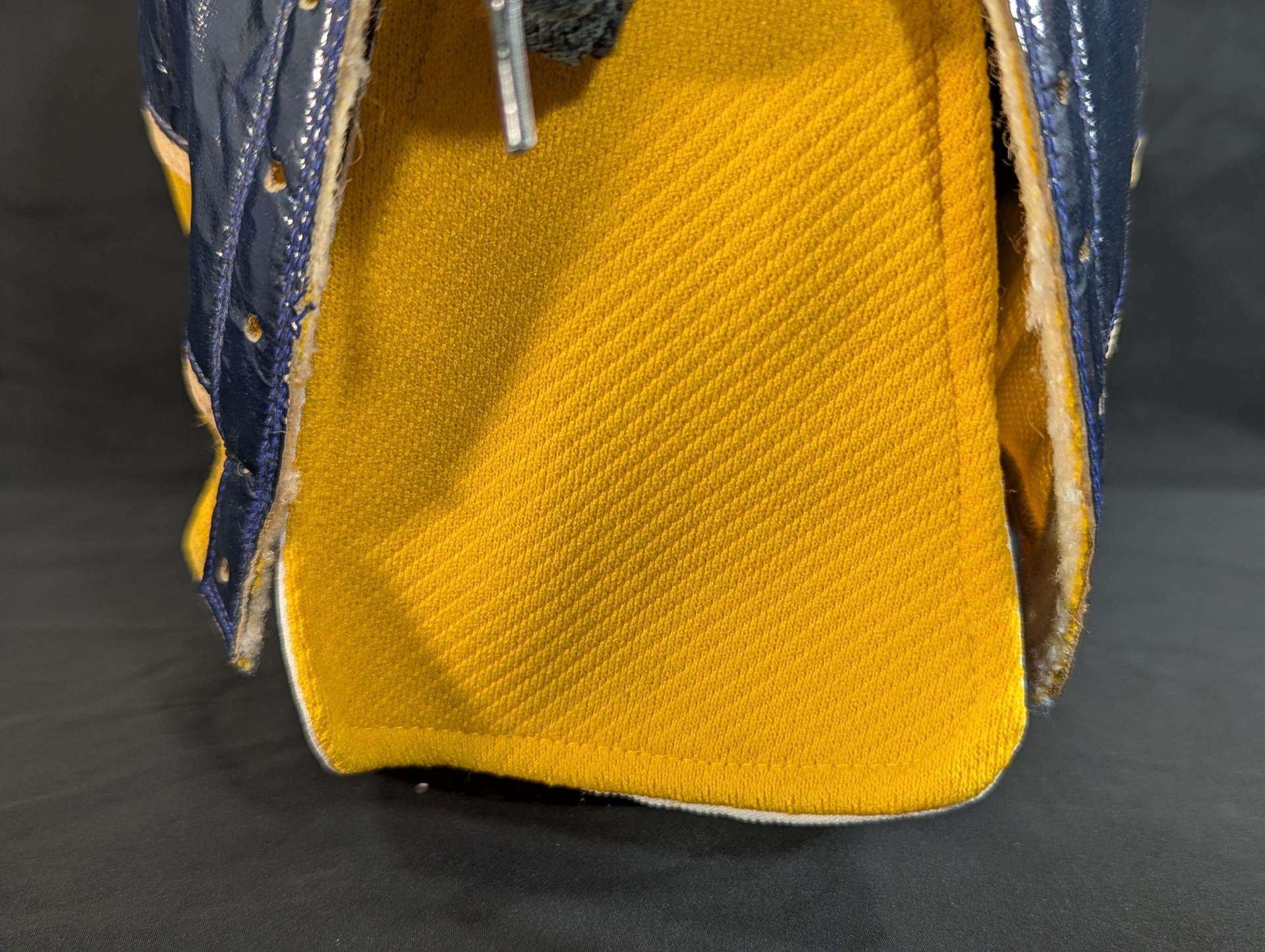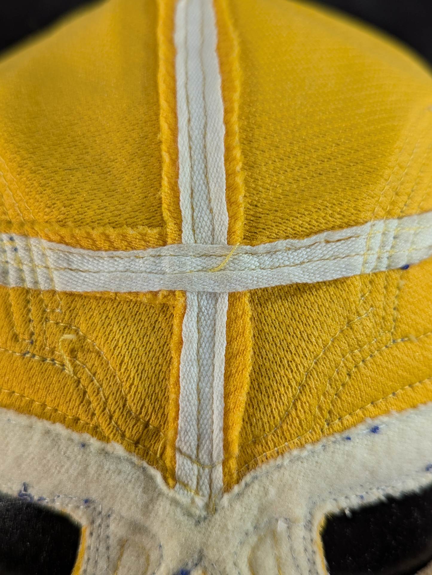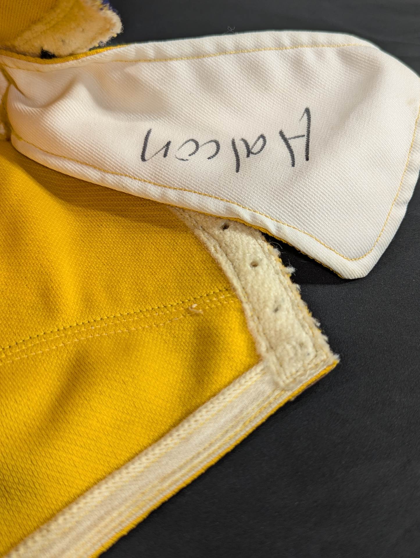 ★ worn by him !! 70's Original ★ Signed Yellow Tellenka Jersey Fabric & White Tellenka Jersey Fabric Dark Blue Leather edge & light beige leather edge (white) The tongue is made of yellow terlenca jersey fabric and white jersey fabric The throat tape is a plain color with a height width of 1.5 cm Jose Luis Mechor Ortiz used for a short time when he transformed into El Archon (original sound) Produced by Victor Romero Luna after 1973