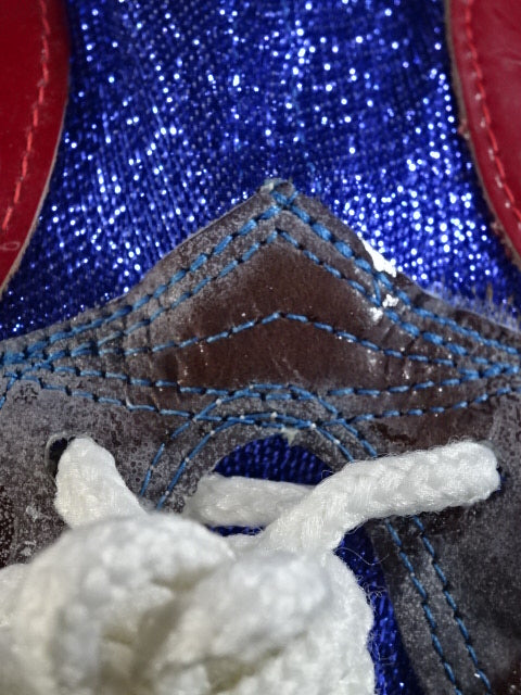 Signed blue glitter silver leather edge & red leather edge & white leather edge & dark green leather edge with rhinestone decoration