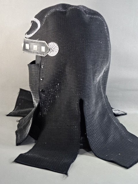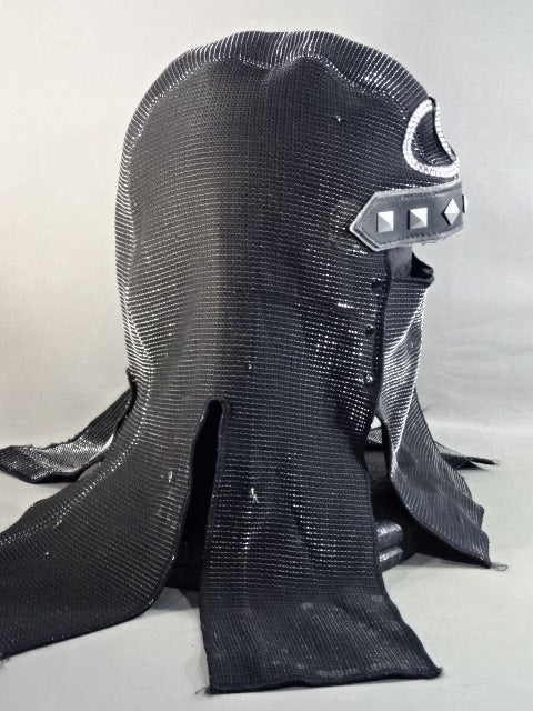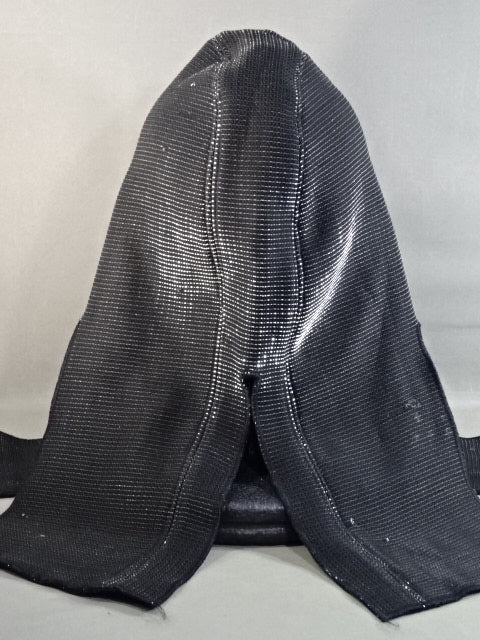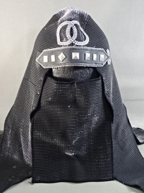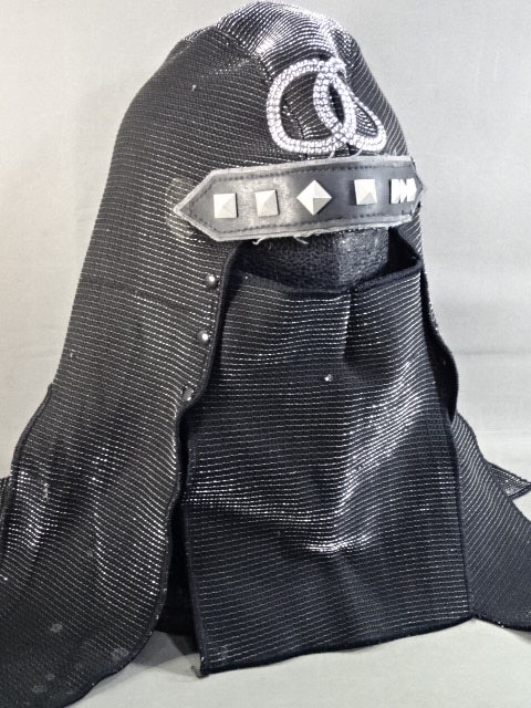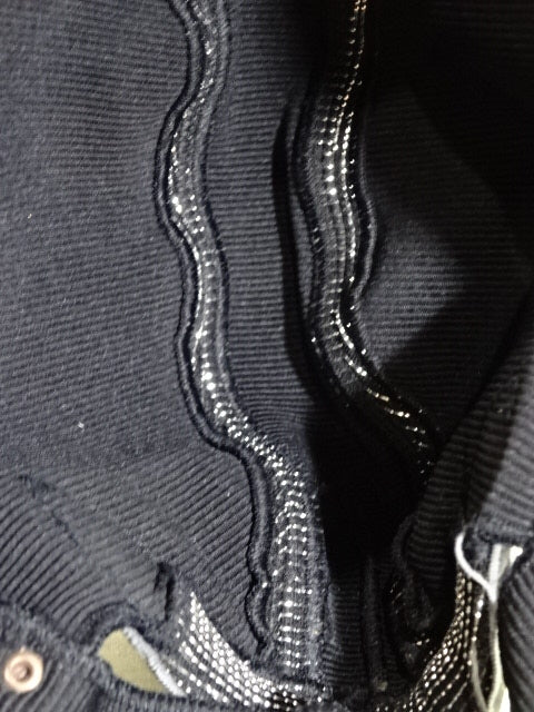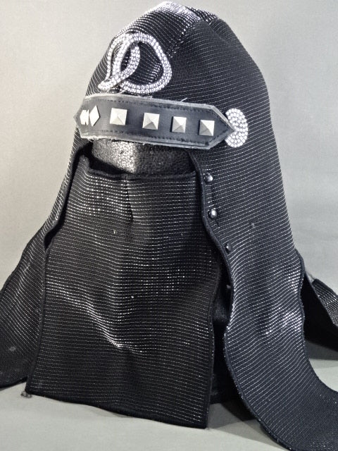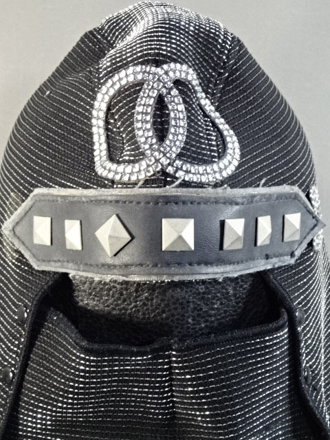 Black metal jersey double fabric black leather edge with rhinestone and stud decoration