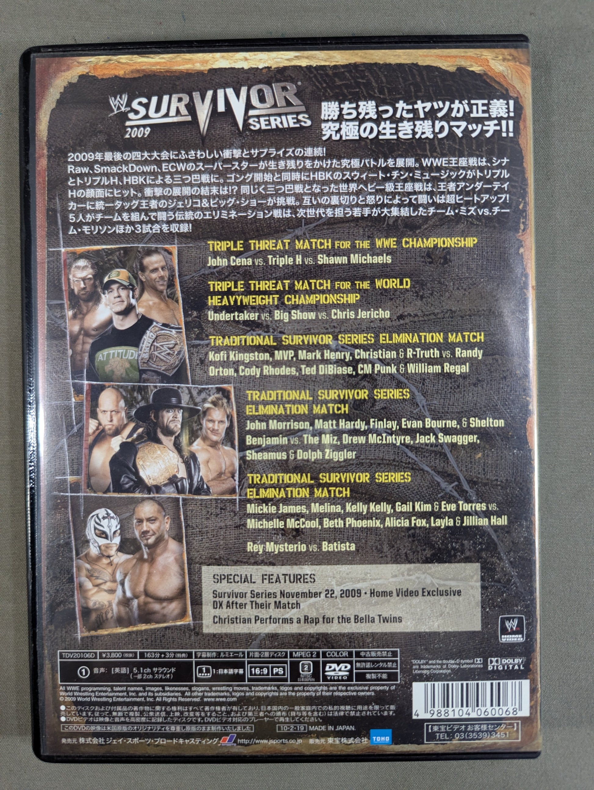 The one who survives is justice! The ultimate survival match!! ○ John Cena vs. HHH vs. Shawn Michaels / The Undertaker vs. Big Shaw vs. Chris Jericho /Kofi Kingston & MVP & Mark Henry & Christian & R-Truth vs Randy Orton & Cody Rhodes &Ted DiBiase &CM Punk & William Regal / John Morrison & Matt Hardy & Finlay & Evan Bourne & Shelton Benjamin vs. The Miz & Drew McIntyre & Jack Swagger & Che
