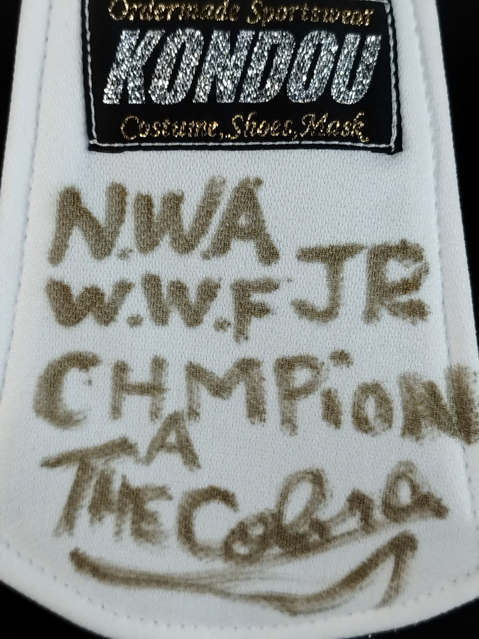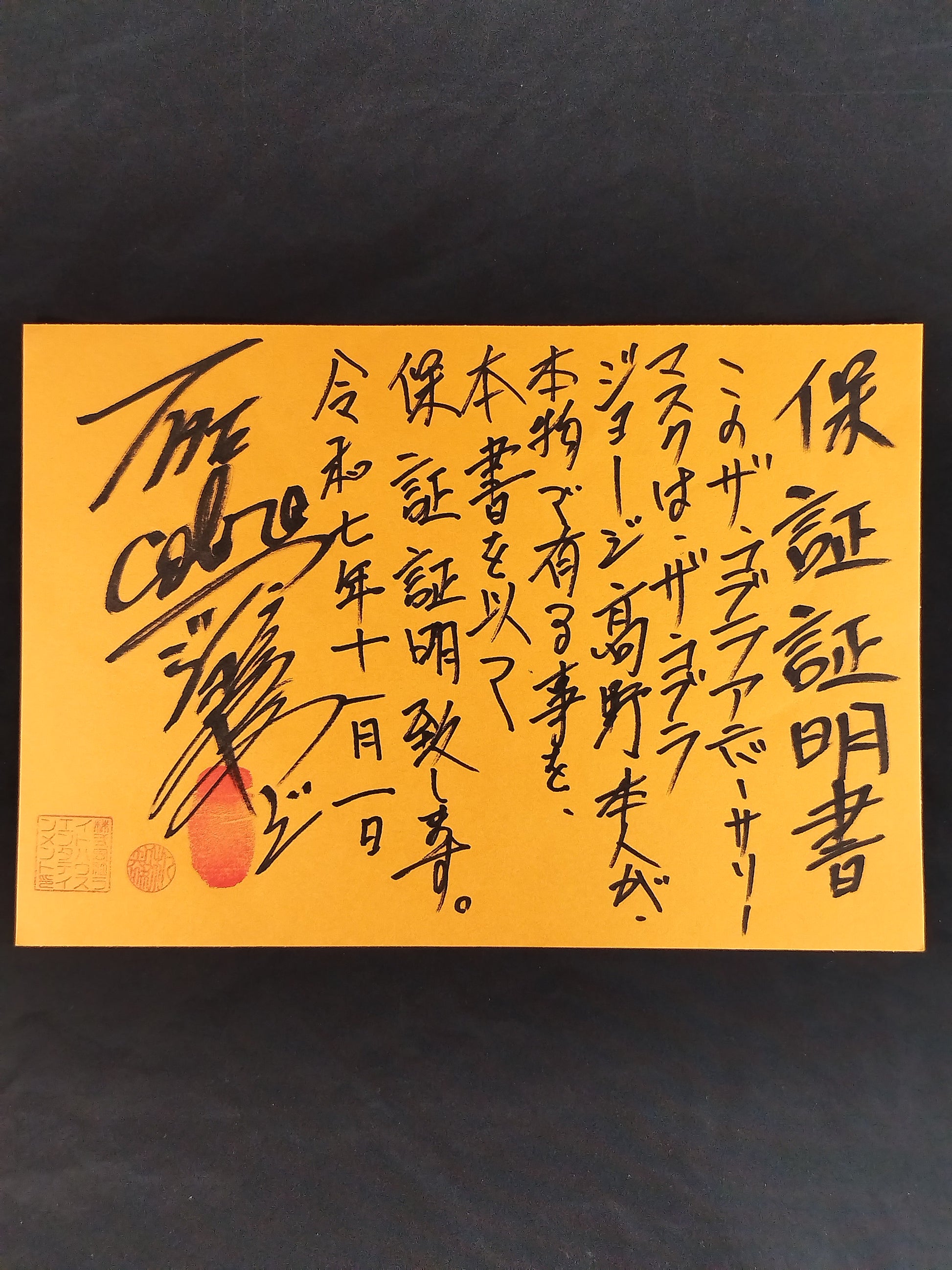 ★1983.11.3 Kuramae Kokugikan debut match "Shinobu" type ★ Hand signed autograph with warranty certificate and wearing photo Silver glitter double fabric Black leather edge & Champagne Gold Leather Edge "The Cobra HISTORY The Cobra is the creator of the Japanese mask market.