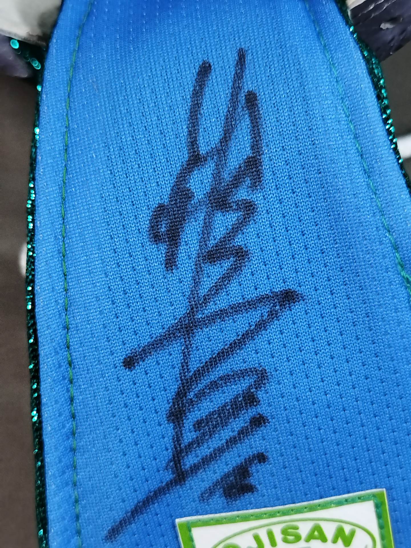 ★ Mr. Yamazaki hand signed autograph ★ blue & green half-flame silver leather copper special edge