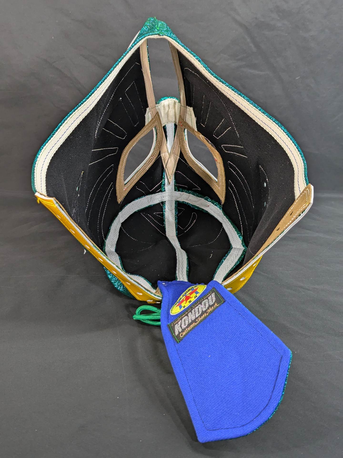 On August 22, 2020, the "Singing Cobra Landing! What I used at the autograph session for the second edition Signed (Toudoukan 2020.8.22) With ★wearing photo 85.8.1 Ryogoku type ( Don Arakawa Battle) Green glitter double fabric gold leather background red leather edge "The Cobra HISTORY The Cobra is the creator of the Japan mask market. The Cobra mask brought back from Mexico was dismantled, and the mask market in Japan was launched" (by The Cobra Produce Secretariat)
