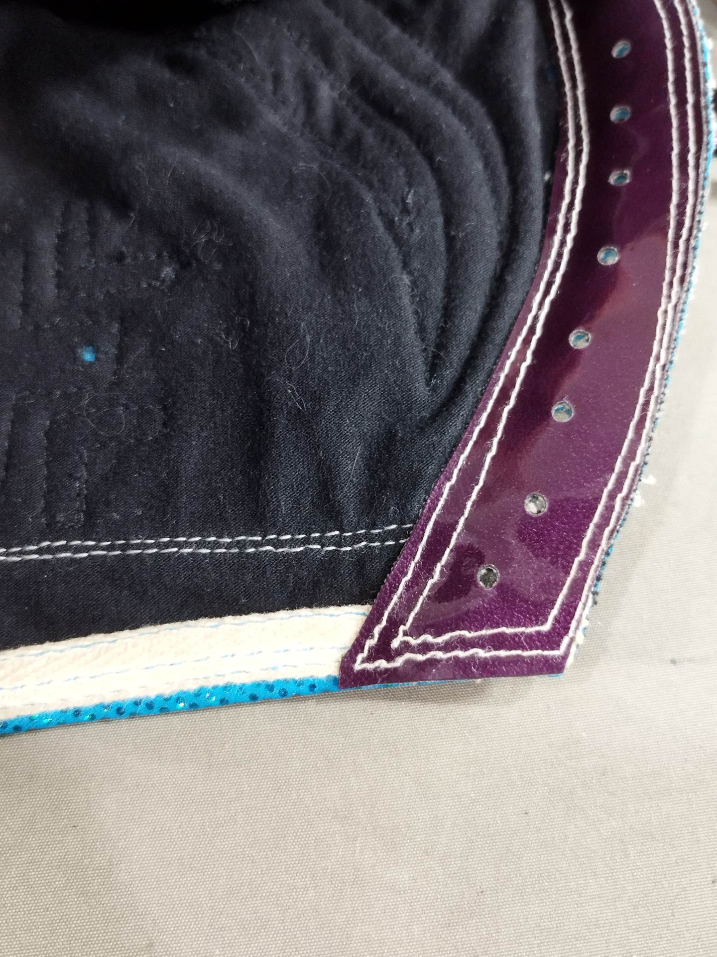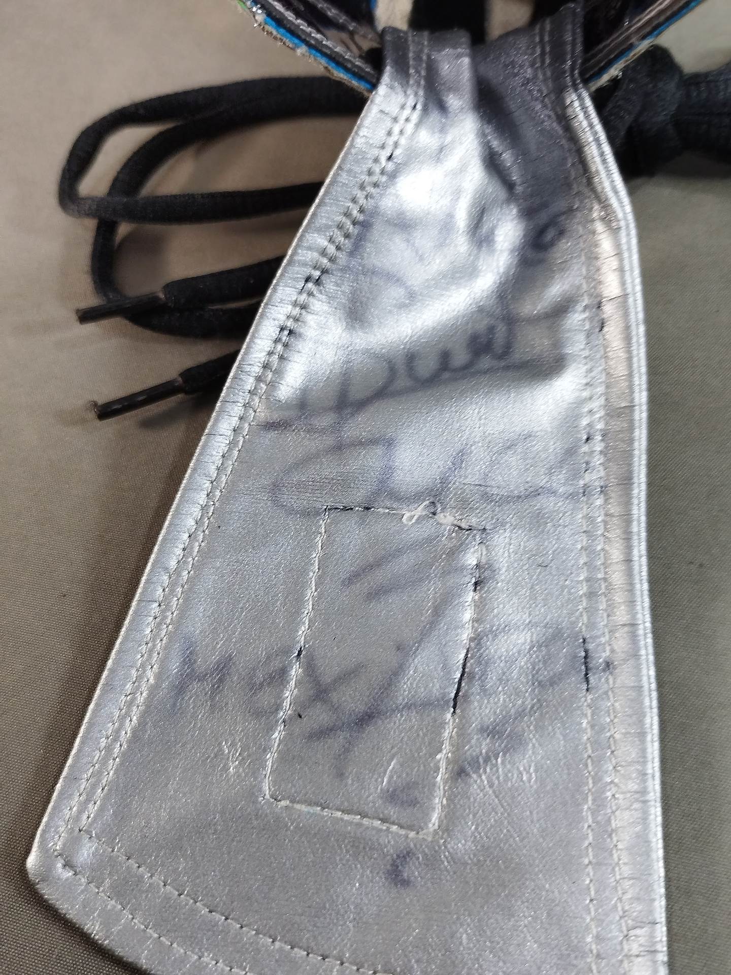 With autograph of use with wearing photo Light blue special leotard & silver glitter double fabric black edge