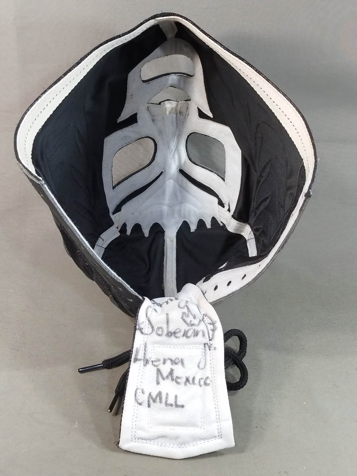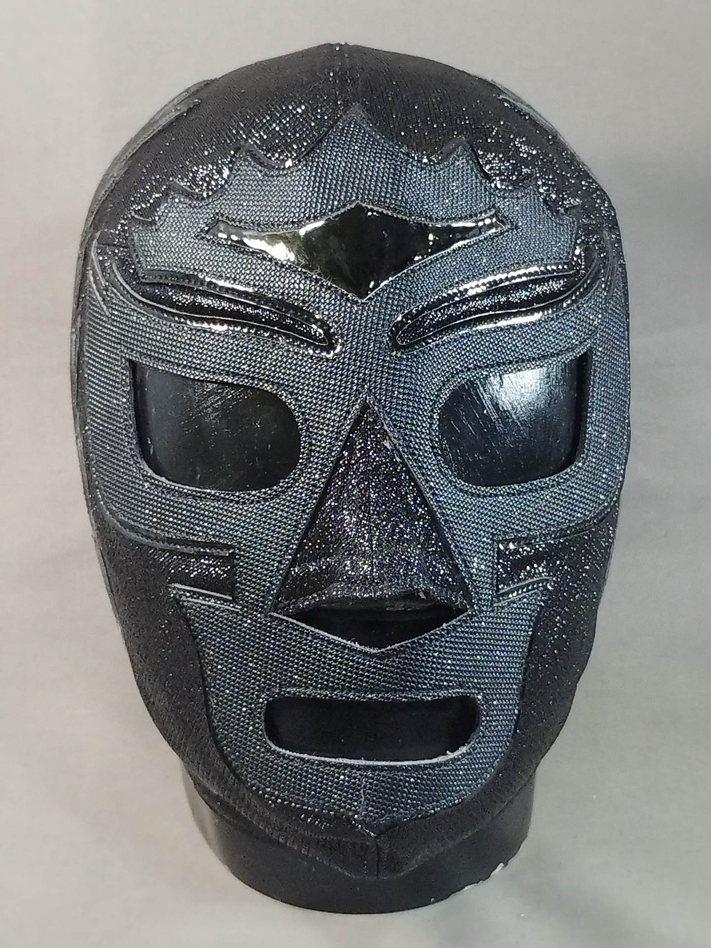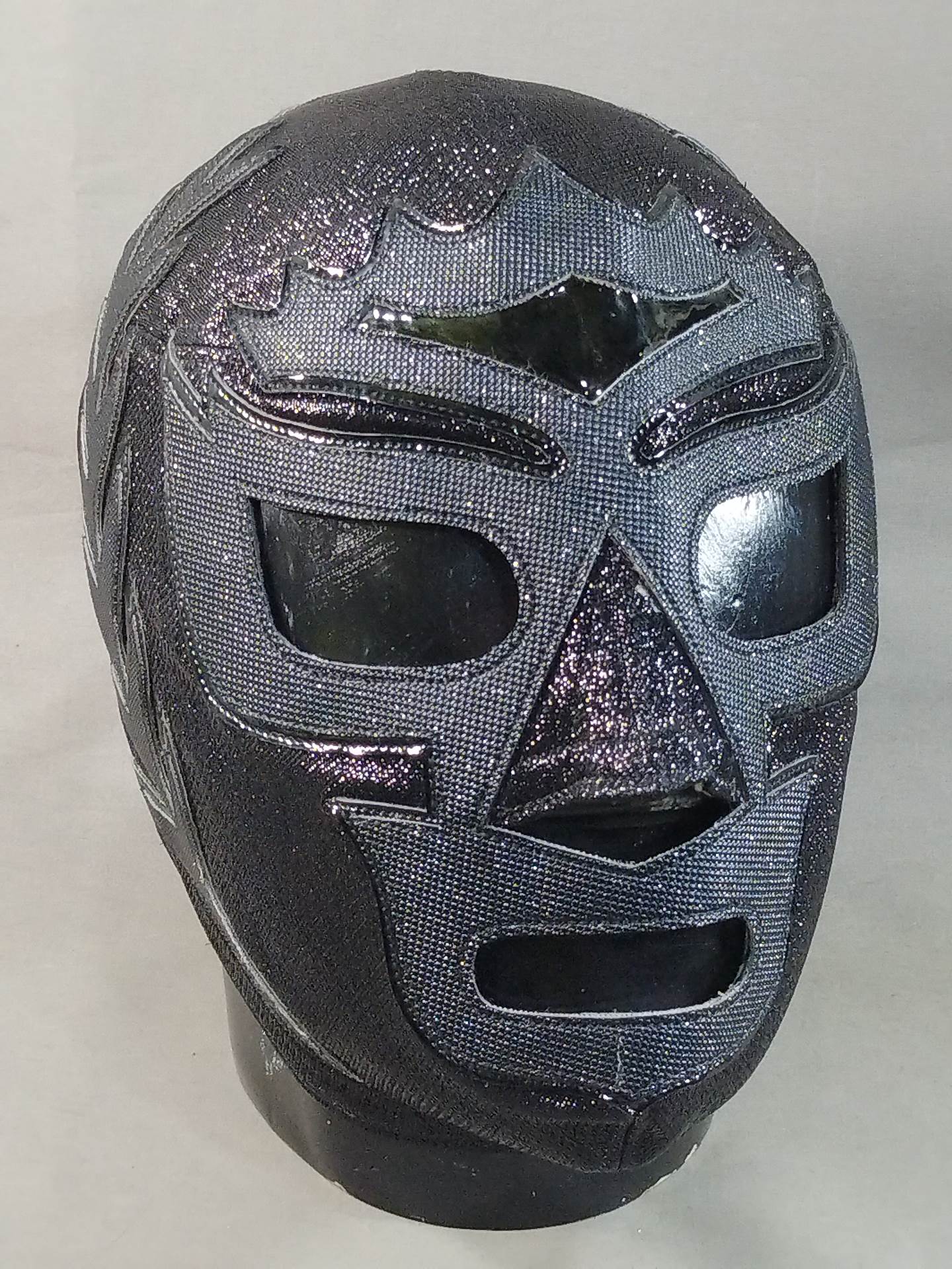 With personal autograph (CMLL) With wearing photo Black glitter double fabric Black black special leather edge Used by Arena Mehiko