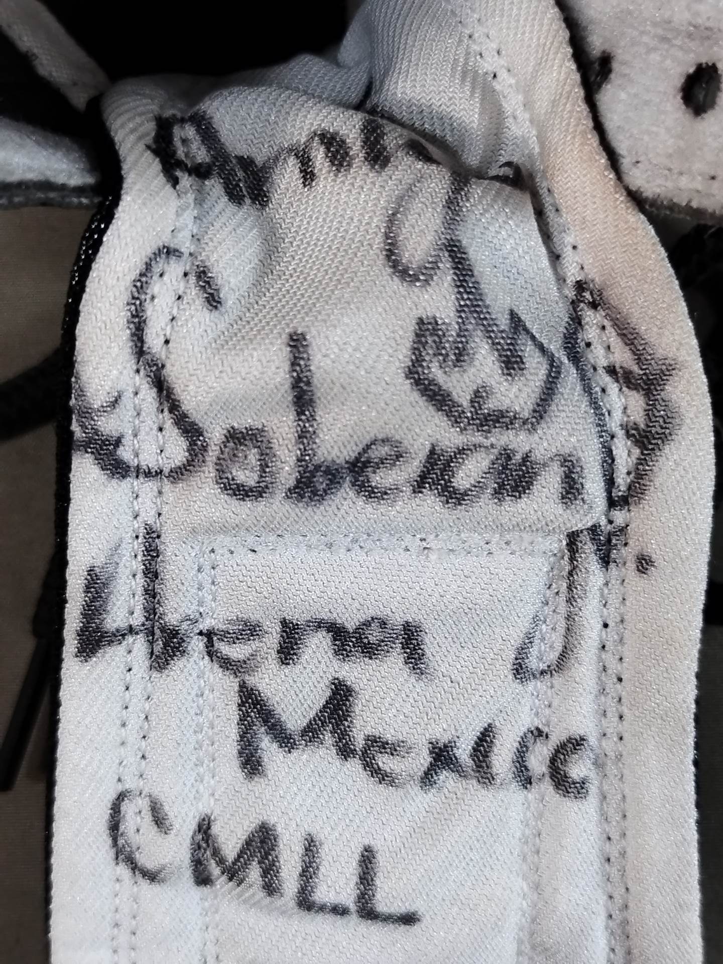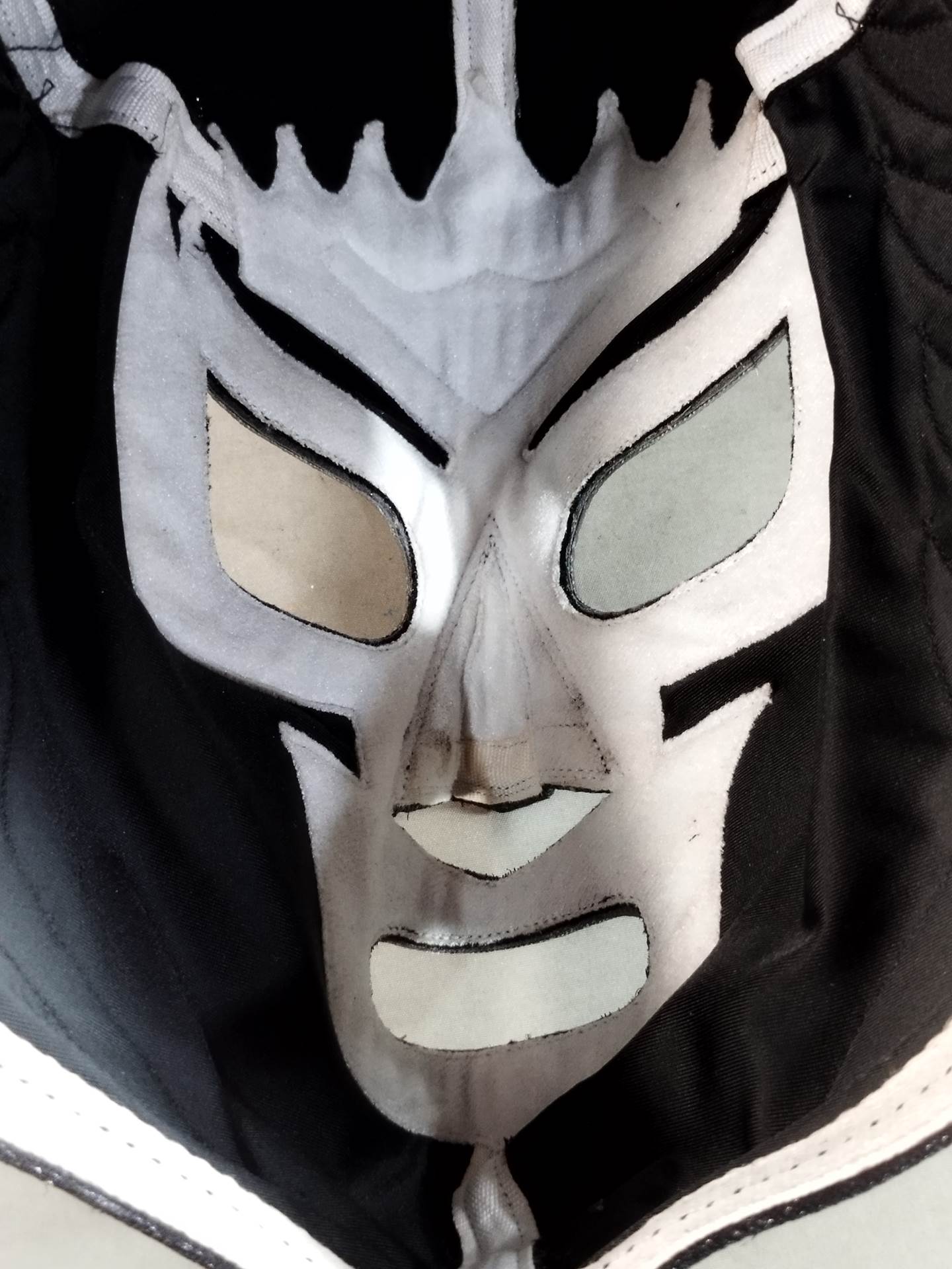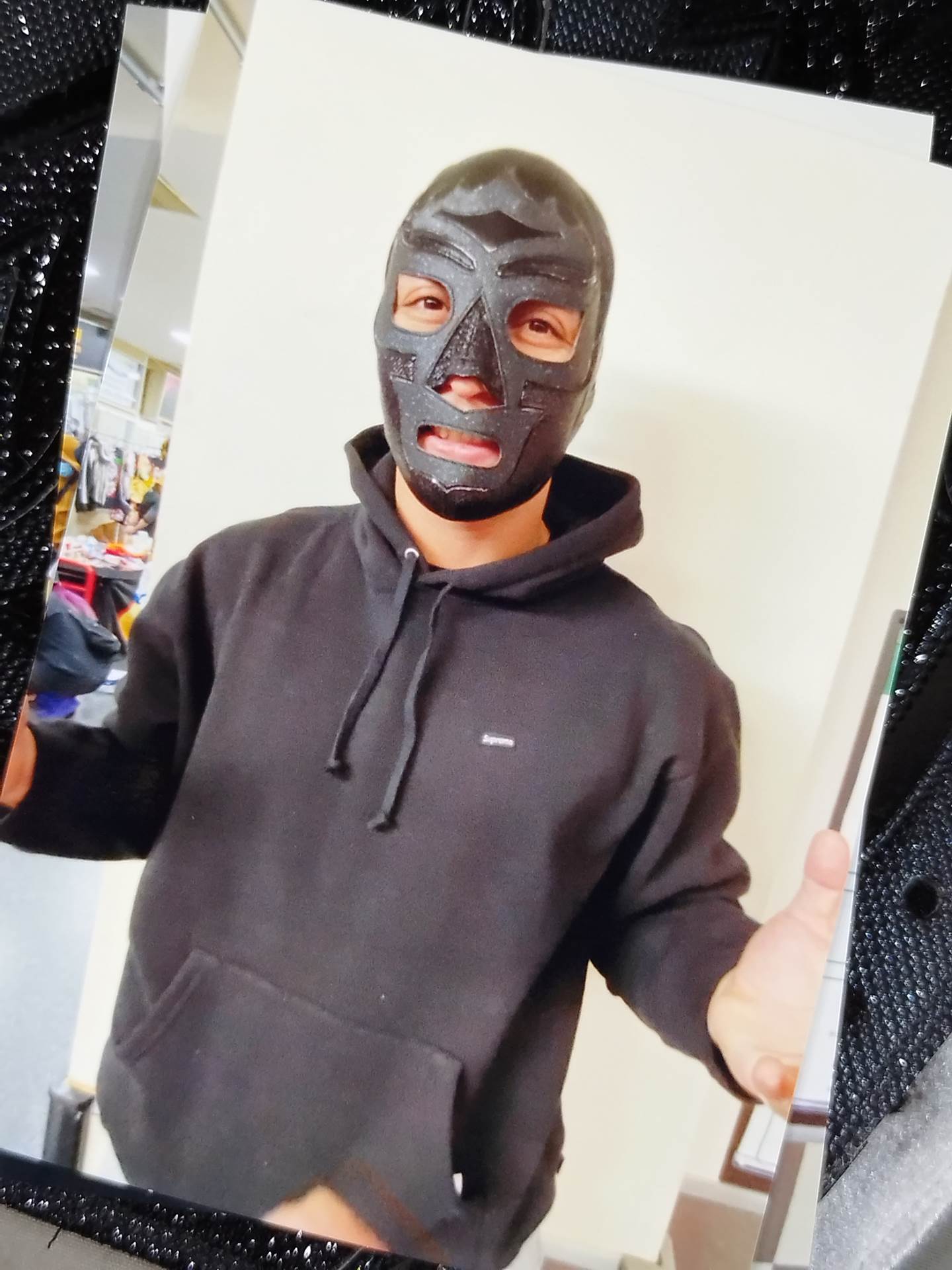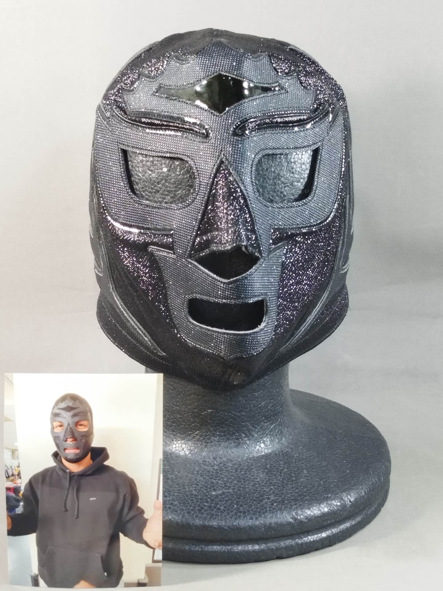 With personal autograph (CMLL) With wearing photo Black glitter double fabric Black black special leather edge Used by Arena Mehiko