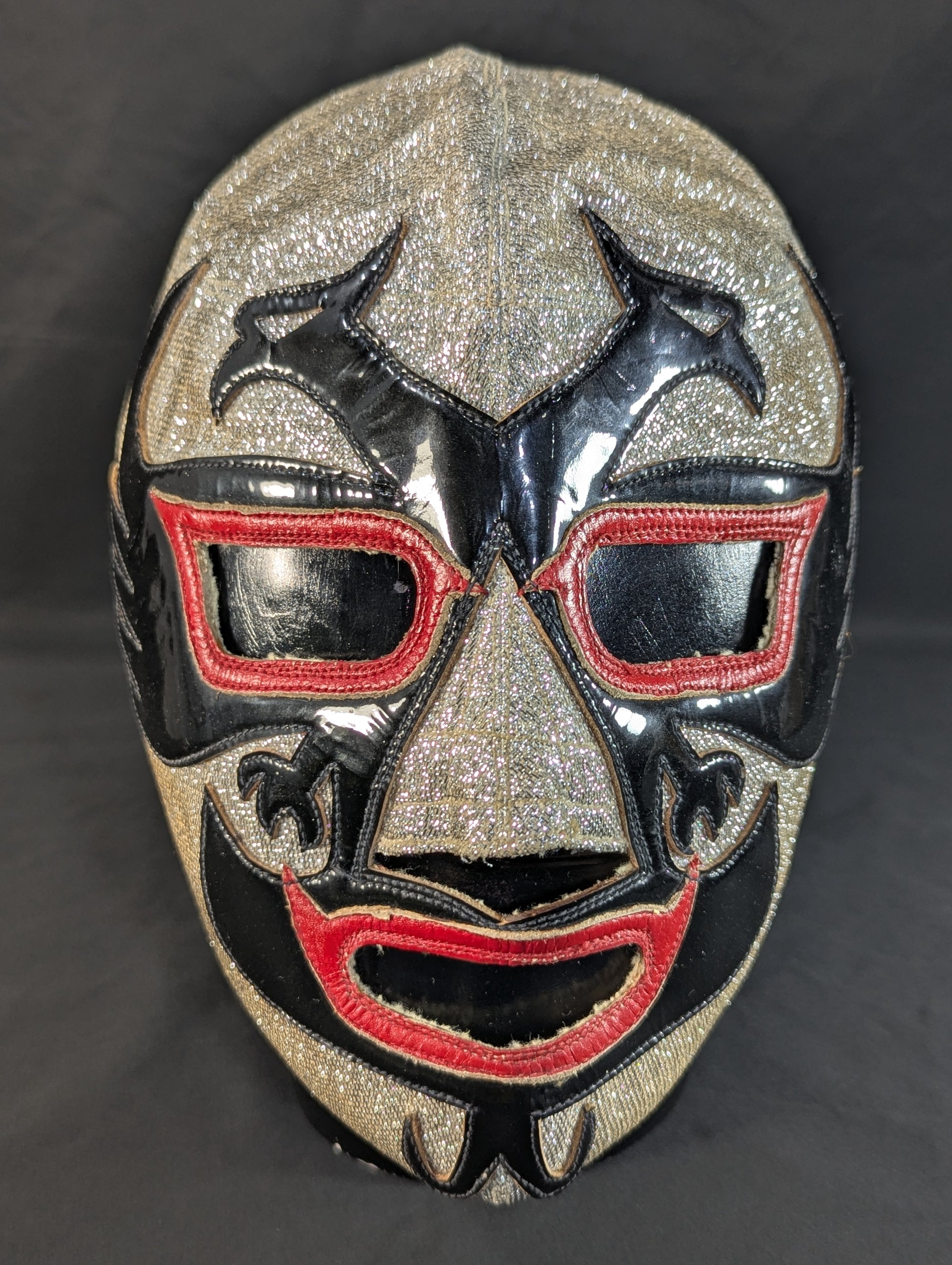 Weekly Pro Wrestling also used it in the gravure shoot for No.6 "MEXICO AHOLA New Lucha Libre". No more explanations! ! With the highest level of "usage record" and many photos published on TV broadcasts and specialized magazines, the "perfect" worn by him mask has the triple beat of "impact" and "popularity"! ! Signed (with address) Old silver glitter black leather edge (dark blue thread stitching) & red leather edge (red thread stitch) The tongue is the same old glitter fabric and light beige cotton fabric The lining is a standard wool material The neck tape is a plain color with a height width of 1.7 cm 11 string holes Materials are included (separate volume Gong January 84 issue, Monthly Gong February 84 issue, wearing photo ) Produced by Alejandro Rodriguez in the early 1980s