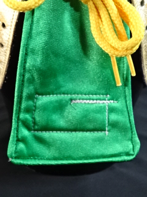 Signed (2000) Green Spore Fabric Red Leather Gold Leather Edge