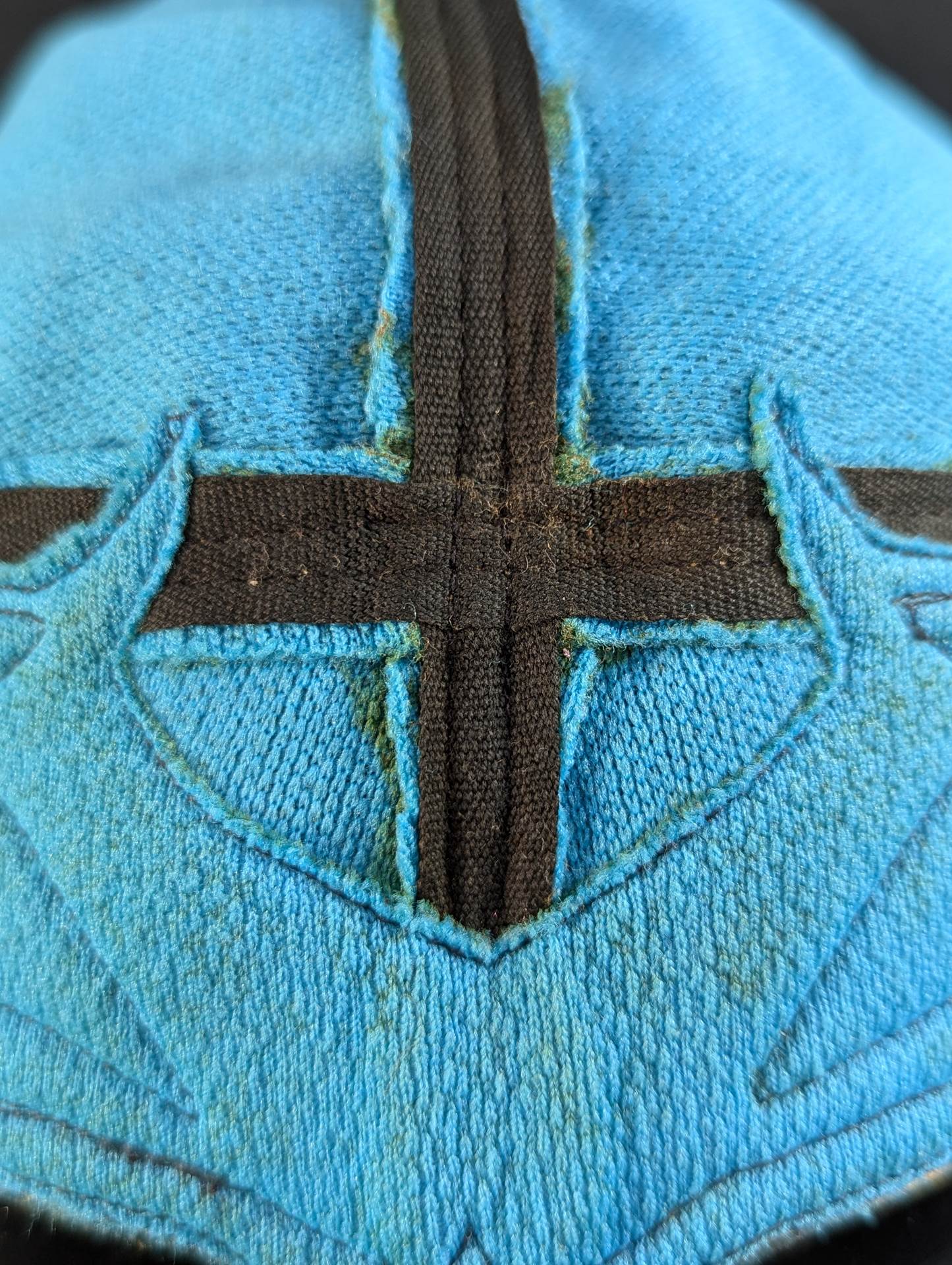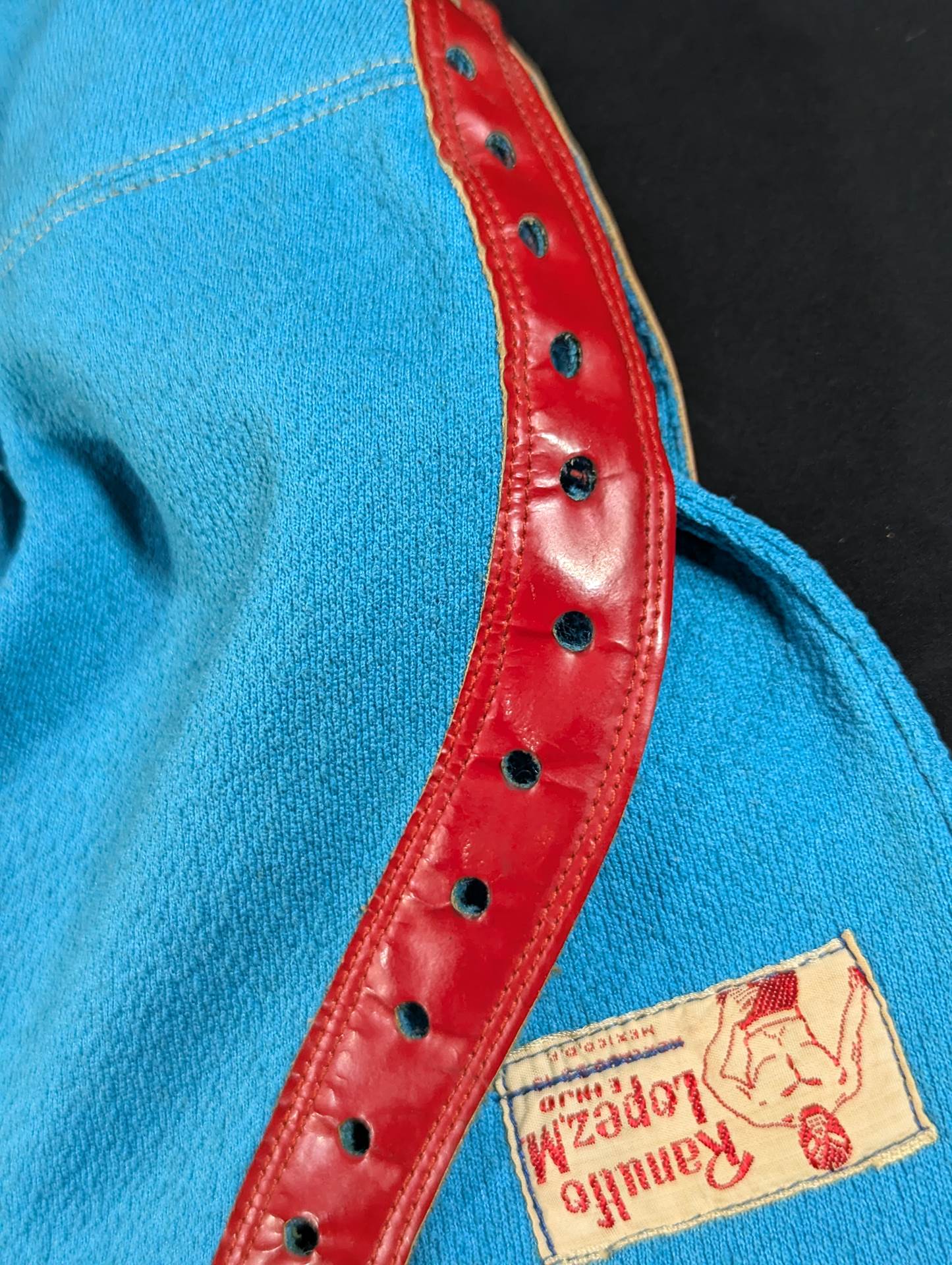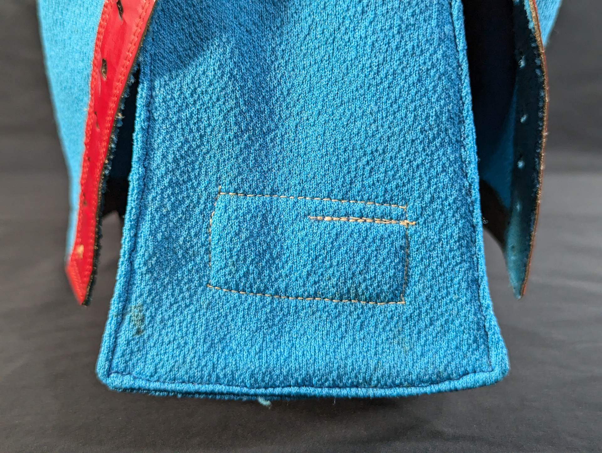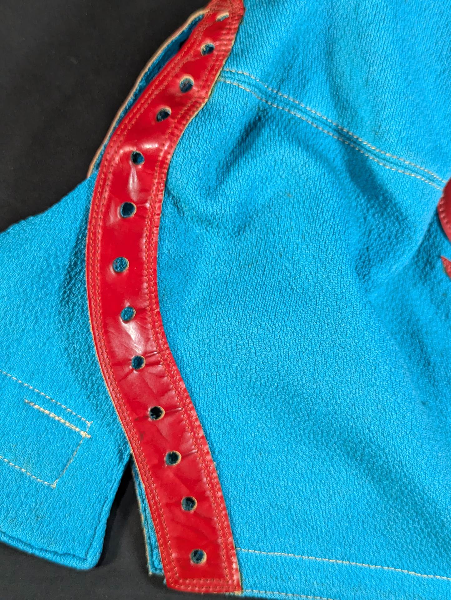 ★80s Original ★ Light Blue Telluren Jersey Fabric Black Leather Edge & Red Leather Edge Vero Made of the Same Material Throat Tape is 1.7cm Long Width and Light Brown Center Stitch No Lining There are 13 string holes on each side, made in the mid-1980s.