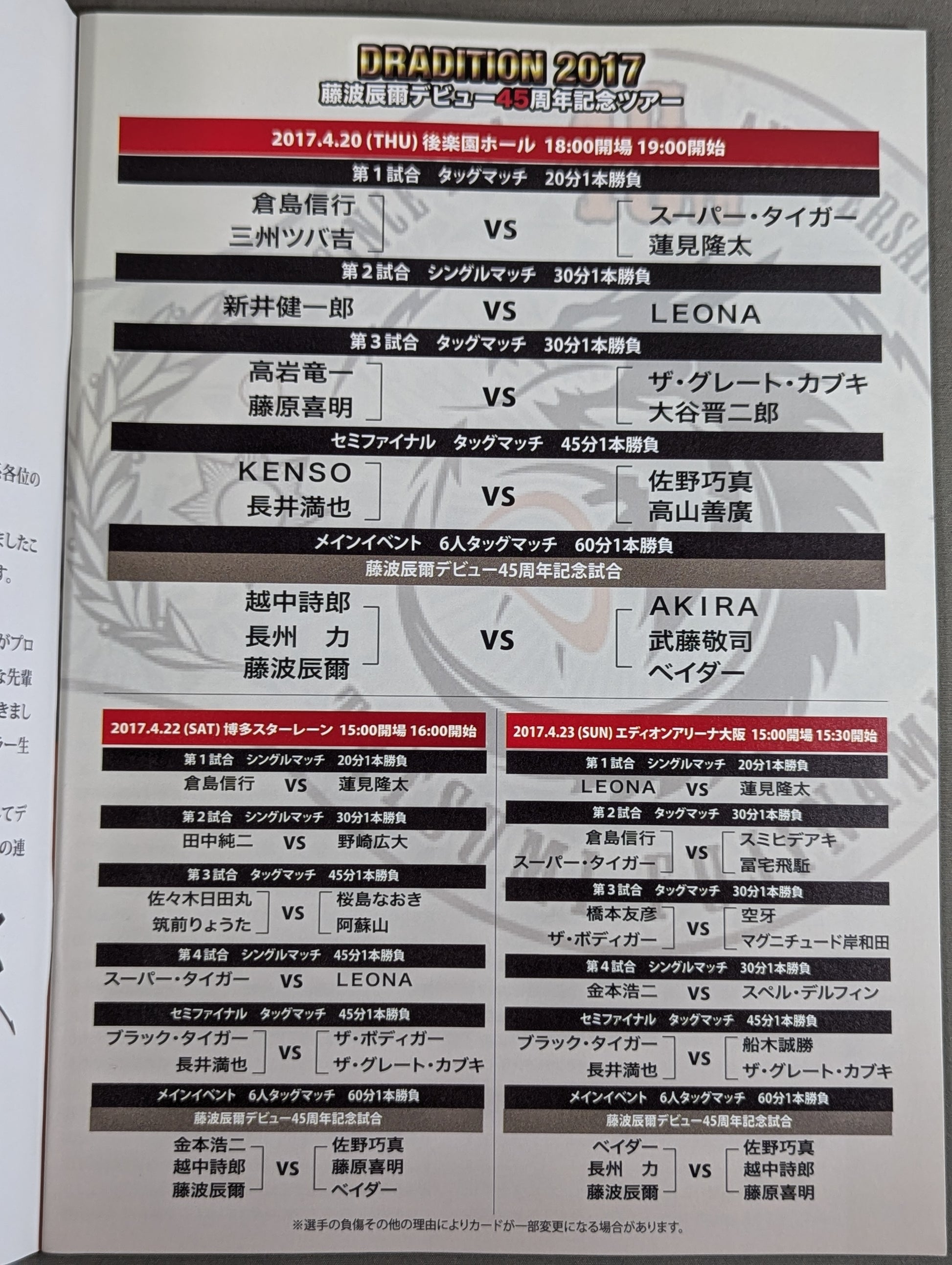 DRADITION 2017 ★ Tatsumi Fujinami Debut 45th Anniversary Tour★