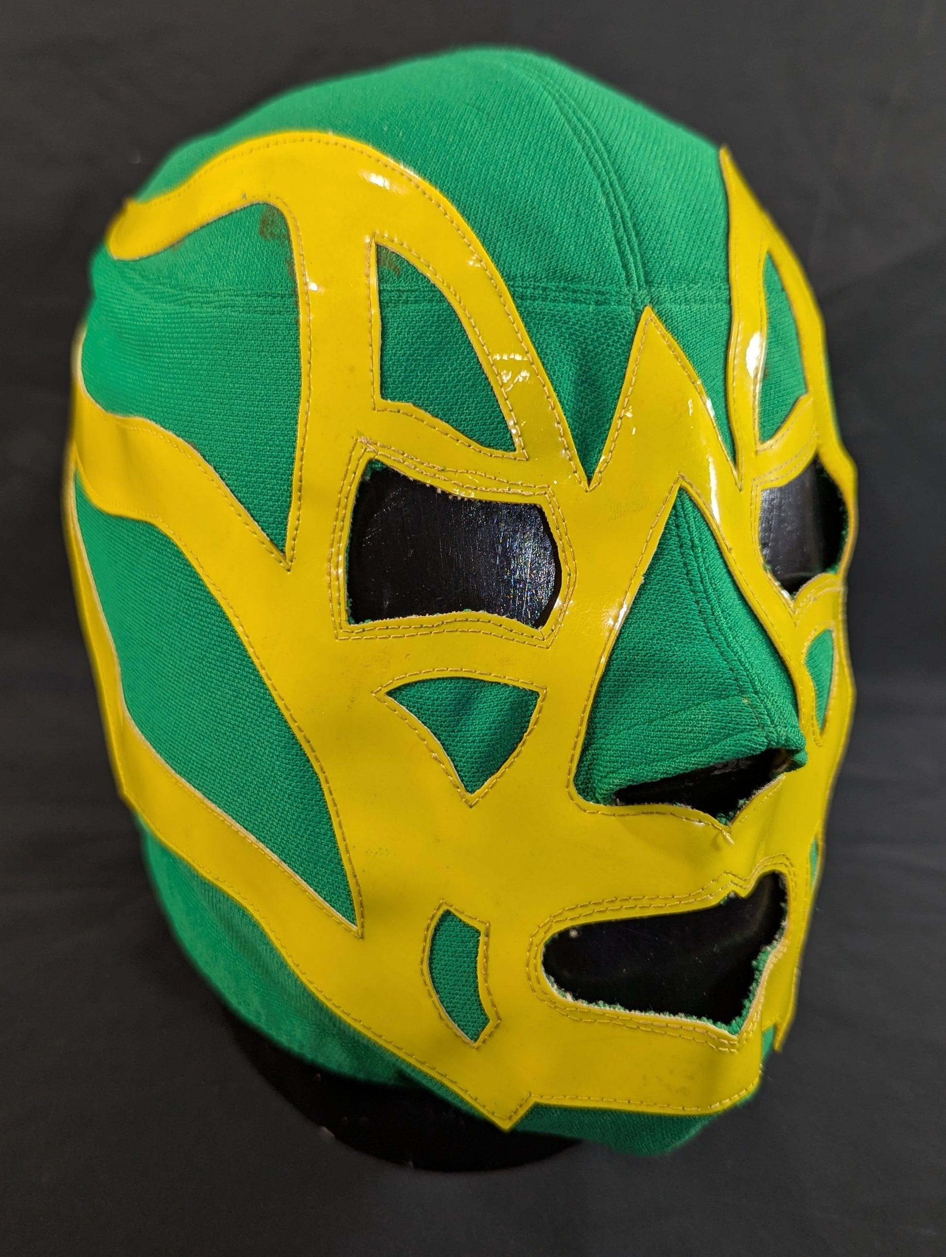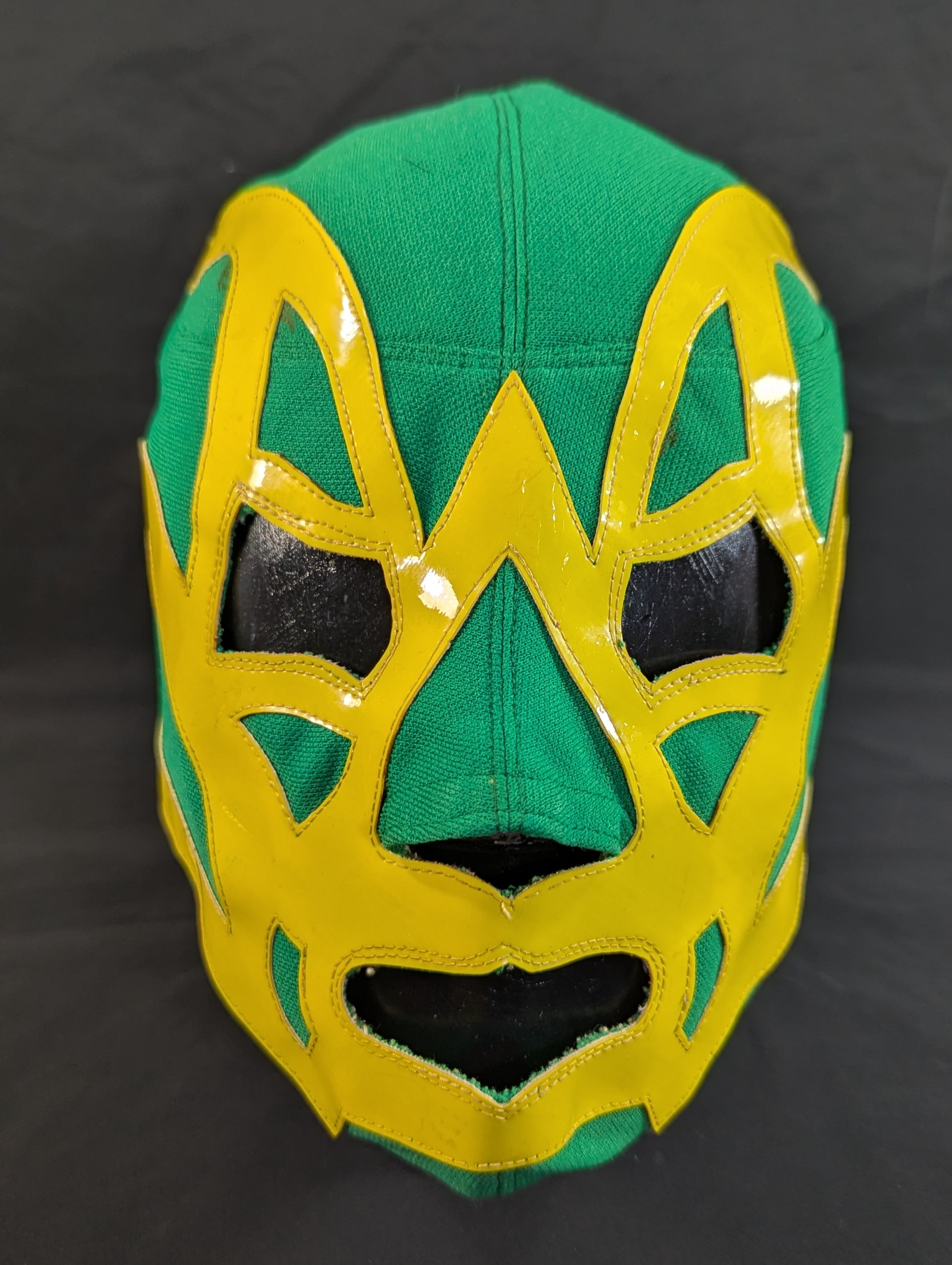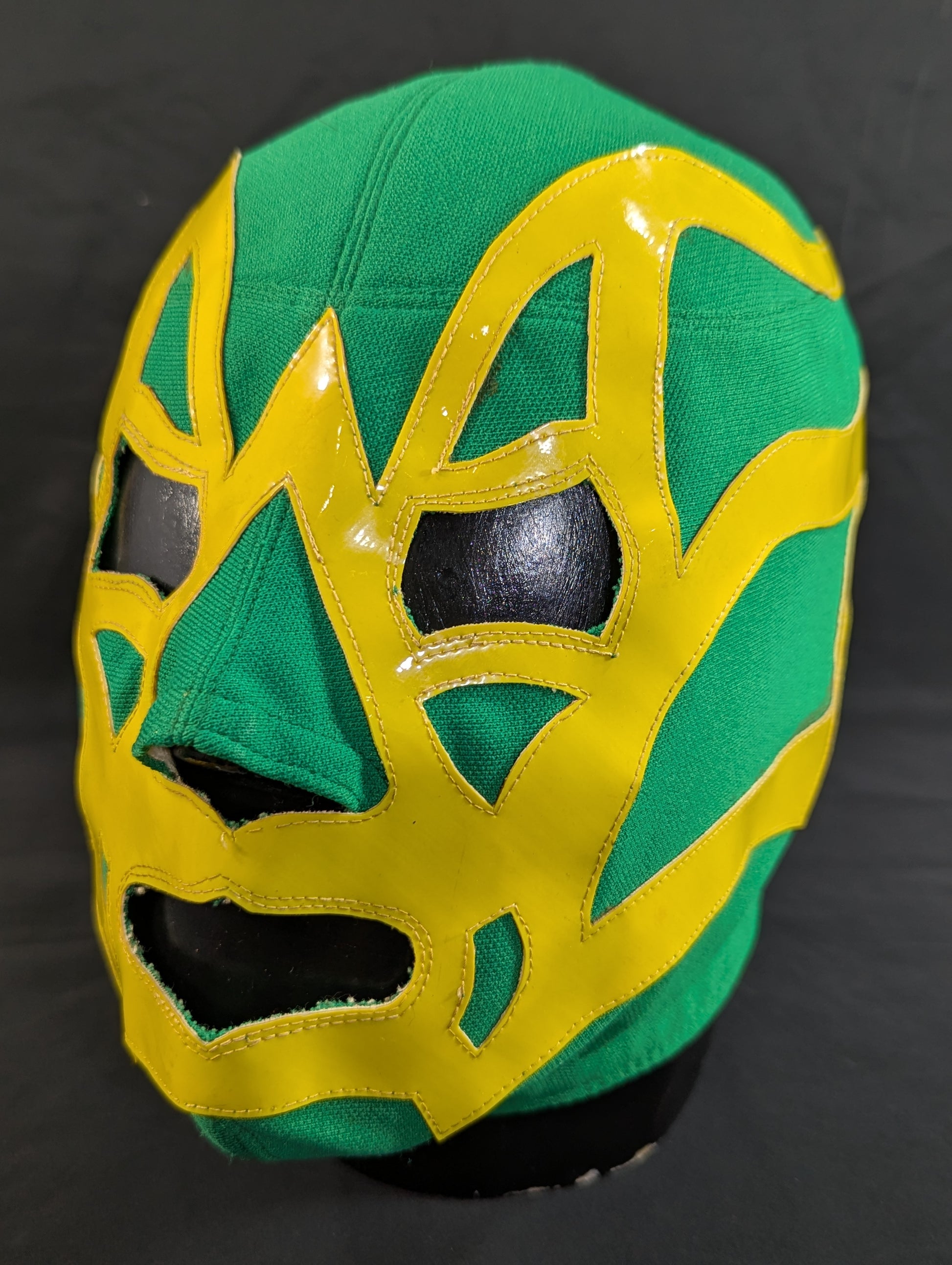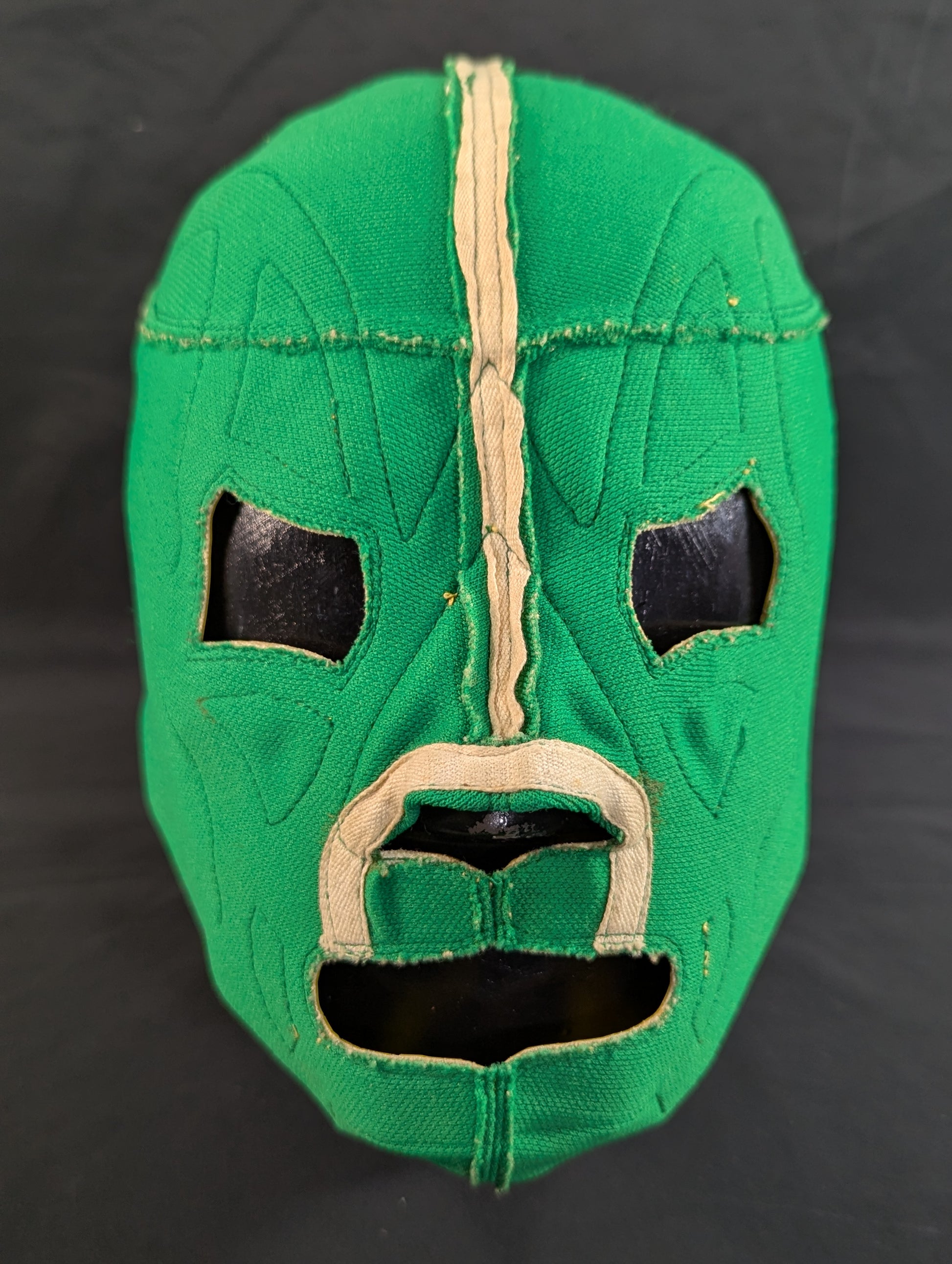 ★80's Original !! ★ Green jersey fabric Yellow edge Vero is jersey fabric of the same color Throat tape is a plain cotton material with a height width of 1.8 cm One cross tape vertical No lining It is said that it was used in a game in Mexico, but it has not been identified. PWMW Pro Wrestling Mask Museum Complete Guide Actual masks on page 29 Made by Miguel Ángel Aguilar in the early 1980s