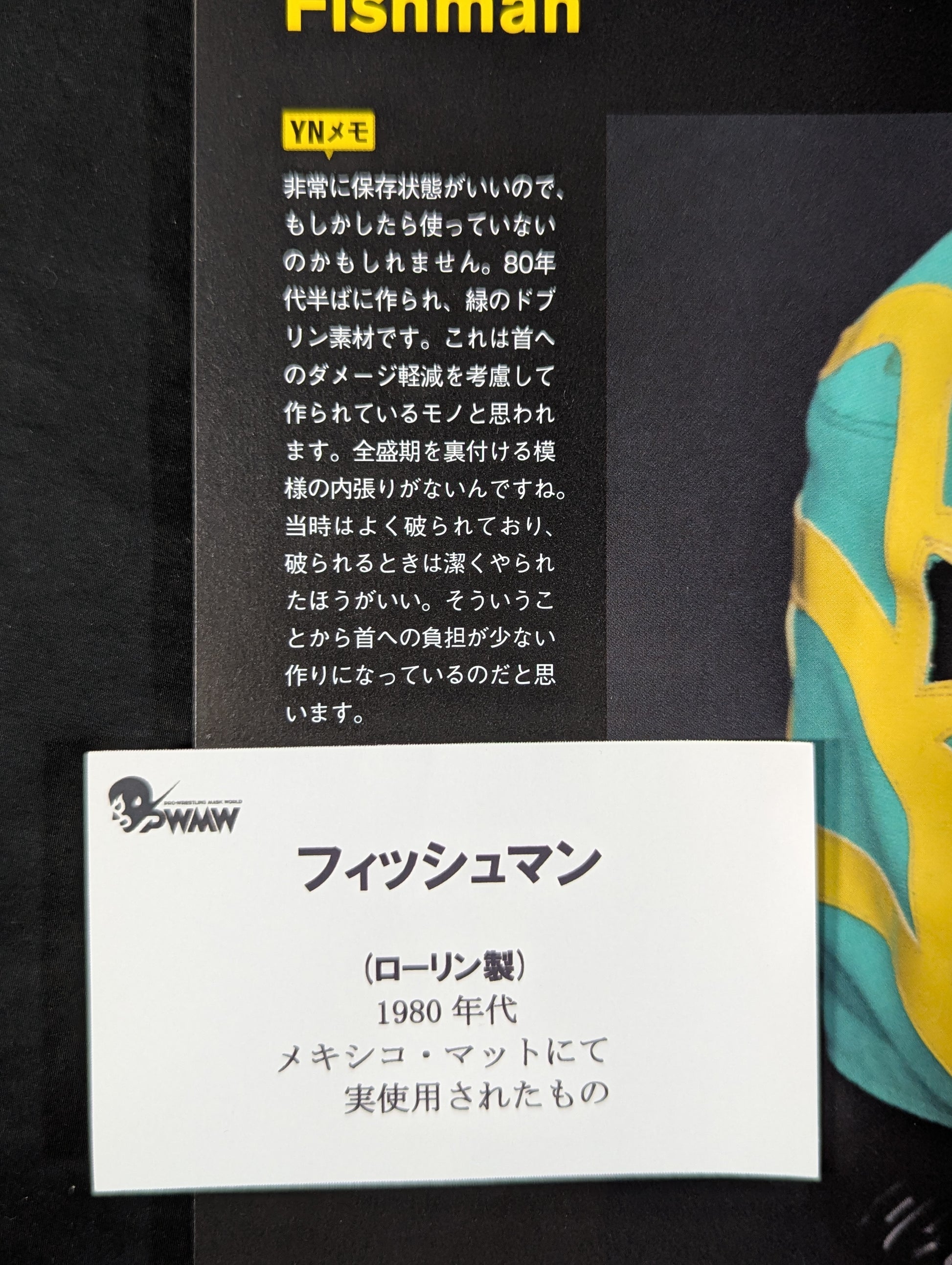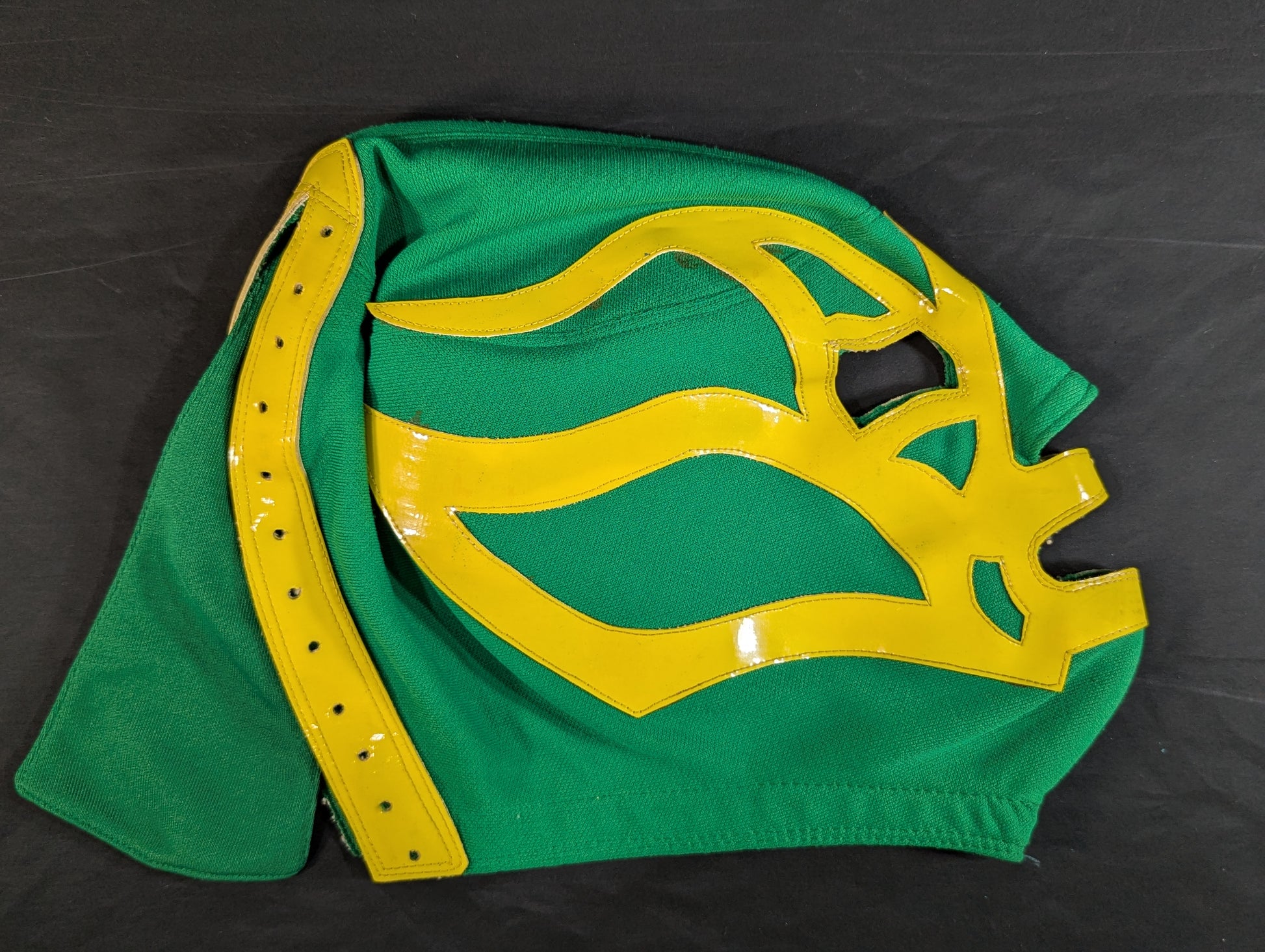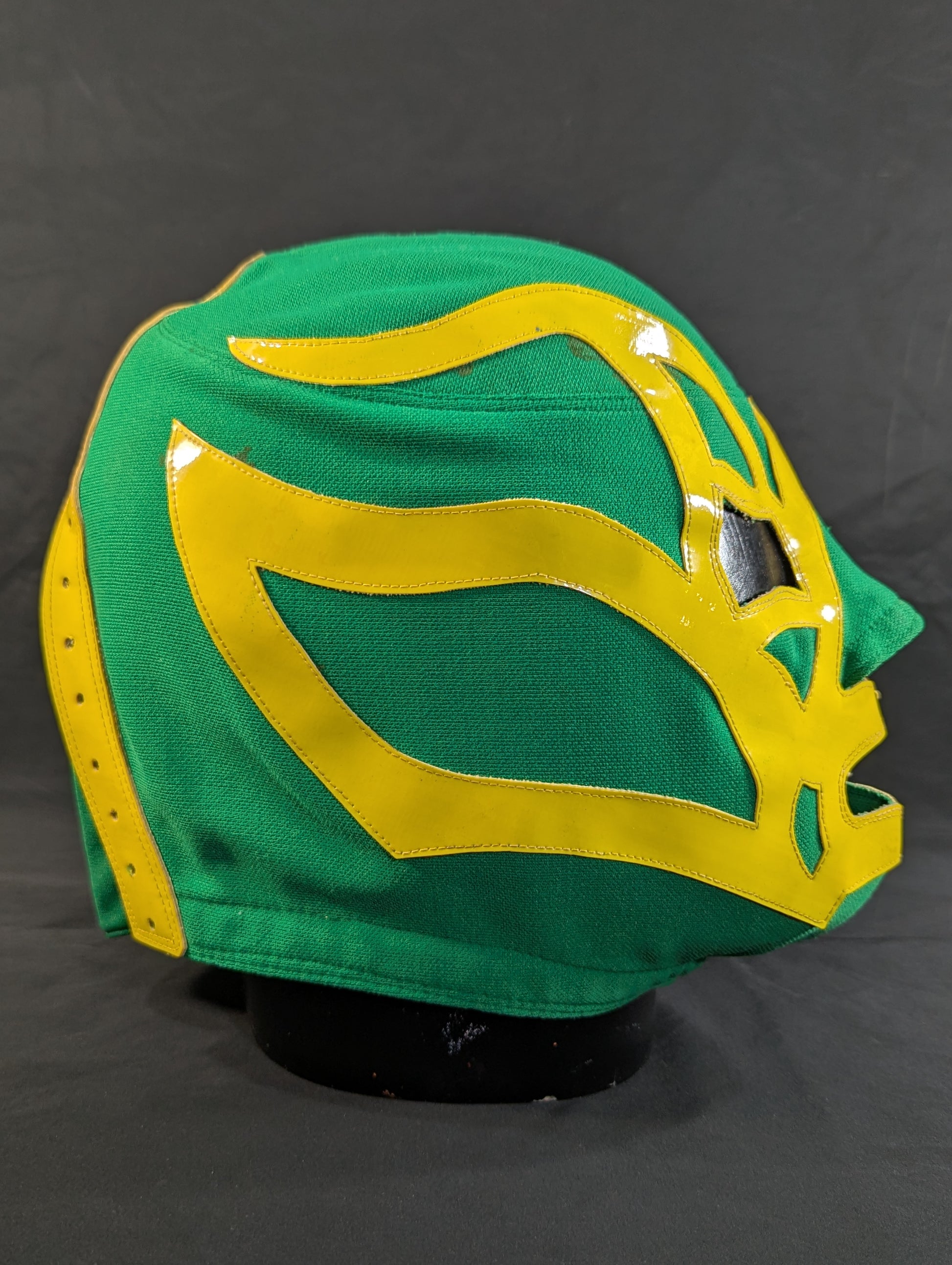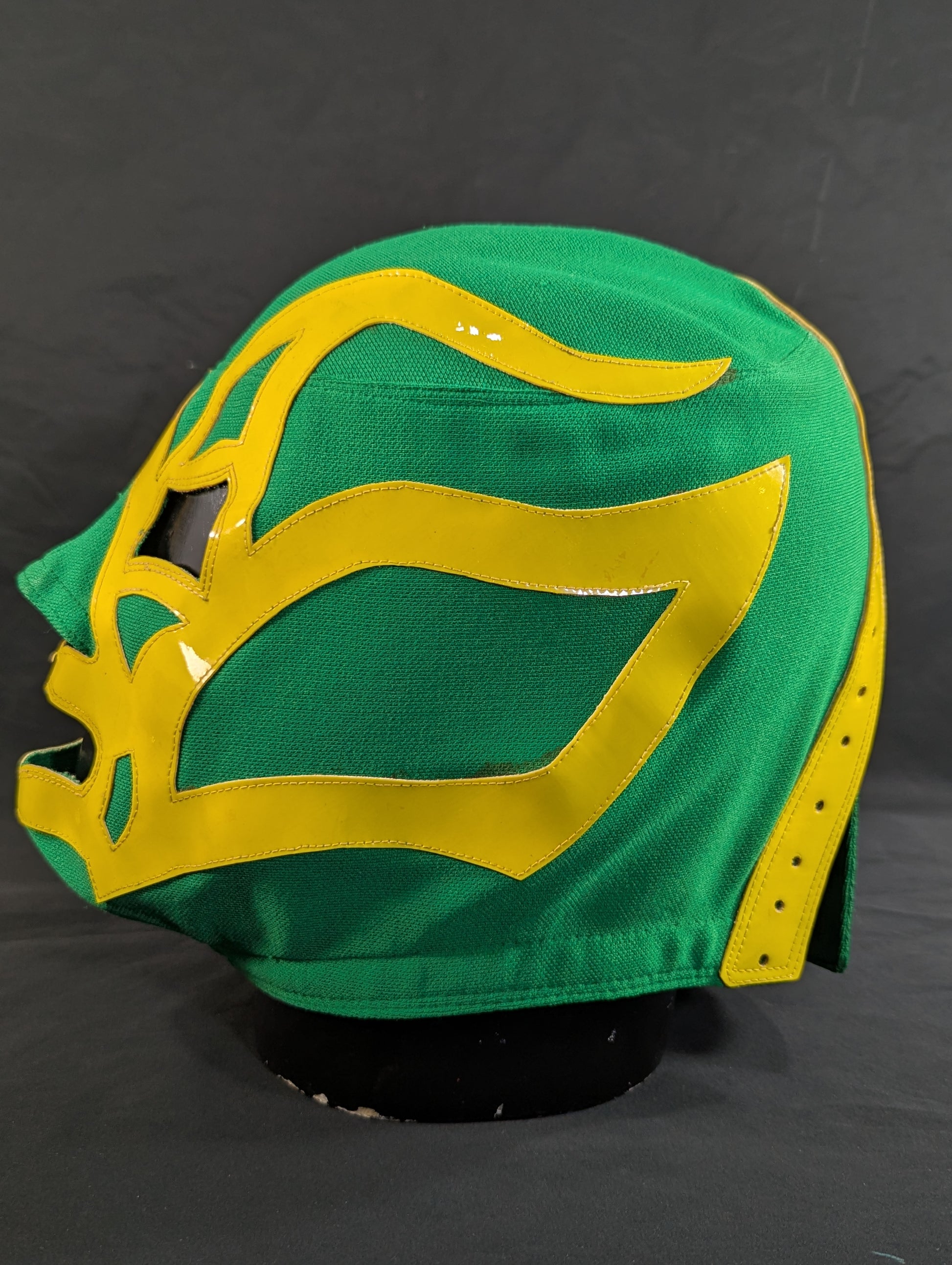 ★80's Original !! ★ Green jersey fabric Yellow edge Vero is jersey fabric of the same color Throat tape is a plain cotton material with a height width of 1.8 cm One cross tape vertical No lining It is said that it was used in a game in Mexico, but it has not been identified. PWMW Pro Wrestling Mask Museum Complete Guide Actual masks on page 29 Made by Miguel Ángel Aguilar in the early 1980s