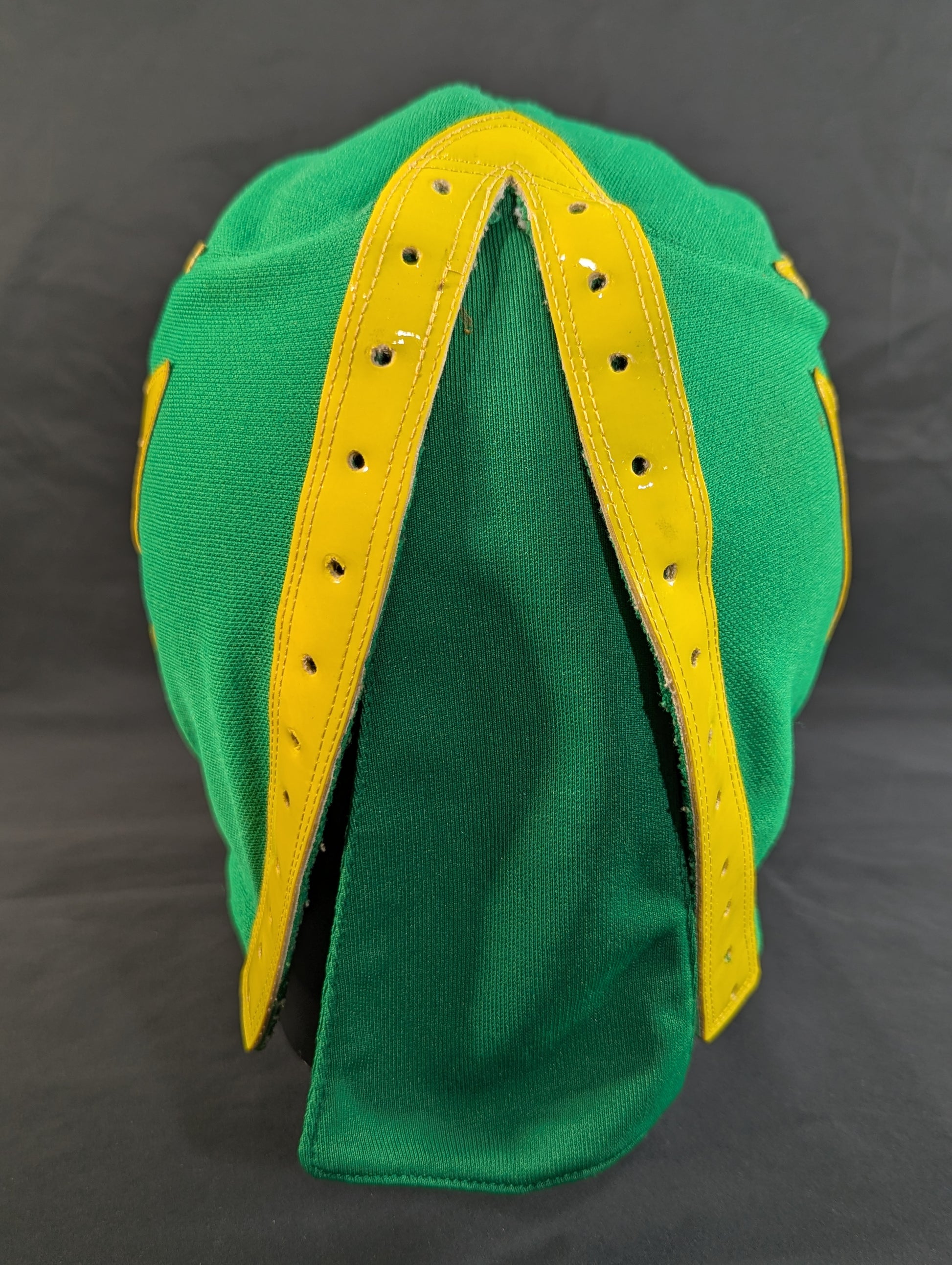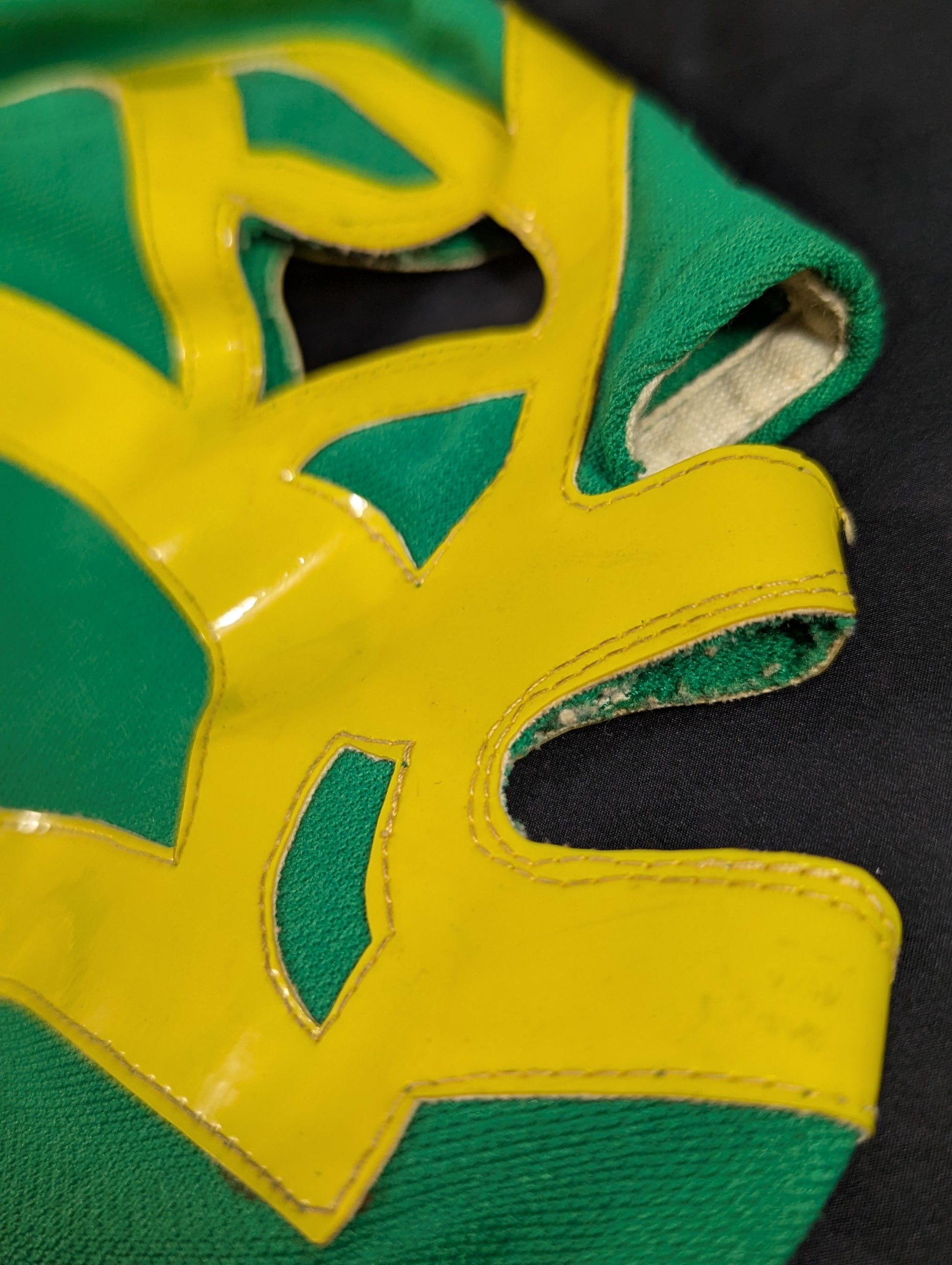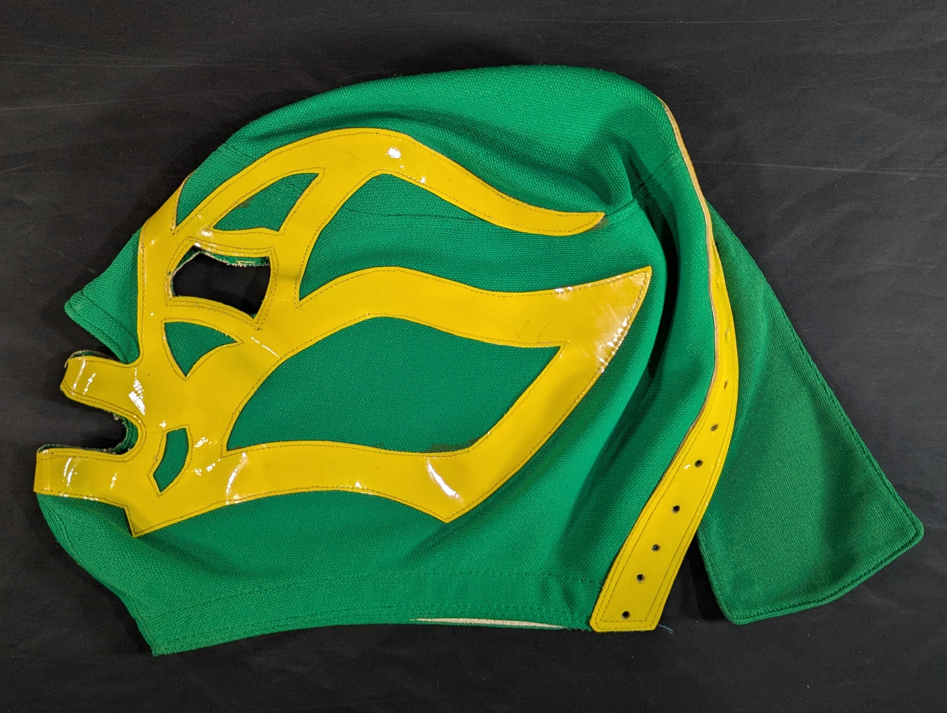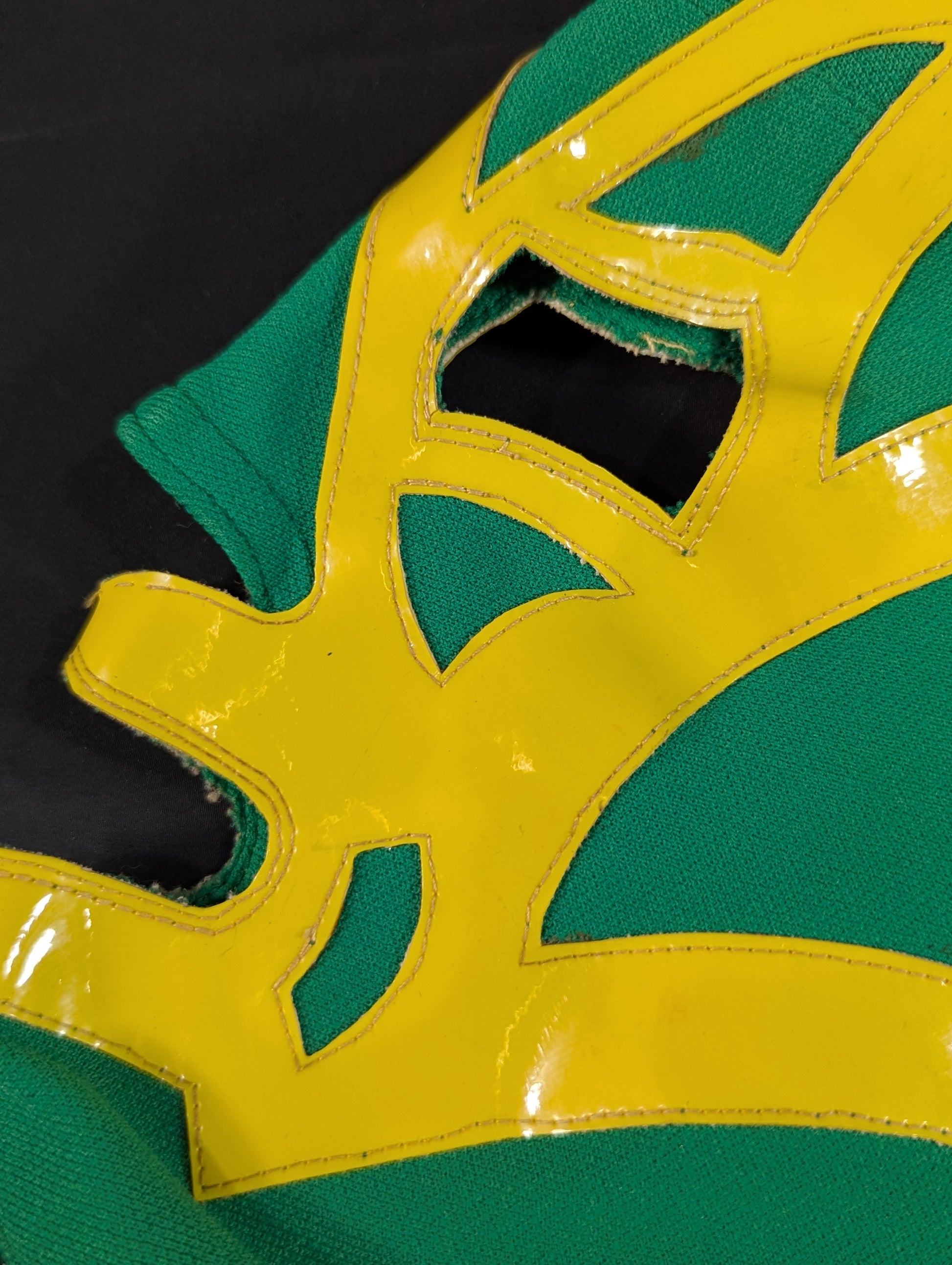 ★80's Original !! ★ Green jersey fabric Yellow edge Vero is jersey fabric of the same color Throat tape is a plain cotton material with a height width of 1.8 cm One cross tape vertical No lining It is said that it was used in a game in Mexico, but it has not been identified. PWMW Pro Wrestling Mask Museum Complete Guide Actual masks on page 29 Made by Miguel Ángel Aguilar in the early 1980s