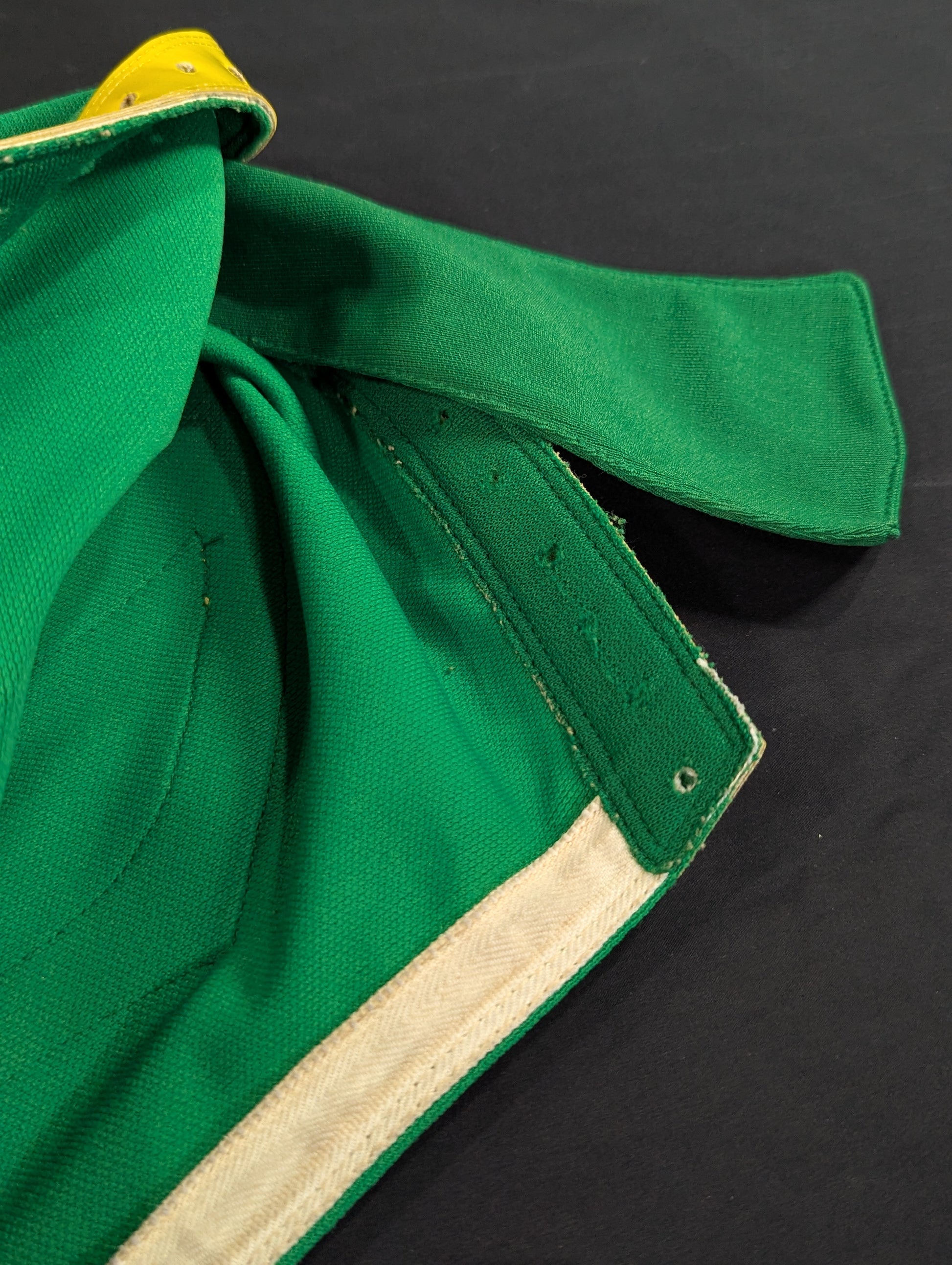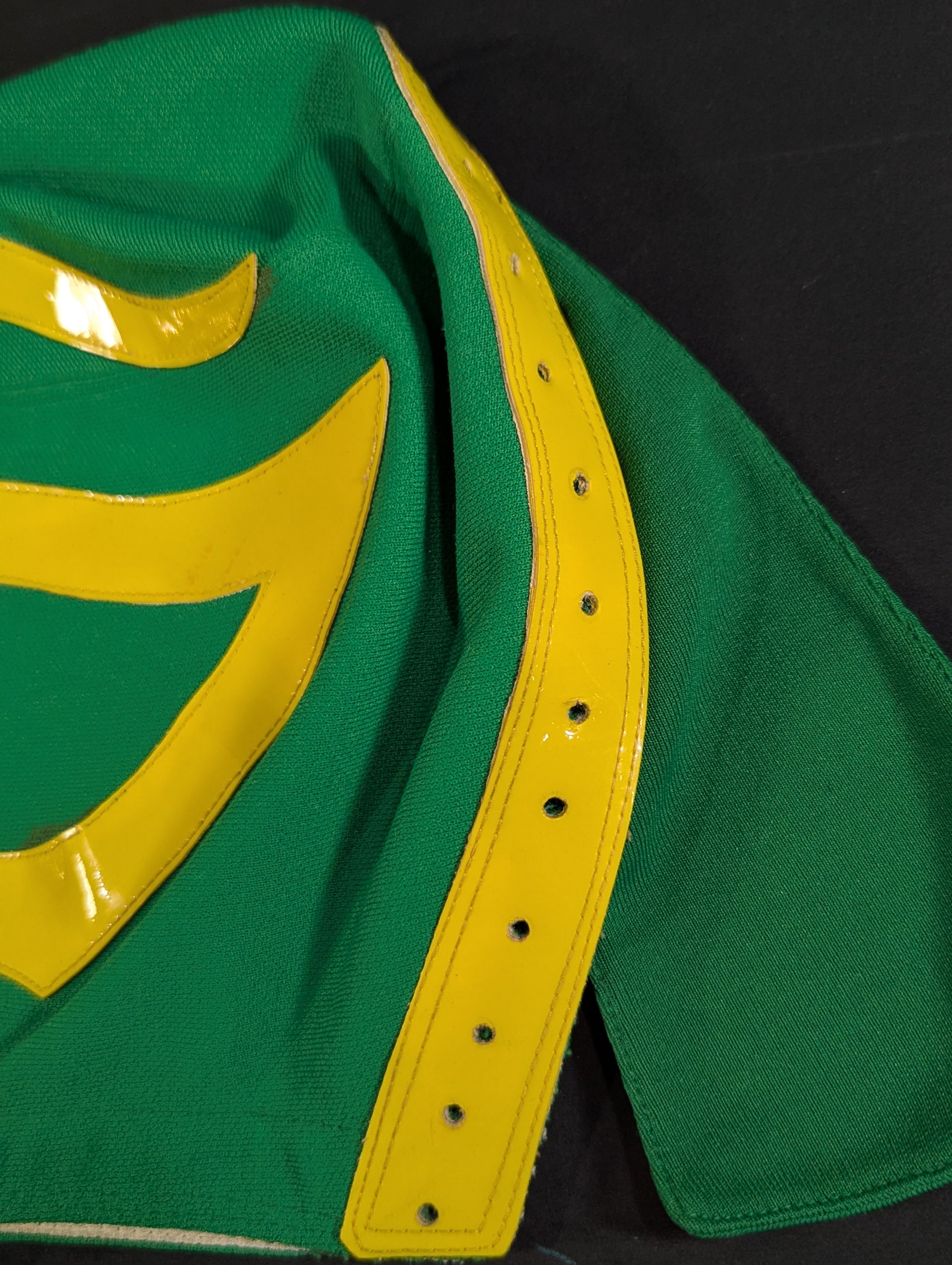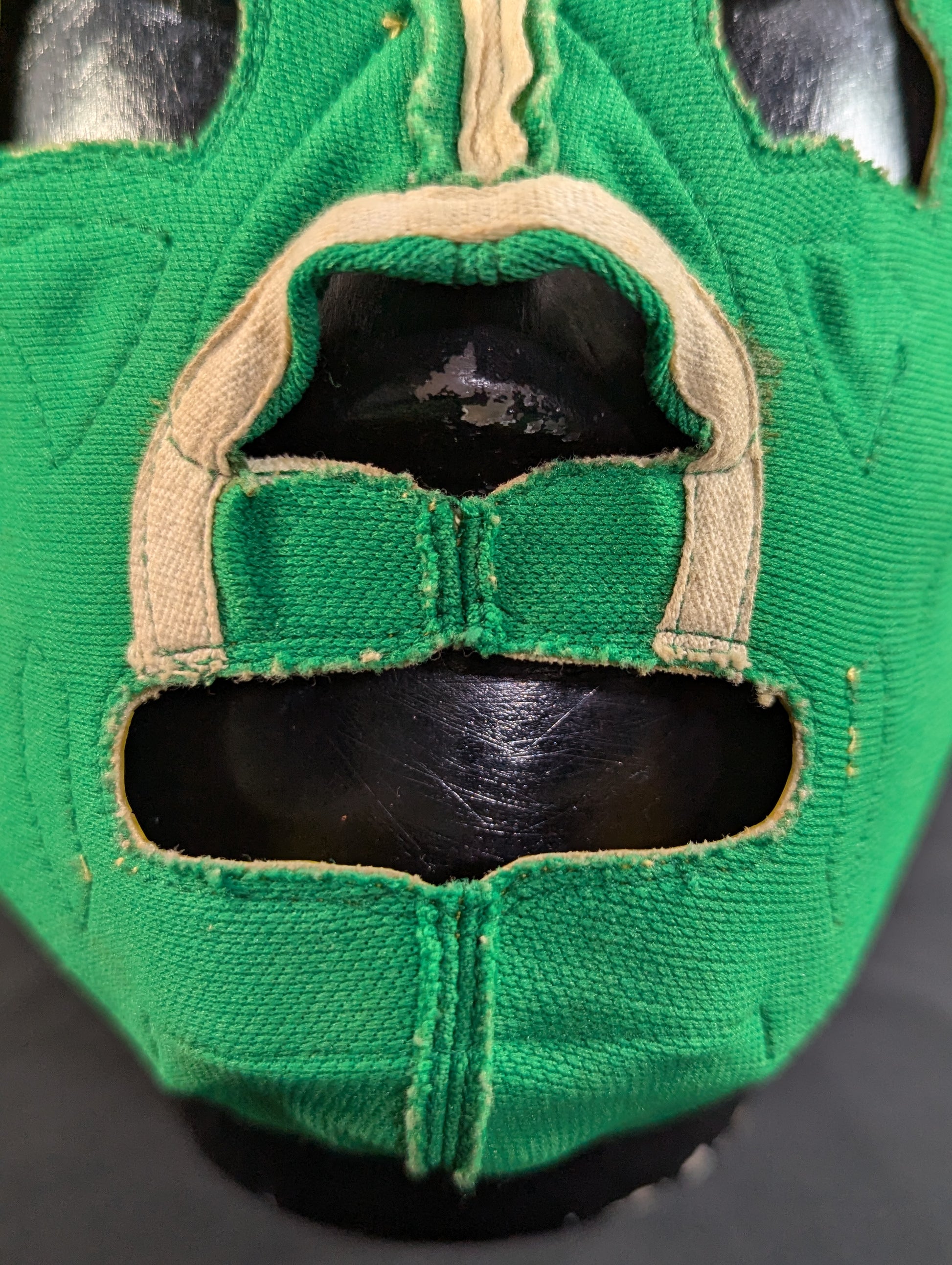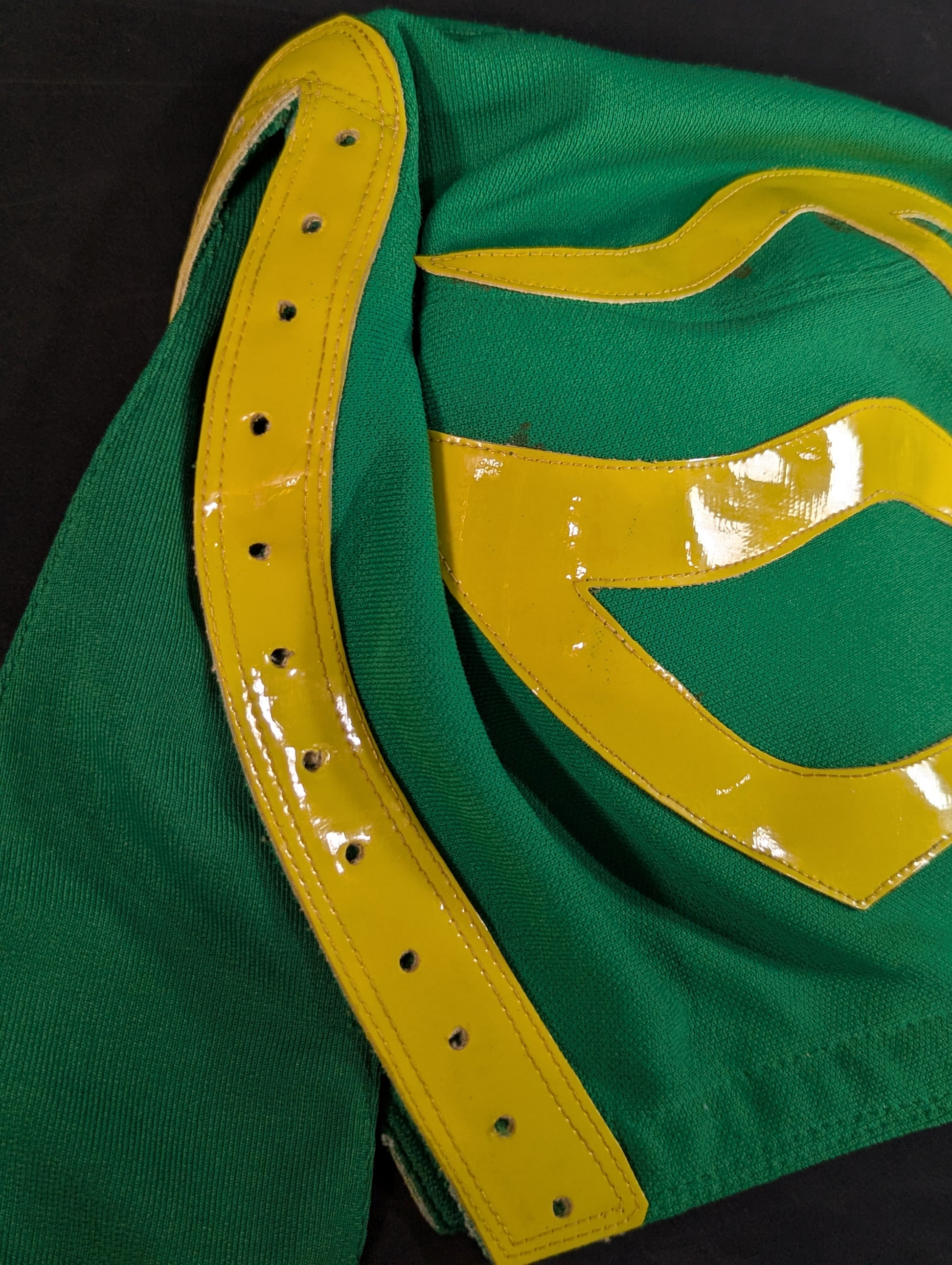 ★80's Original !! ★ Green jersey fabric Yellow edge Vero is jersey fabric of the same color Throat tape is a plain cotton material with a height width of 1.8 cm One cross tape vertical No lining It is said that it was used in a game in Mexico, but it has not been identified. PWMW Pro Wrestling Mask Museum Complete Guide Actual masks on page 29 Made by Miguel Ángel Aguilar in the early 1980s