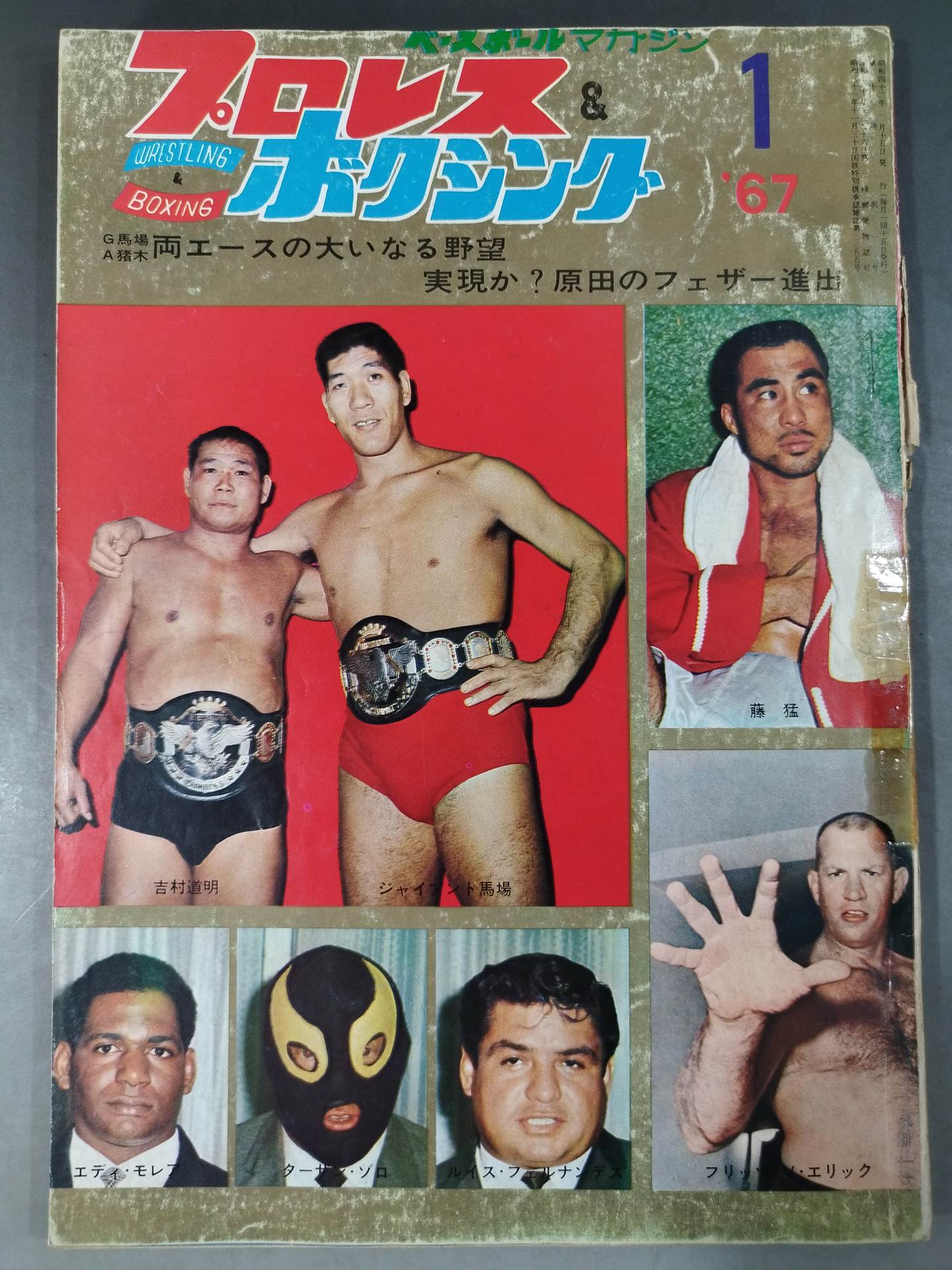1967 Baba vs. Eric Detailed Report Interview Baba, Inoki Cassius Clay vs. Cleveland Williams Cover: Giant Baba, Michiaki Yoshimura, Takeshi Fuji, Fritz von Erick, Eddie Morea, Tarzan Zorro, Luis Fernandez