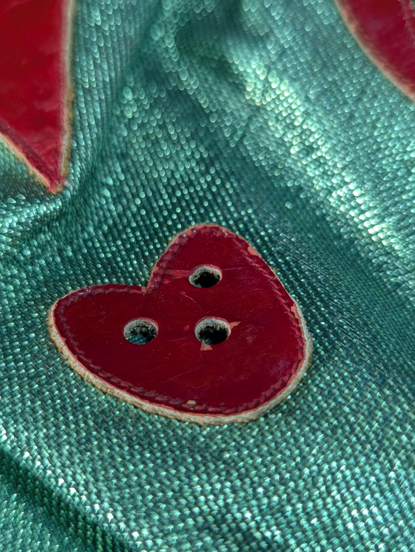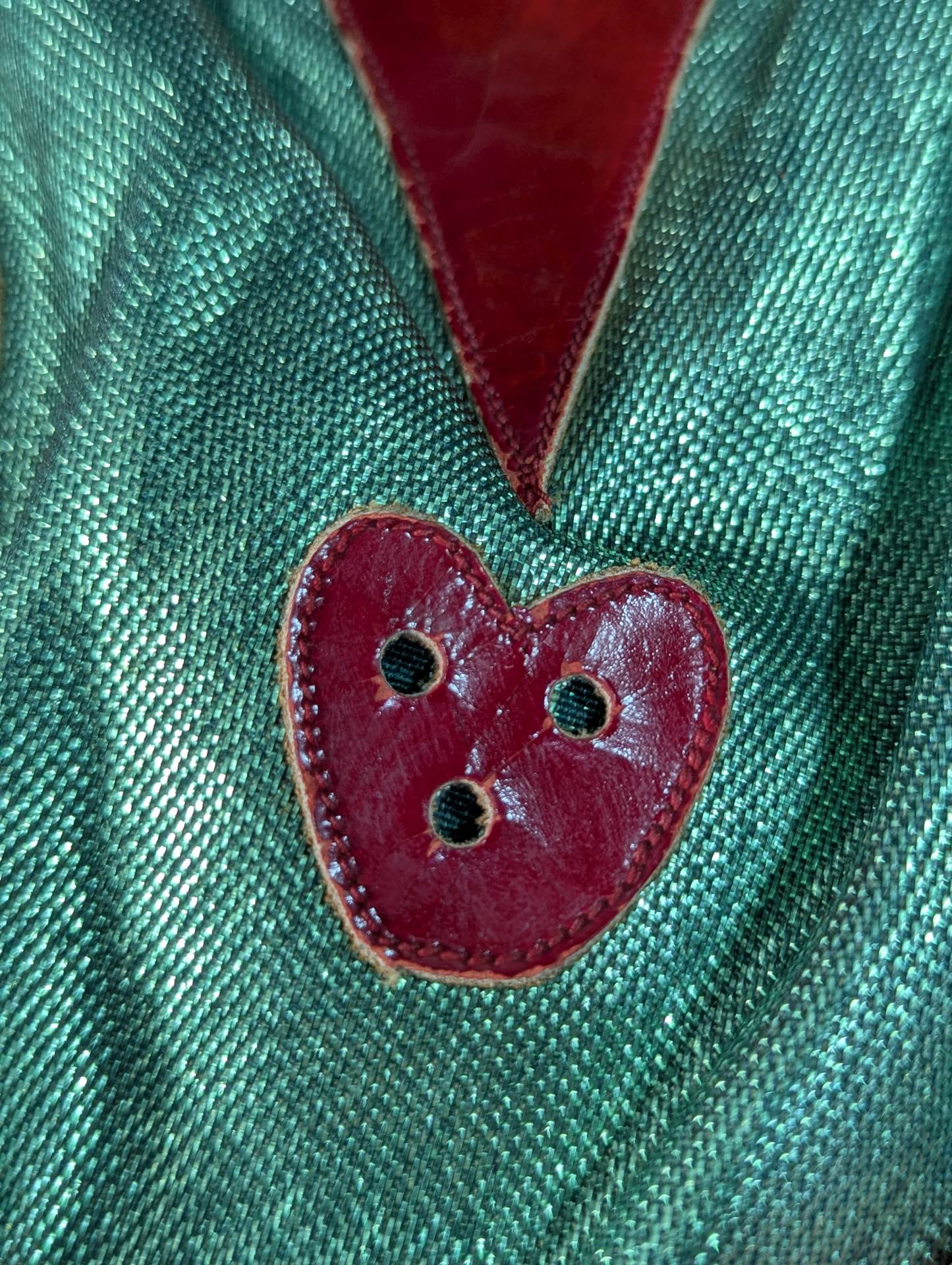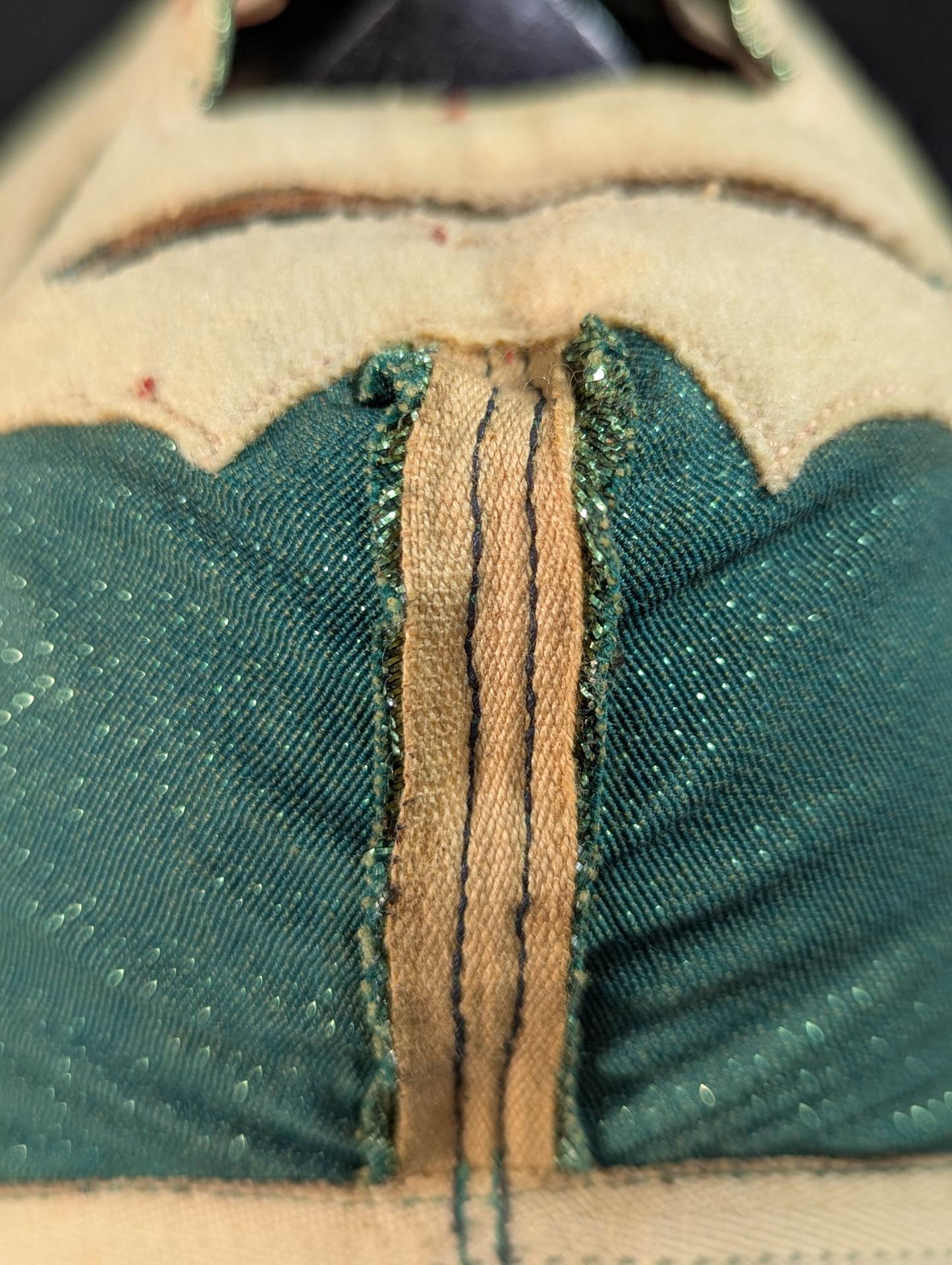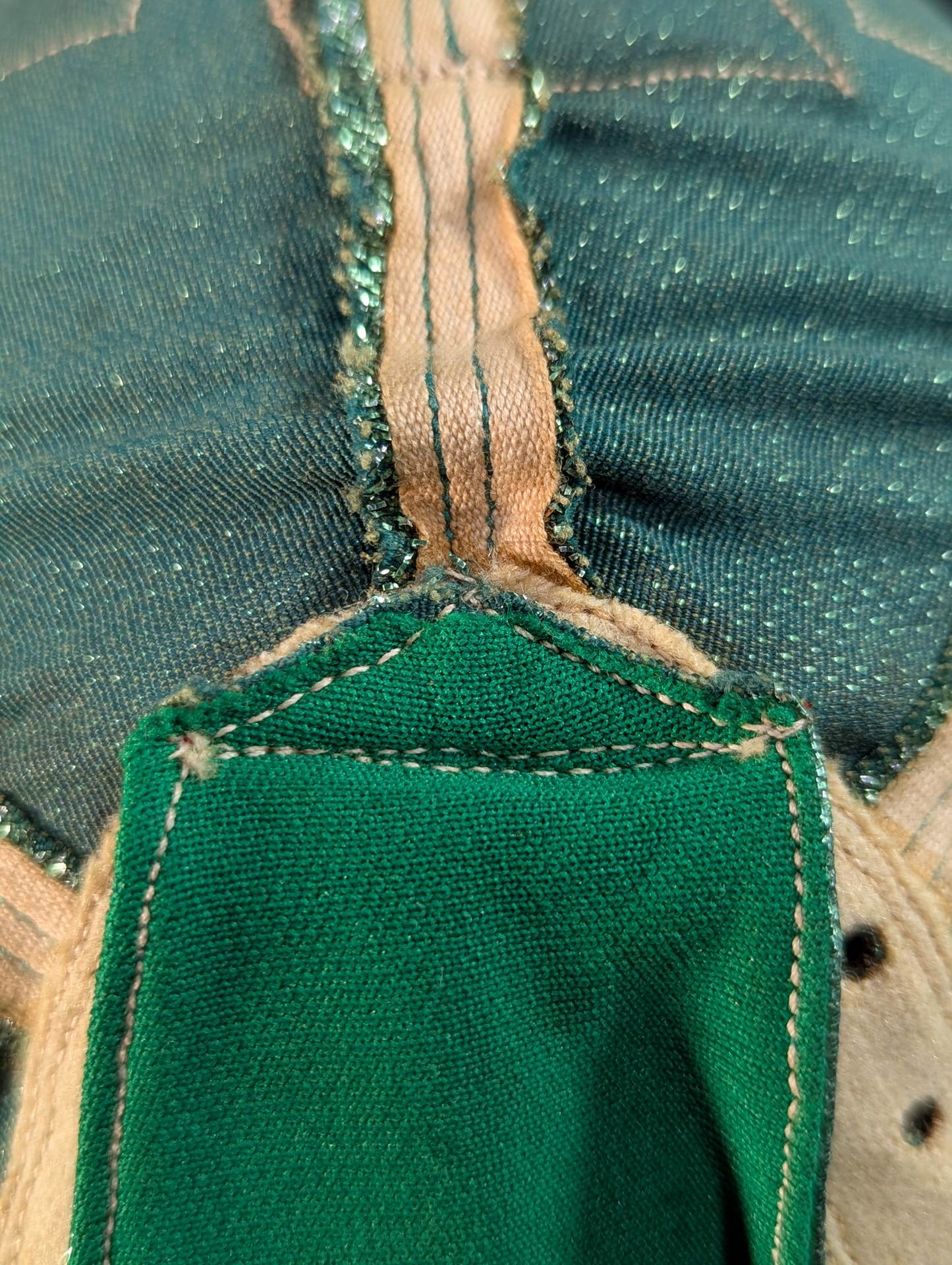 ★70s Original ★ Trade Type (Demon Eye) Green Rubber Glitter Red Leather Edge & Gold Leather edge Vero is made of the same material glitter and green jersey fabric The neck tape is 1.5 cm wide in height, with a green center stitch and one green stitch on the top and two on the bottom December 13, 1979, All Japan Pro Wrestling "Real World Tag League " On the last day of the "Tokyu Hotel, where he stayed, Mascaras himself gave it to his fans. "This is the destination!!" It is no exaggeration to say that the color scheme, rarity, difficulty of obtaining, and a super treasure class that only made a very small number of copies that met all of them, the phantom green rubber glitter made by Lopez ! !  Produced in the late 1970s