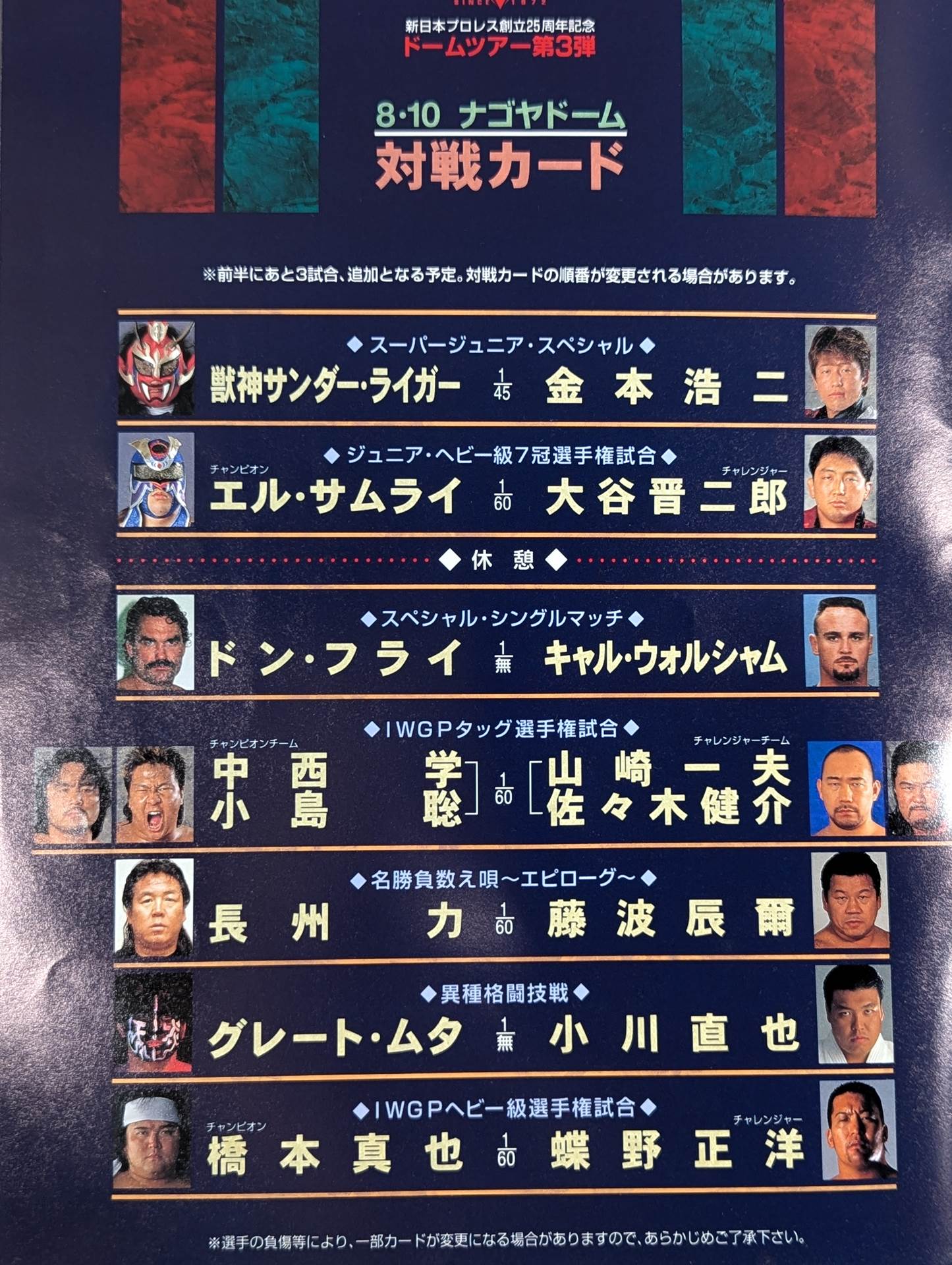 Venue: Nagoya Dome / list of the matches is printed : [IWGP Heavyweight fighters Tournament] Shinya Hashimoto vs Masahiro Chono (※Shinya Hashimoto vs Hiroyoshi Tenzan / Great Muta vs Naoya Ogawa / Riki Choshu vs Tatsumi Fujinami / [Junior 7-crown fighters match] El Samurai vs. Shinjiro Otani 25th Anniversary 97 Dome Tour 3rd