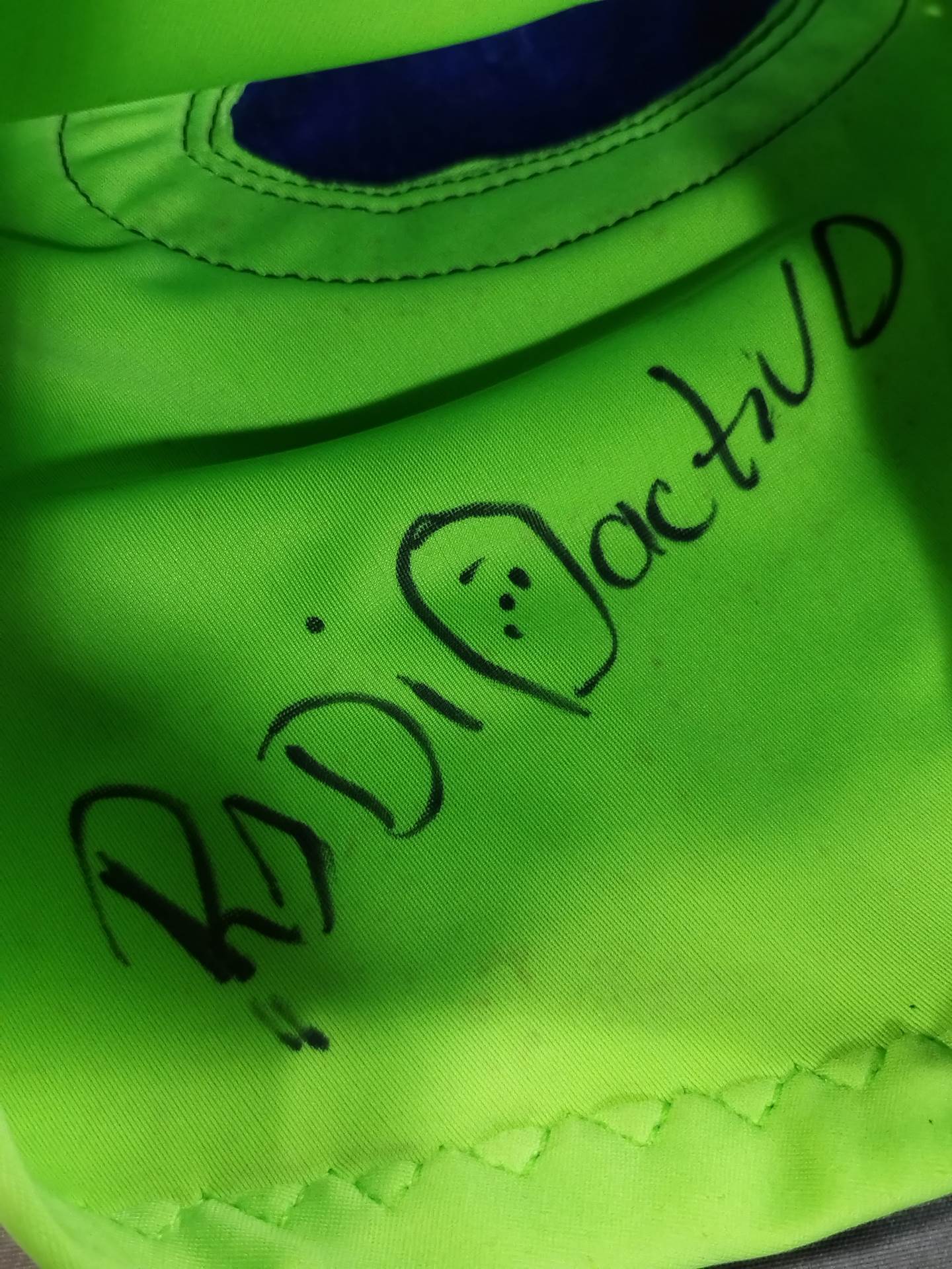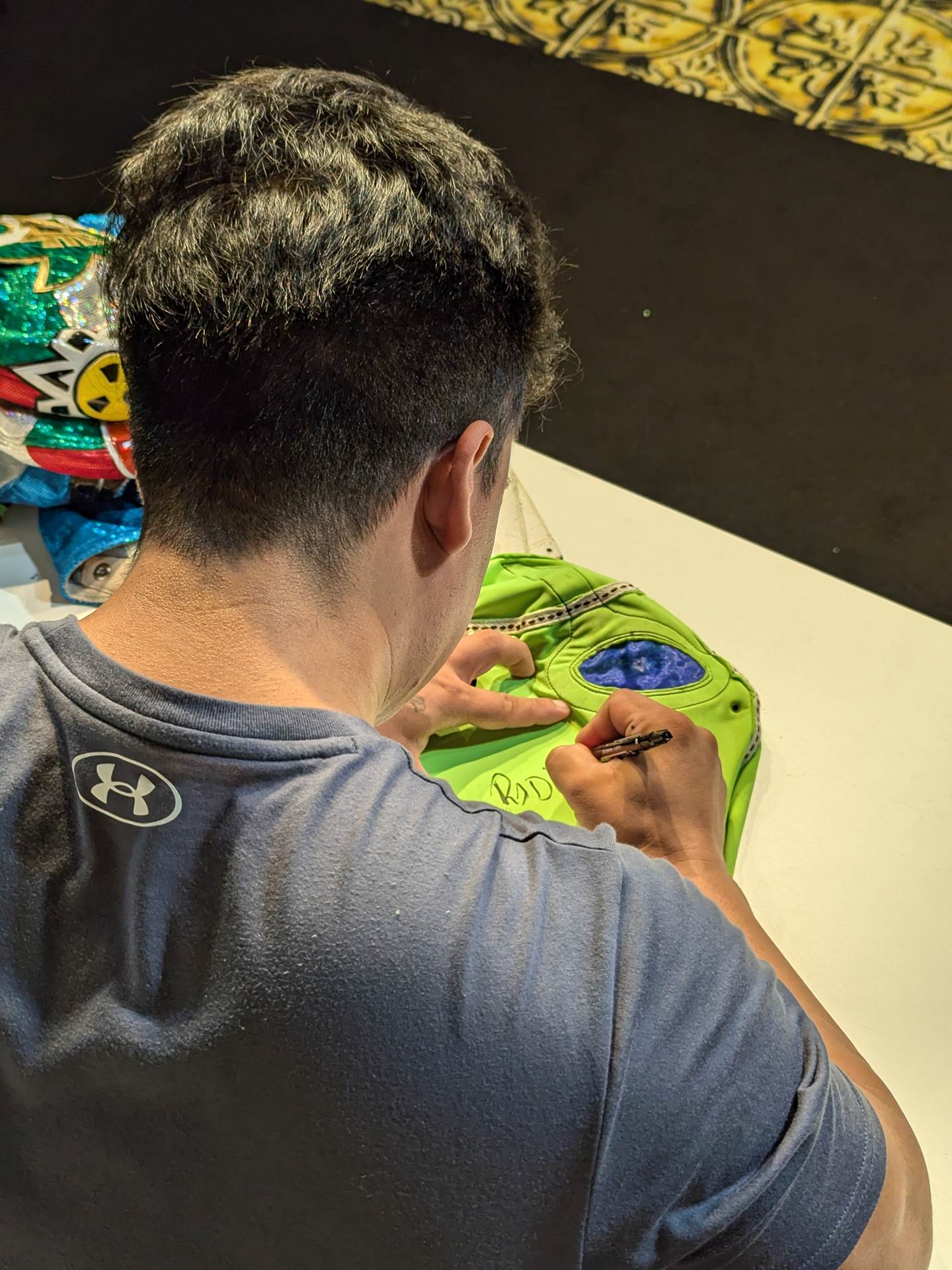 Signed by the person wearing it with photo Yellow-green leotard double fabric Black silver edge with rhinestone decoration Overmask used in the match in Mexico in 2024~2025
