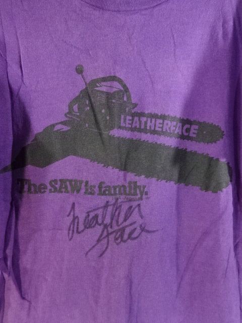 Leather Face "The SAW is family." T-Shirt (1) (IWA / Purple)