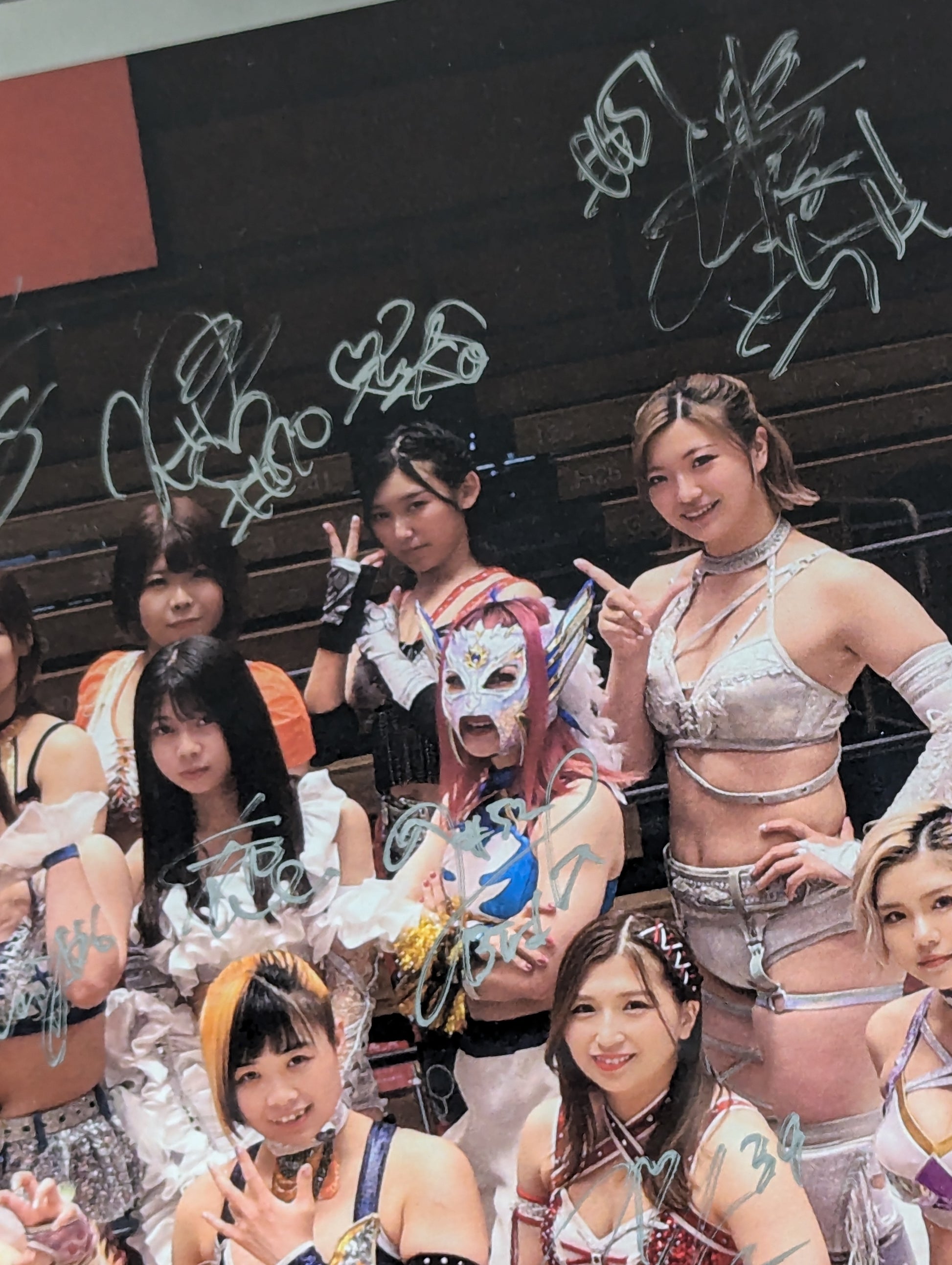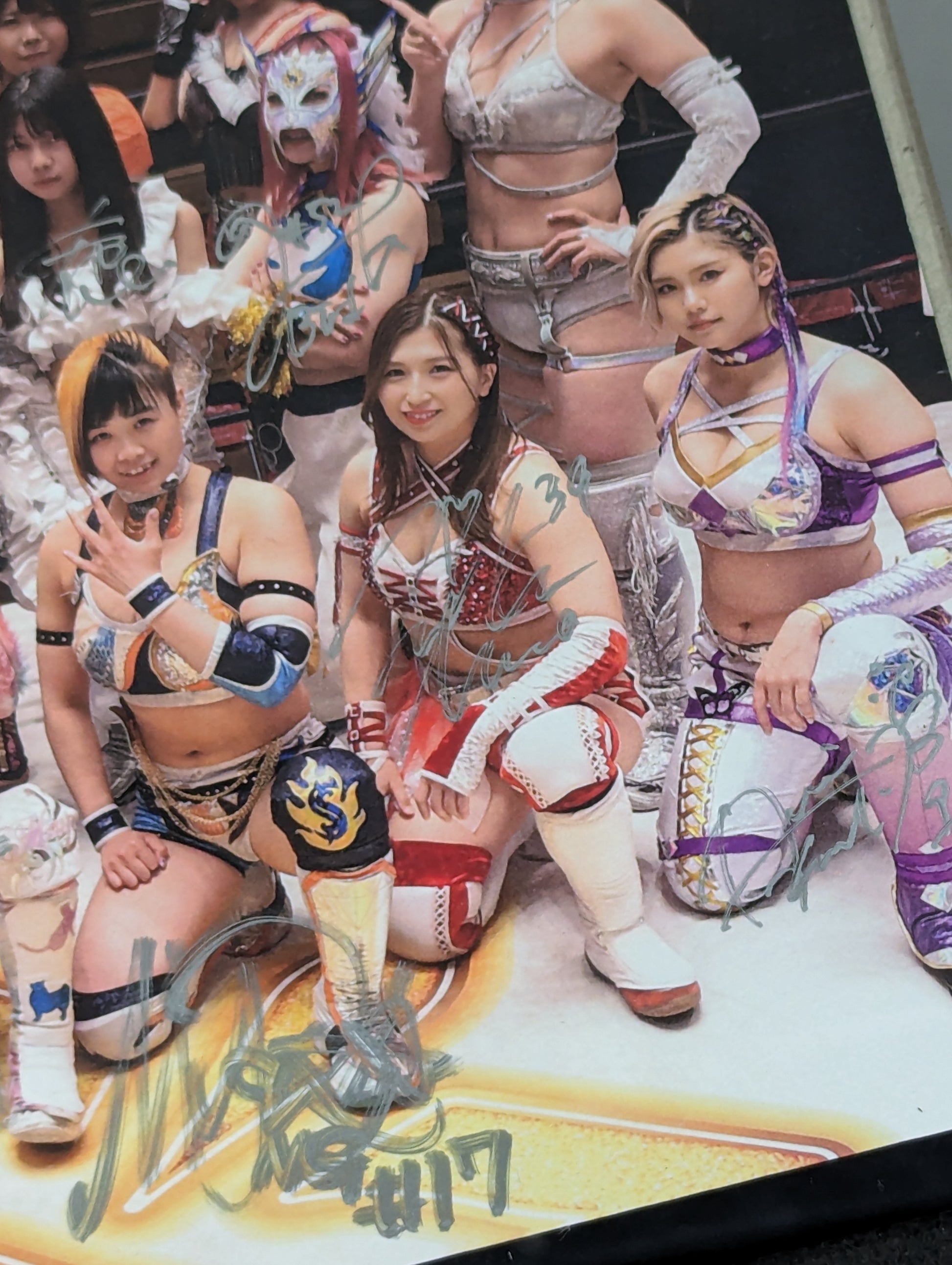 fighters Mayu Iwatani , Utami Hayashishita , MIRAI, Victoria Yuzuki , Miku Aono , Mai Sakurai, Natsumi Showzuki , Nao Ishikawa , Hummingbird, Seto Rare, Minami Komo, Seiren Yamaoka, Amarei Kouki , Kizuna Tanaka, Chika Goto , Kokoki, Nanae Takahashi , Misa Matsui , CHIAKI, Megaton, Minami Yugi, Ryoko Sakimura, Nagisa Tachibana, a total of 23 people hand signed autograph!