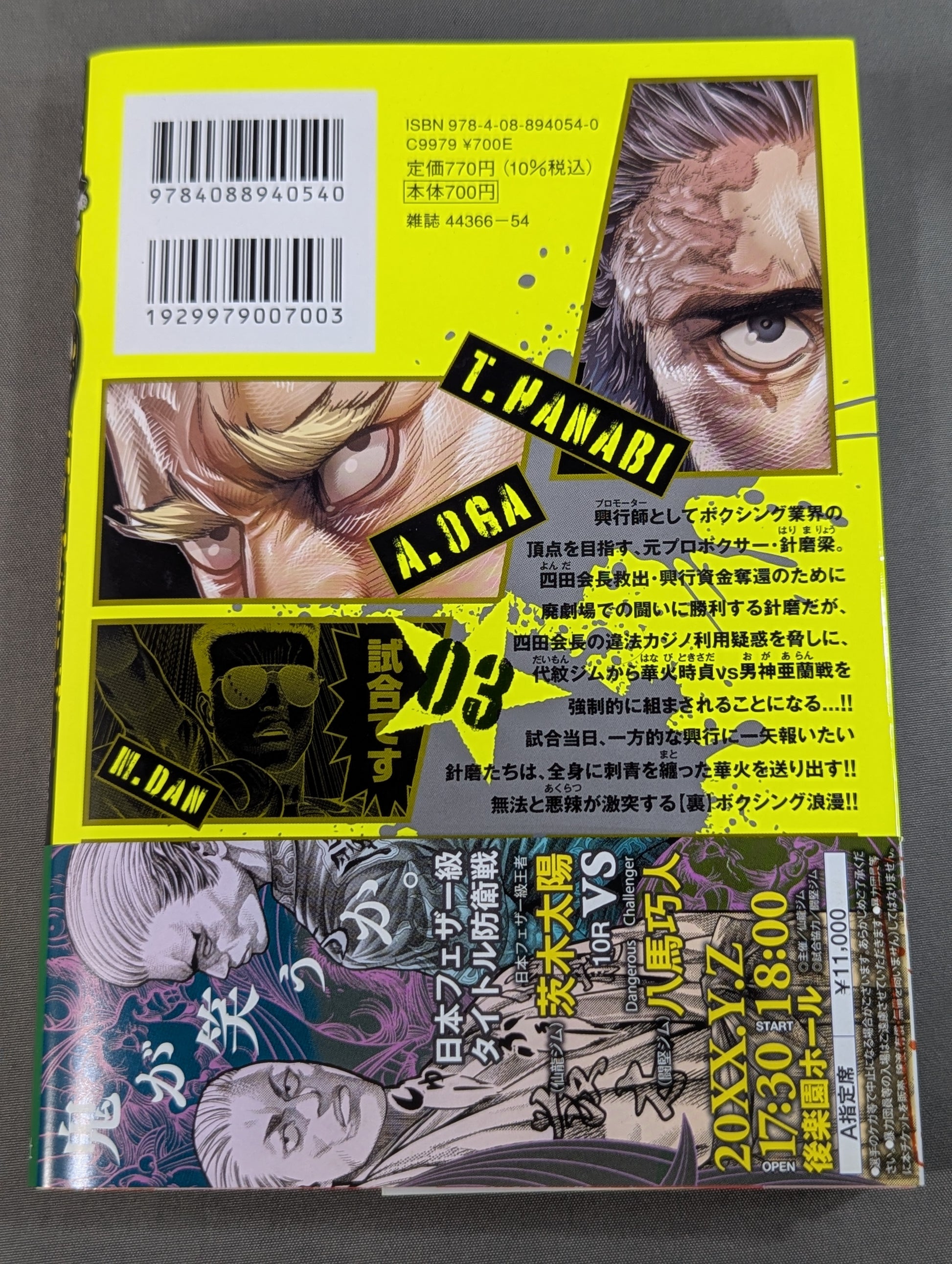 Manga (Young Jump Comics) Shueisha / Former professional boxer Harima Ryo falls into a two-year coma after a certain match. Just as he wakes up, he is waiting for the end of the fighters' life, the death of his father, and the betrayal by his gym. Angry and sad, Harima vows to make a name for himself in the boxing world as a showman! ! This is the story of those who manipulate their fists, make money, and live behind the scenes of boxing!!!