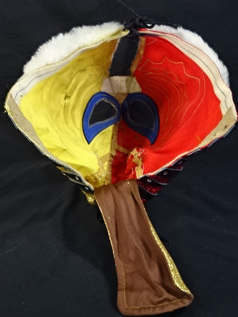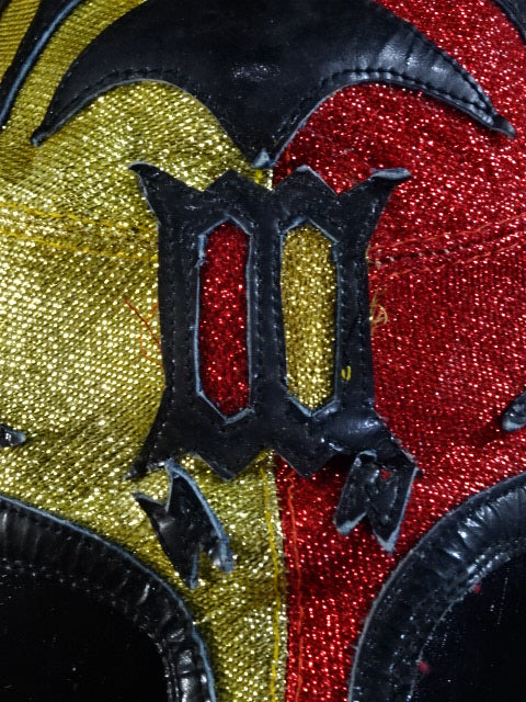 ★ Vintage vintage mask ★ red & gold half-flame black leather edge