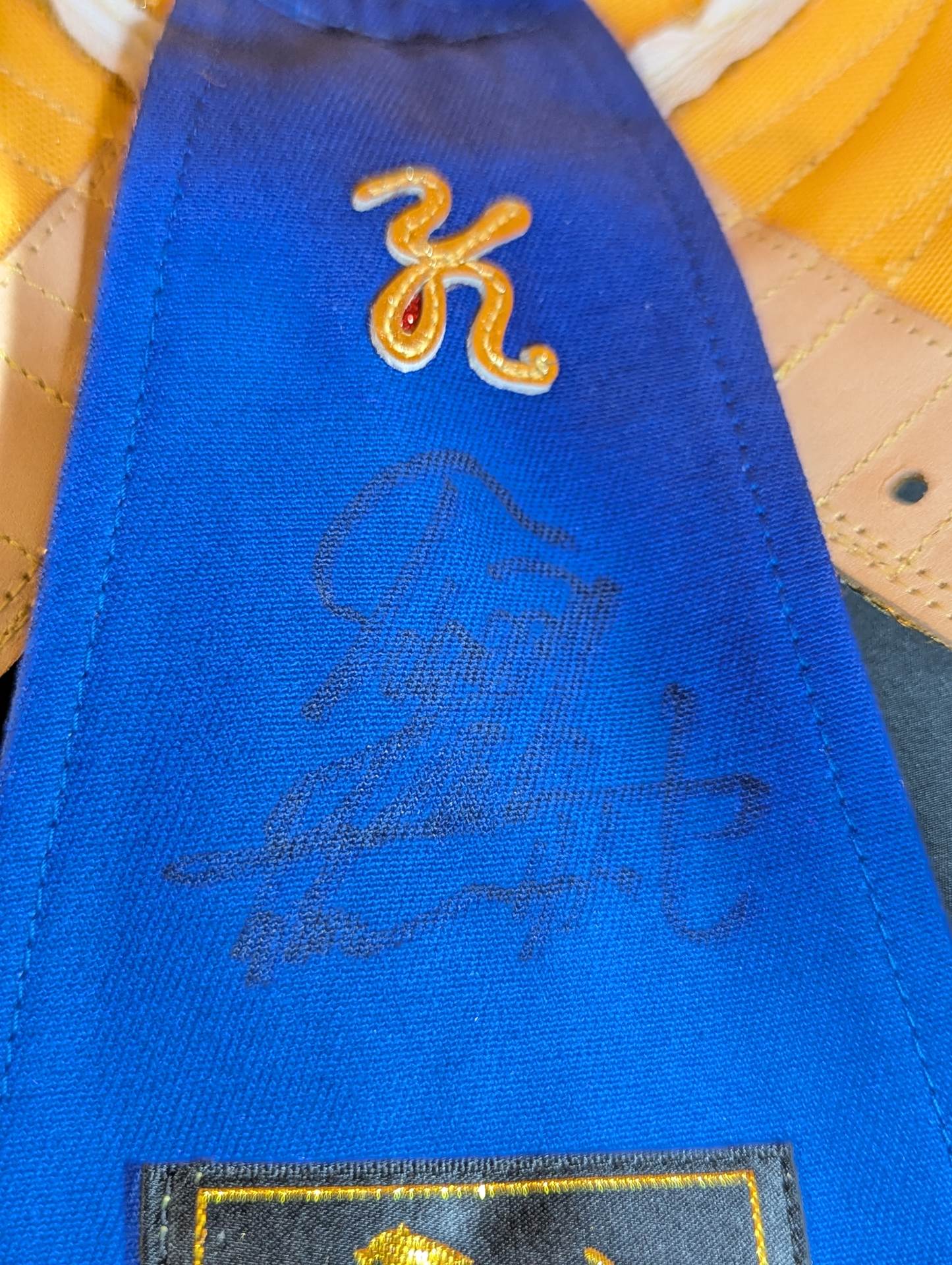 ★ Goat type ★ hand signed autograph W name with W name Gold glitter double fabric (mesh upholstery) Black leather edge