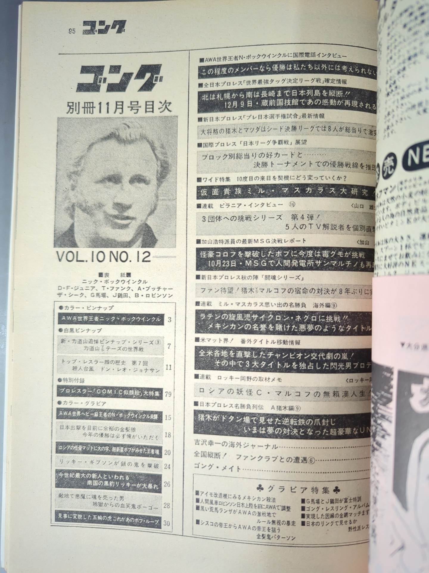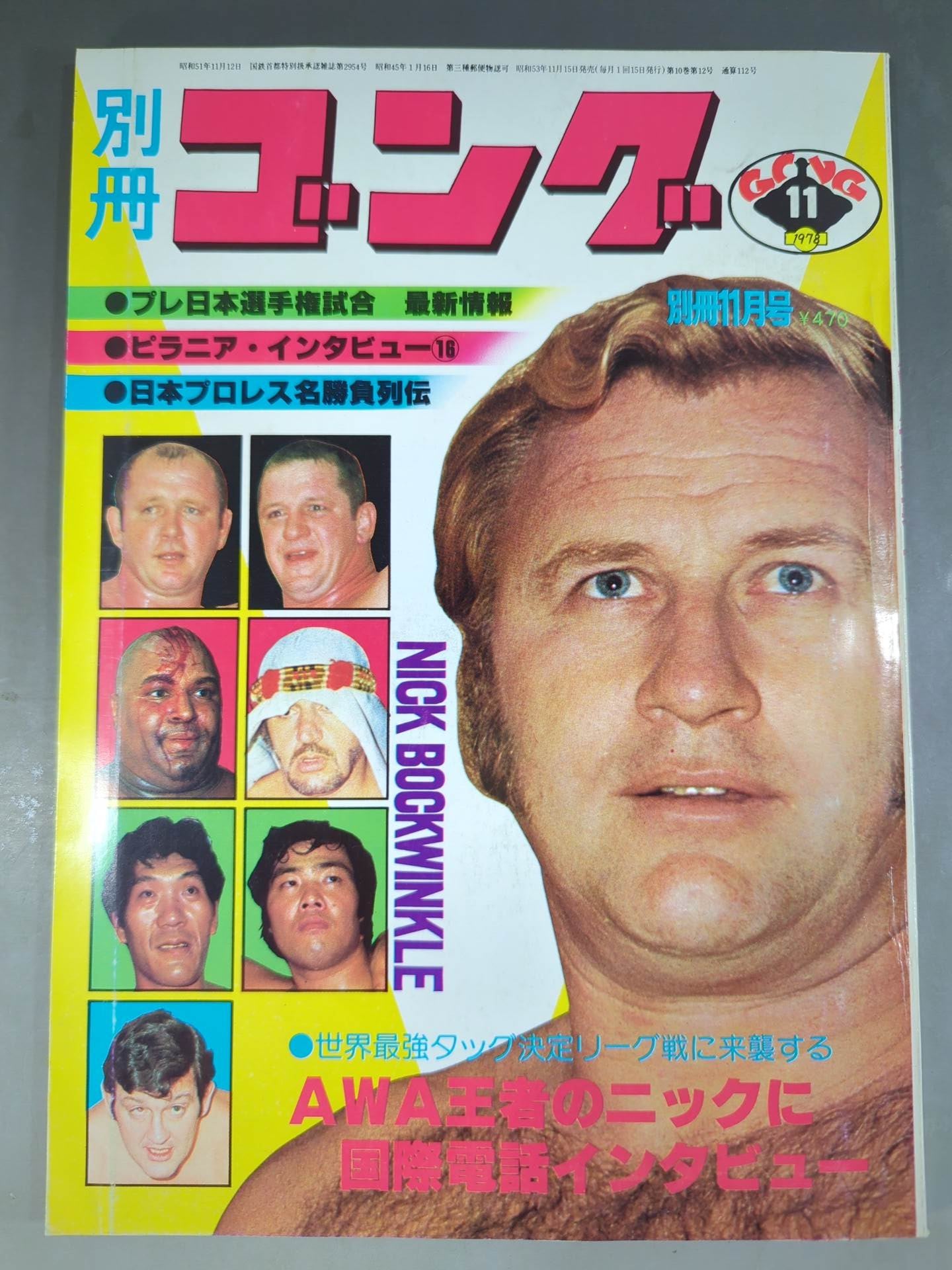 1978 International telephone interview with AWA champion Nick / [Appendix] 〇 Color pin-up (Nick Bockwinkle) 〇 Black and White pin-up ( Rikidozan Memorial Pin-Up Series World War with Taze) 〇 Black and White Pin-Up (Don Leo Jonathan) 〇 Special Appendix (Comic Caricature Special Feature) Cover: Nick Bockwinkle