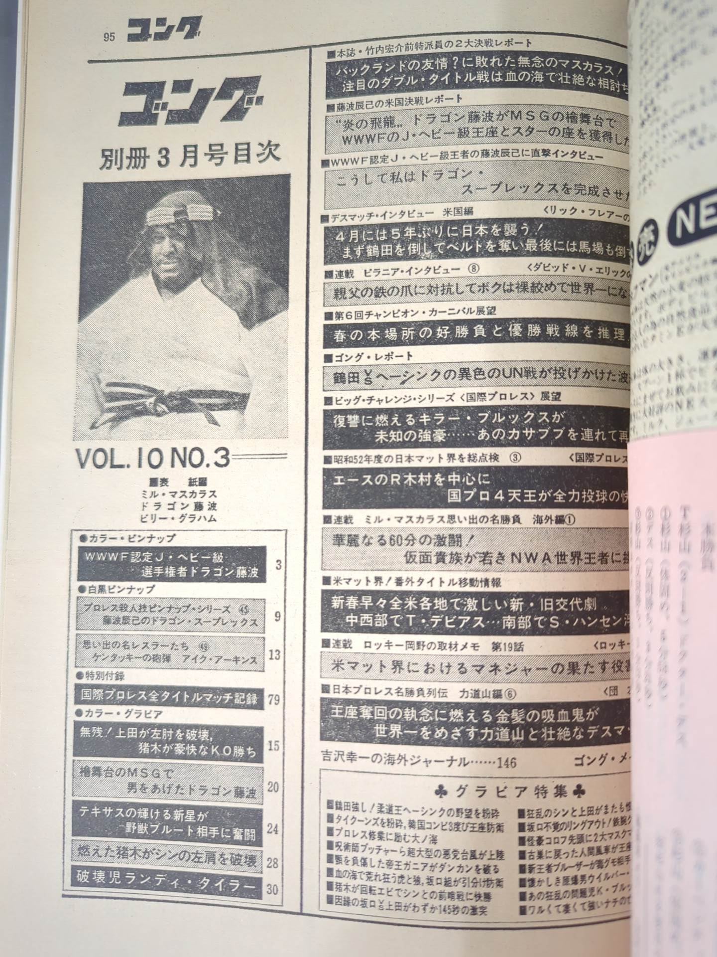 Popularity! Deathmatch Interview USA Edition Part 1 ・Dragon Fujinami US Decisive Battle Complete Detailed Report / [Appendix] ◯ Color Pin-Up (Dragon Fujinami) ◯ Black and White Pin-Up (Pro Wrestling ) Murder Technique Series Dragon Suplex) ◯ Black and White Pin-Up (Ike Arkins) ○ Special Appendix (New International Pro Wrestling All Title Match Records)