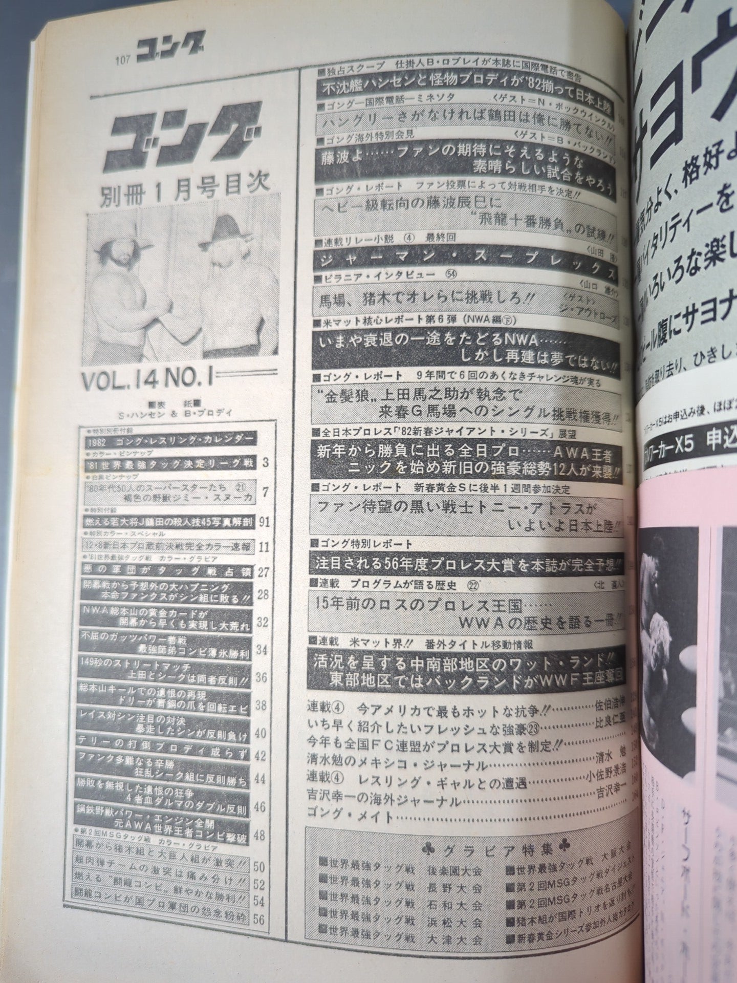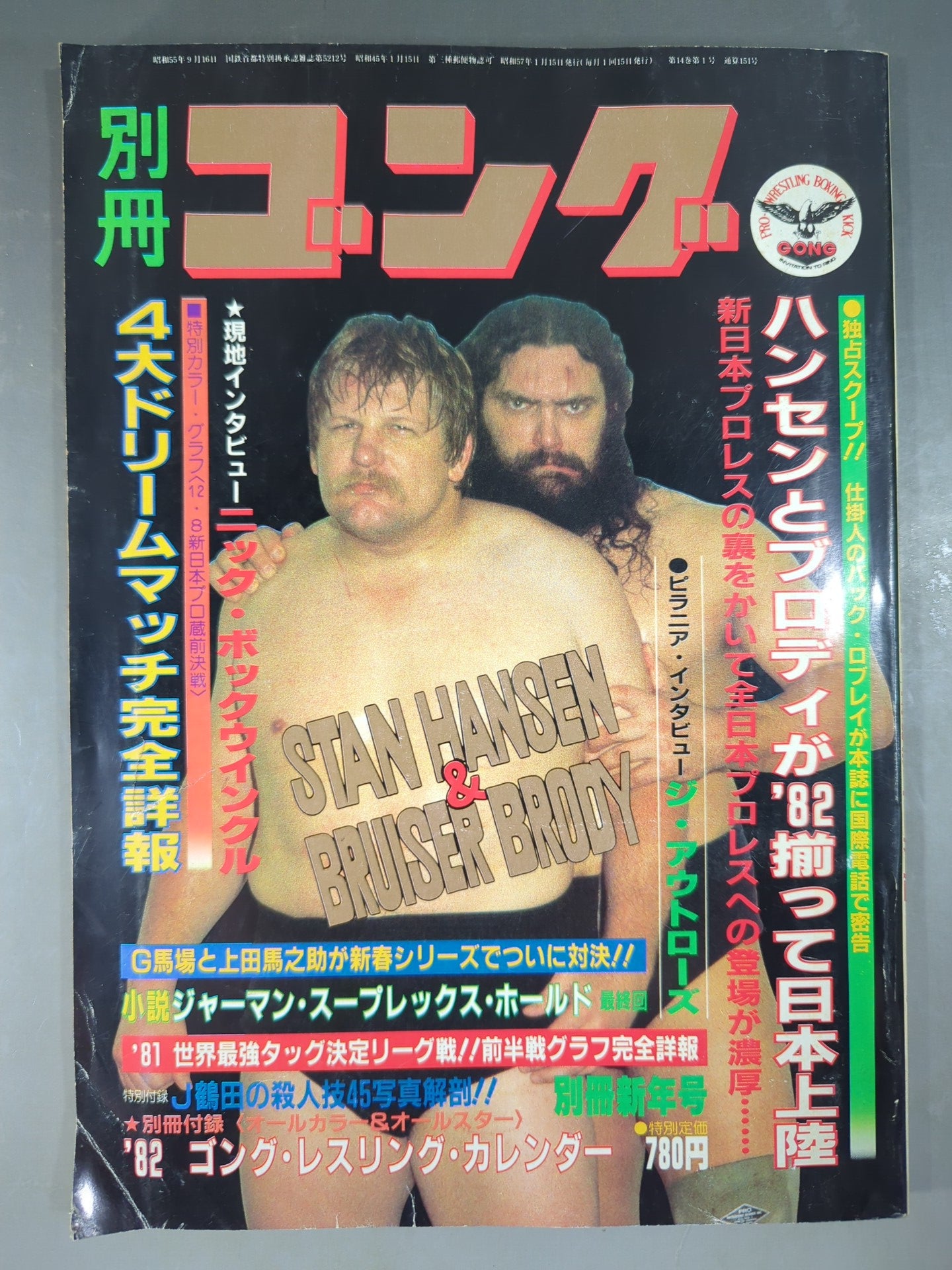 Hansen and Brody land in Japan together Baba and Ueda finally face off! / [Appendix] ◯ Color Pin-Up (81 Strongest Tag Team Entrance Ceremony) ◯ Black and White Pin-Up (New Overseas Pin-Up Series Jimmy Snuka ) ○ Special Appendix (Jumbo Tsuruta Murder Technique 45 photo Anatomy) × Appendix (1982 Calendar) Cover: Stan Hansen &Bruiser Brody