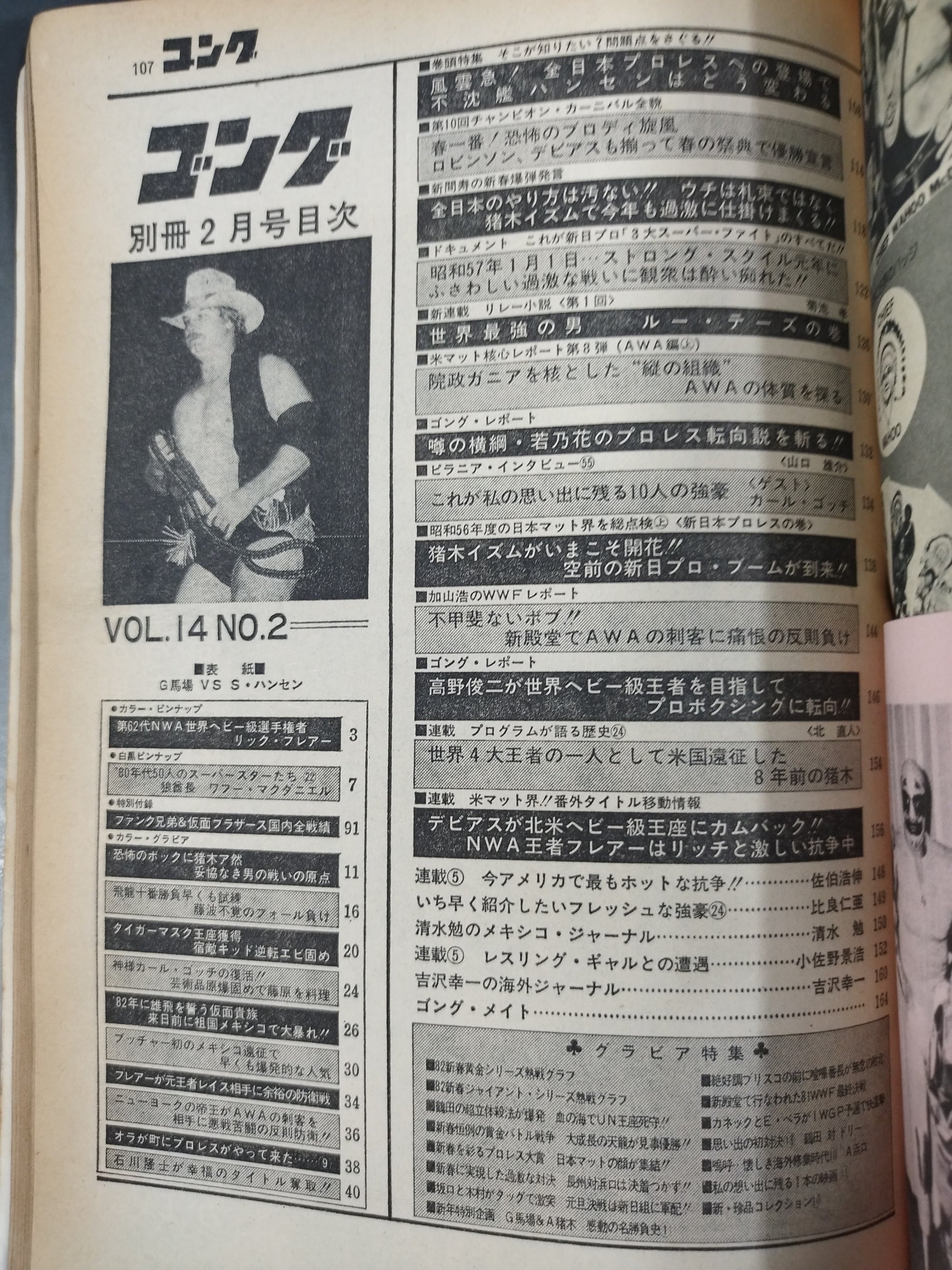 1982 How the appearance of Stan Hansen will change all Japan pros / [Appendix] ○ Color Pin-Up (Ric Flair) 〇 Black and White Pin-Up (New Overseas Pin-Up Series: Wahoo McDaniel) ○ Special Appendix (Wrestler All Results Series The Funks, The Masked Brothers)