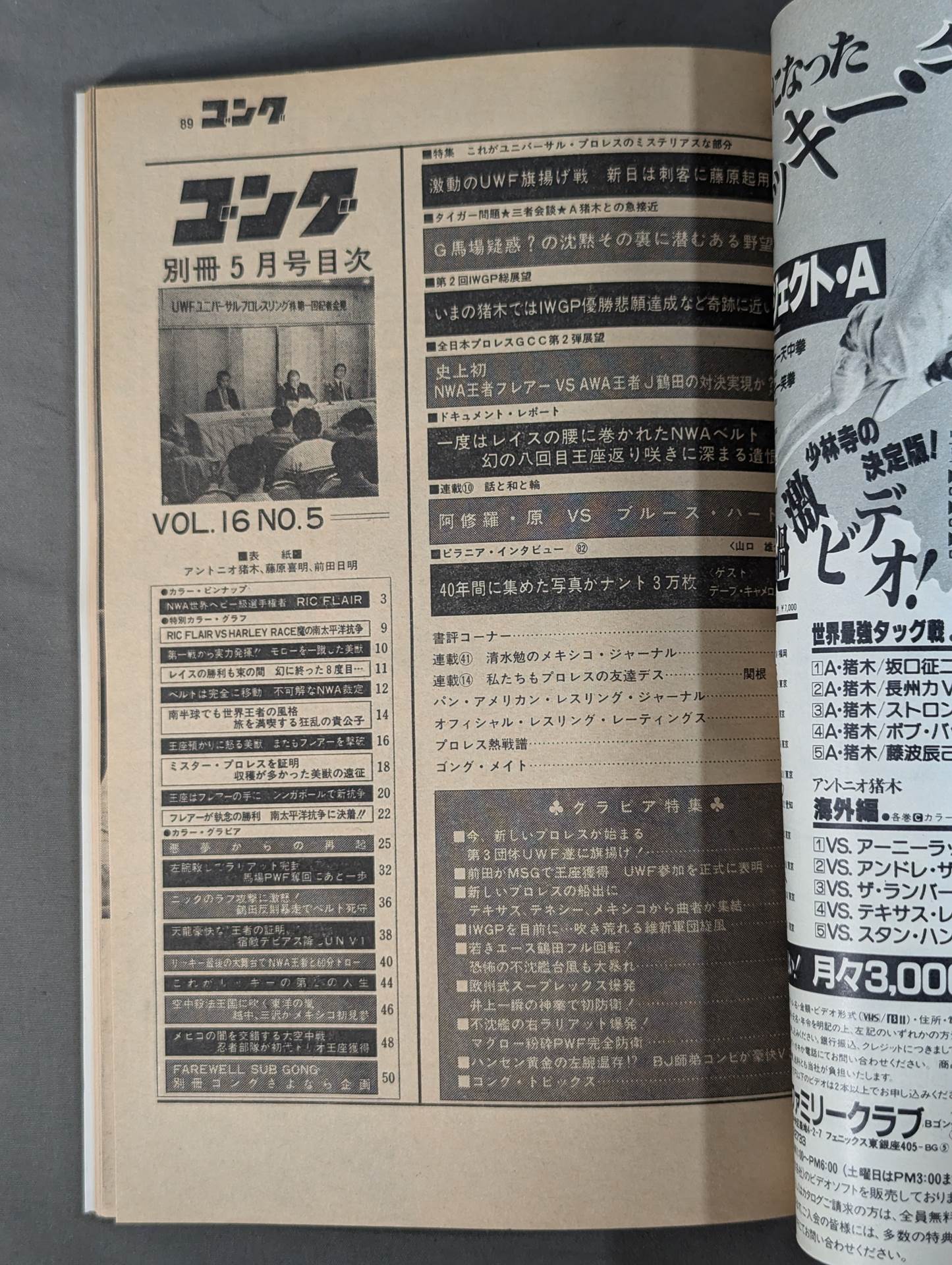 ・Final issue ・The turbulent UWF First Show New Japan appoints Fujiwara as an assassin [Appendix] ◯ Color pin-up: Rick Flair Cover: Akira Maeda , Yoshiaki Fujiwara , Antonio Inoki