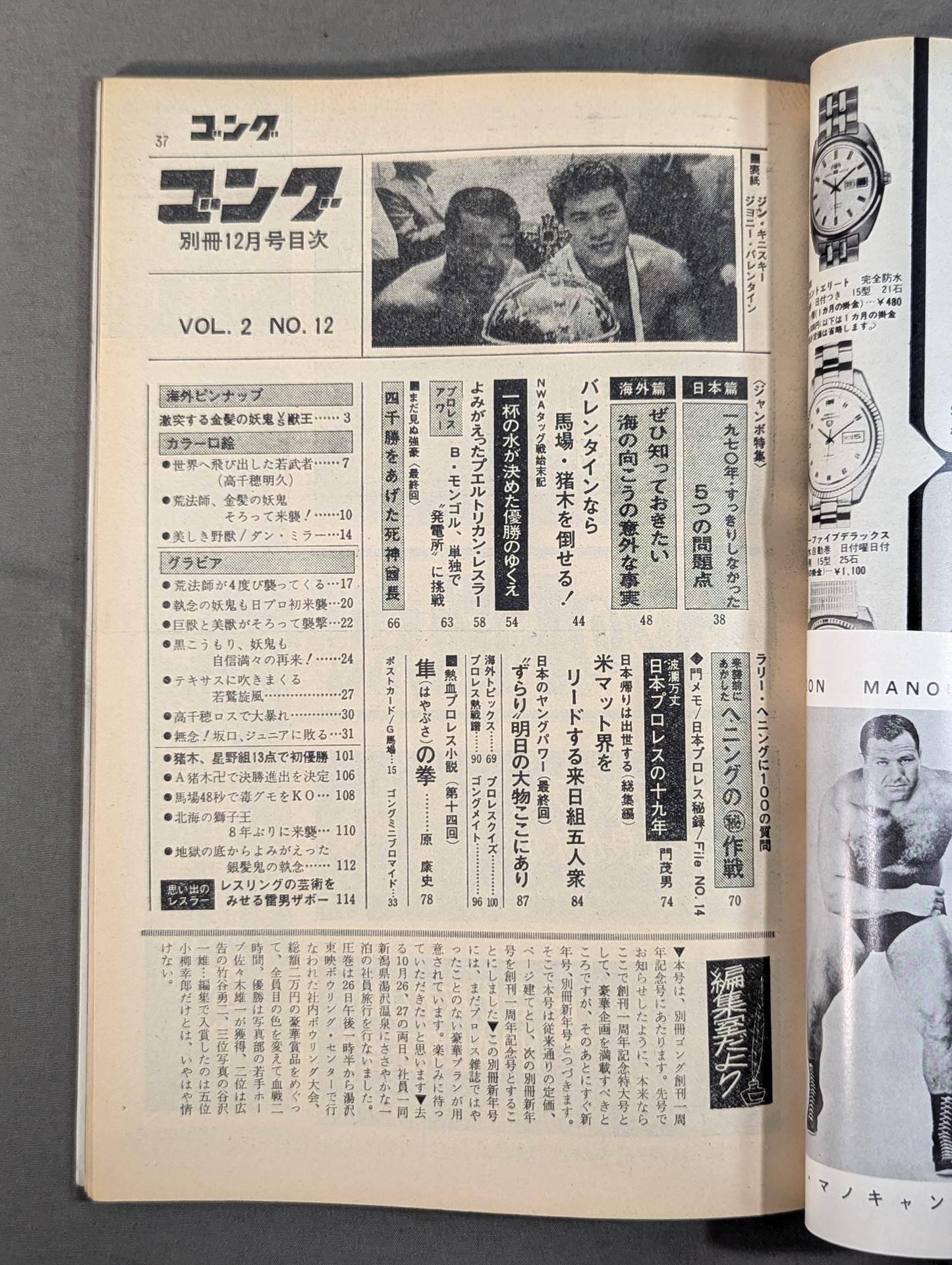 Inter Champion Series Outlook 1970 - The Future of 10 Major Problems Valentine's Day Arrival Information NWA Tag Team Battle Review / [Appendix] ◯ Pin-Up (Bill Miller vs Johnny Valentine) ◯ Postcard (Giant Baba ) ◯ Gong Mini Promide Cover: Gene Kiniski , Johnny Valentine