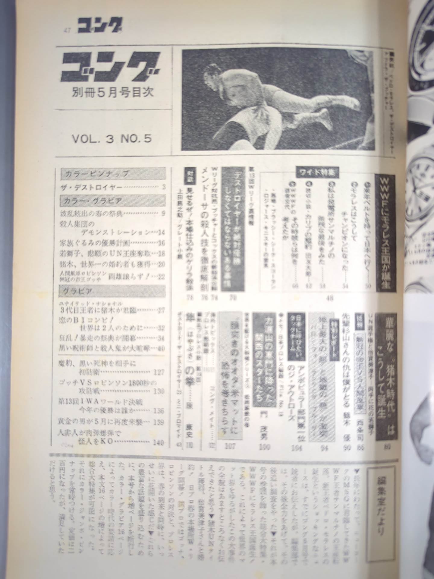 1971 〈Wide Feature〉All about the new WWWF champion P. Morales! / [Appendix] × Pin-Up (The Destroyer) × Postcard (The Destroyer) △ Gong Mini photo (with some clippings) Cover: Pedro Morales, The Destroyer, Abdullah the Butcher