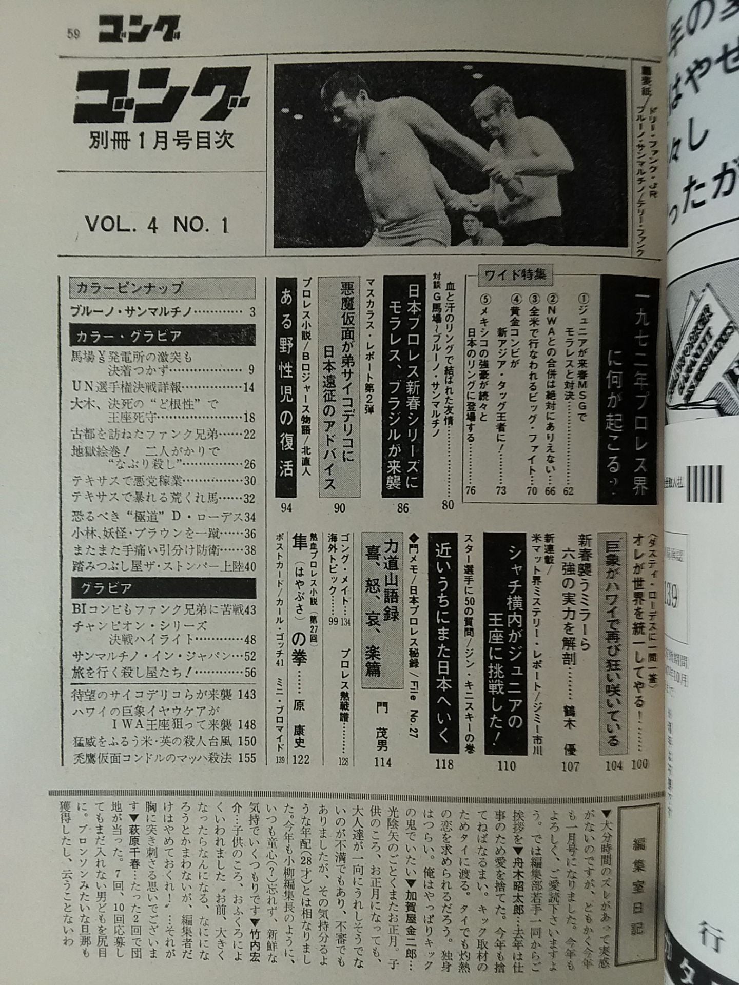 Champion Series Final Detailed Report / [Appendix] ◯ Postcard (Karl Gotch ) ◯ Gong Mini Promide ◯ Pin-Up (Bruno Sammartino ) ×Black and White Jumbo Poster (El Sicodelico & Mil Mascaras ) Cover: Dory Funk Jr. , Bruno Sammartino, Terry Funk