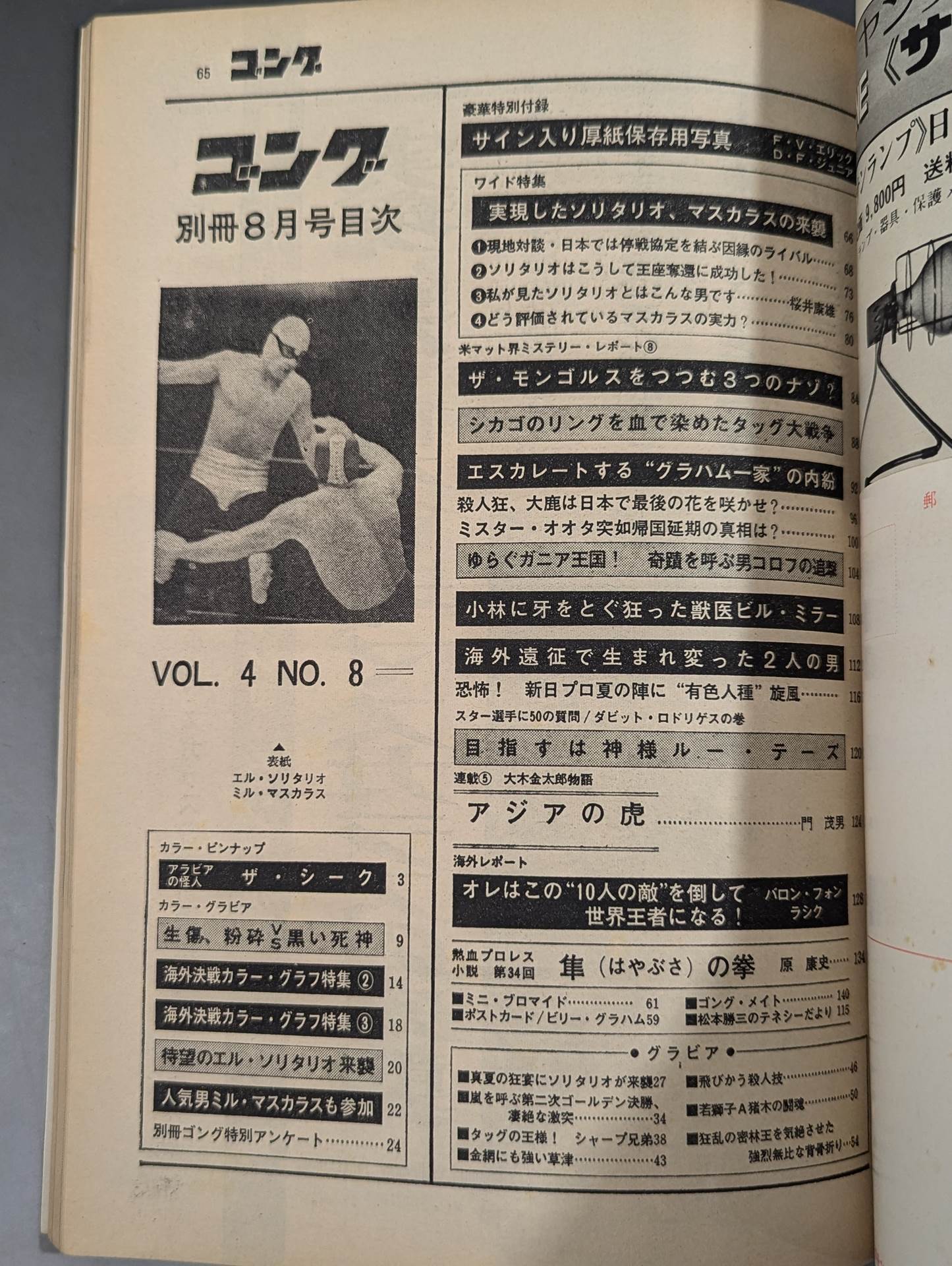 Solitario, Mascaras Commemorative Issue / [Appendix] ◯ Pin-Up (The Sheik ) ○ Postcard (Billy Graham) ◯ Gong Mini photo × Special Wall-Mounted Promide (Fritz Von Erich, Dory Funk Jr. )