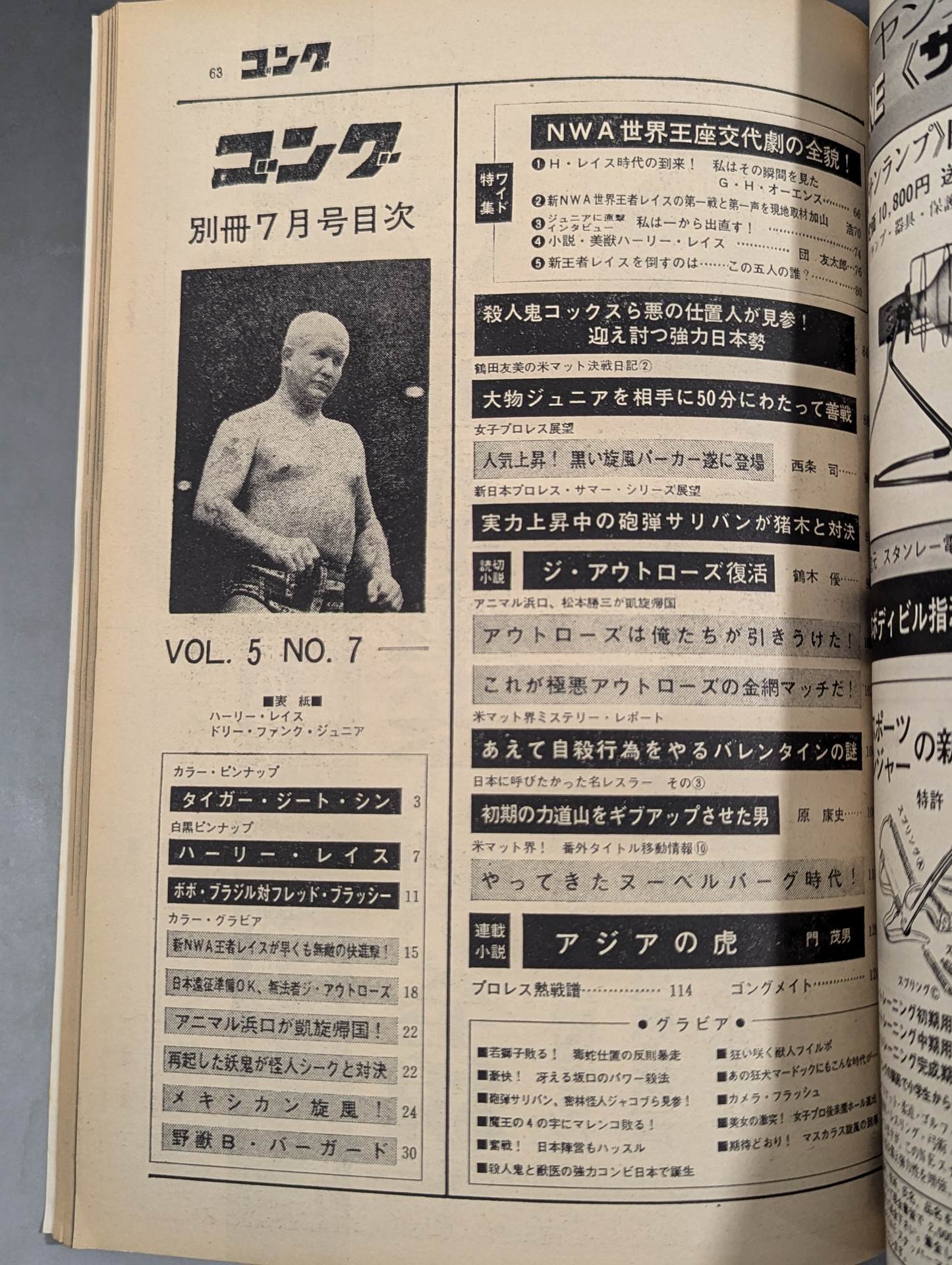 Complete detailed report of the NWA World Championship Change Drama / [Appendix] ◯ Color Pin-Up (Tiger Jeet Singh ) ◯ Black and White Pin-up (Harley Race ) ◯ Black and White Pin-up (Bobo Brasil vs Bobo Brasil) Fred Blassie ) / Cover: Harley Race , Dory Funk Jr.
