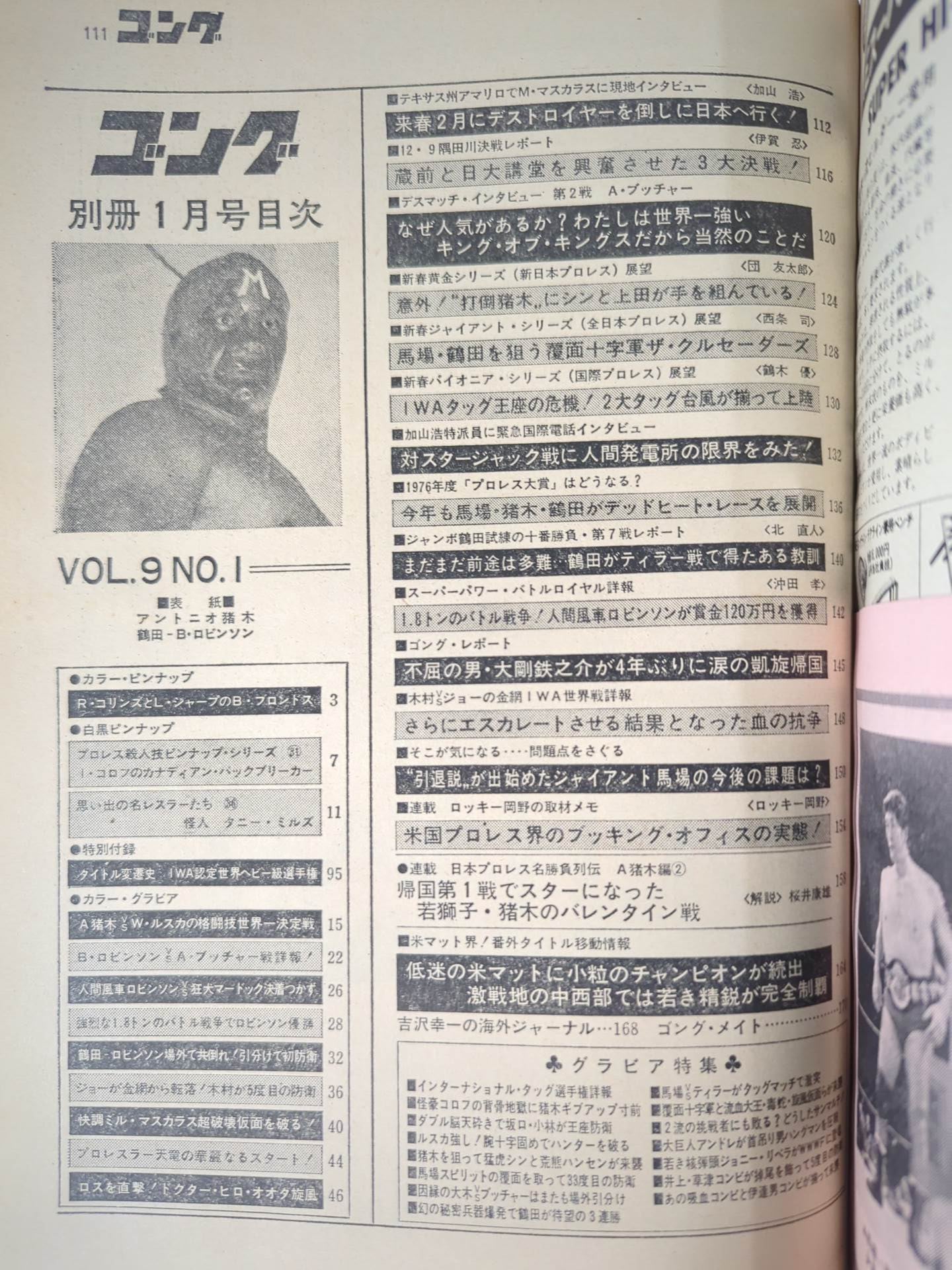 12.9 Sumida River Battle Complete Detailed Report Issue Local press conference with Mil Mascaras / [Appendix] 〇Color Pin-Up (Larry Sharp, Ripper Collins) 〇Black and White Pin-Up (Pro Wrestling Killer Series [30] Canadian Backbreaker) 〇Black and White Pin-Up (Tunny Mills) 〇 Special Appendix (IWA World Heavyweight Fighters Rights Part 2 in the Title History Series) / Cover: AntonioInoki