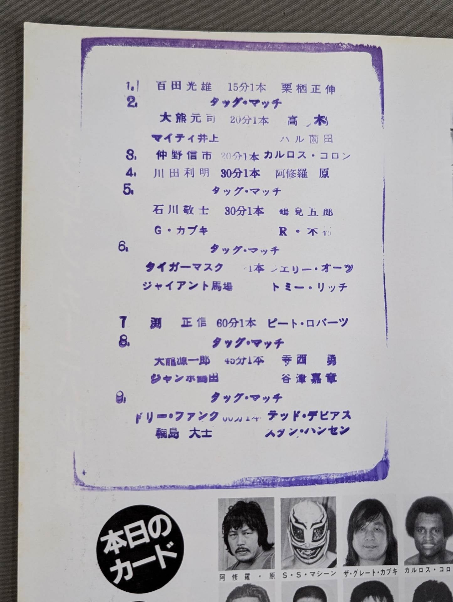 Venue: Korakuen Hall / stamped with list of matches : Dory Funk Jr. .& Wajima vs. Ted DiBiase & Stan Hansen / Tenryu Genichiro & Jumbo Tsuruta vs Isamu Teranishi & Yoshiaki Yatsu