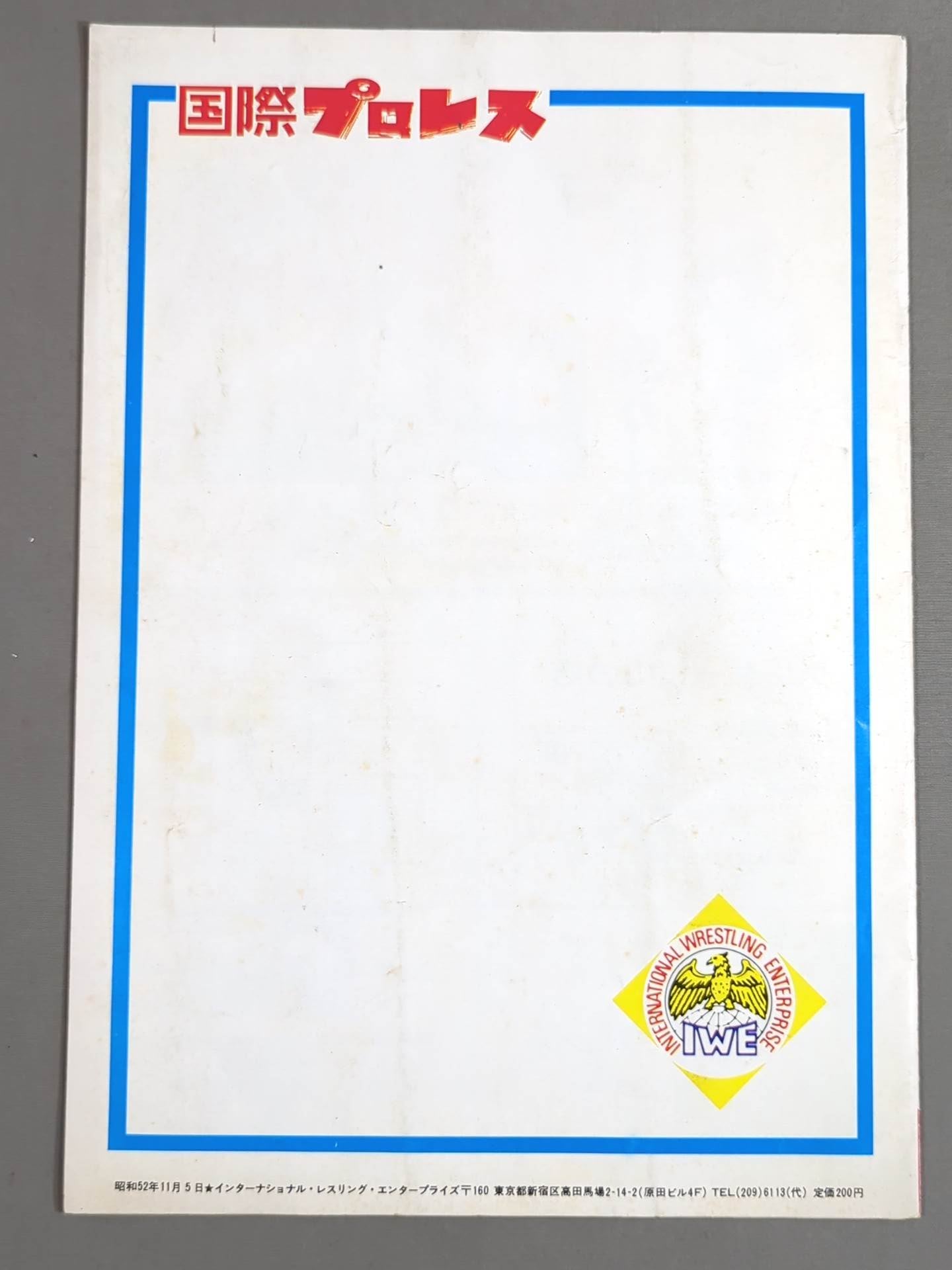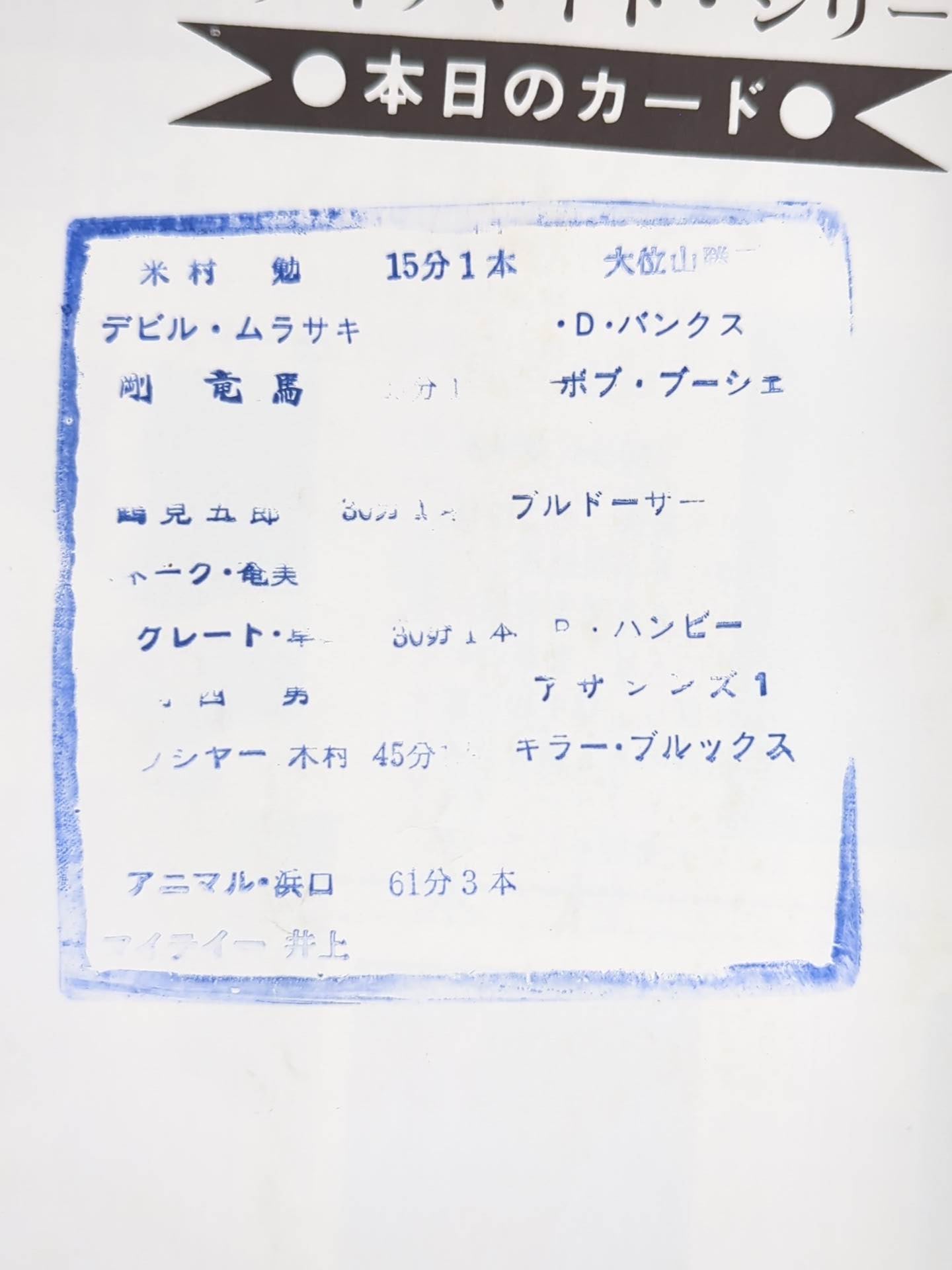 Venue: Korakuen Hall / stamped with list of matches :[ Asian Tag Team fighters Match] Mighty Inoue & Animal Hamaguchi vs. Blank (Great Kojika &Motoshi Okuma / Rasher Kimura vs Killer Brooks