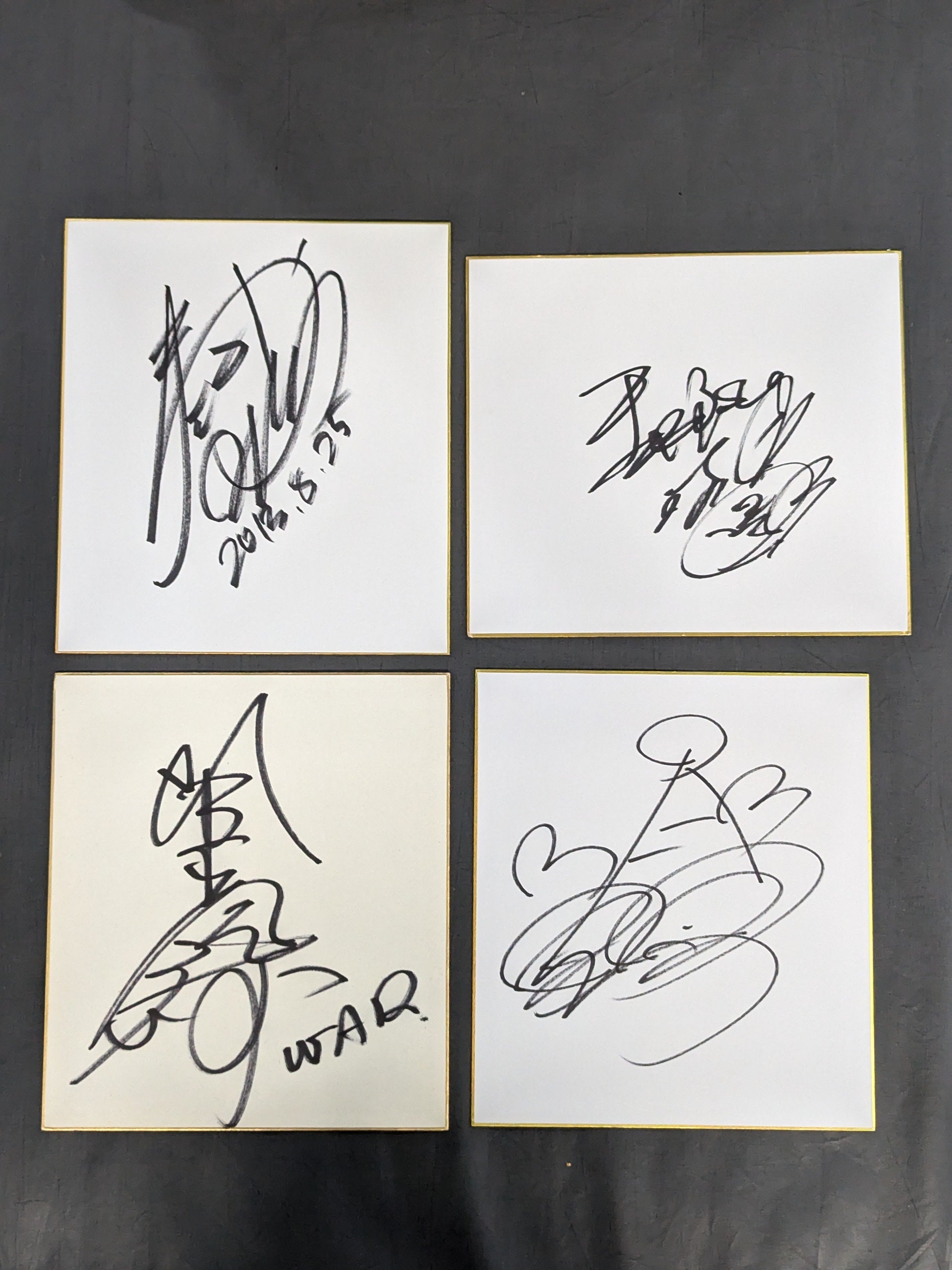 Akito, Keisuke Ishii , Keiji Ishikawa, Yuki Ishikawa, Yuki Ishikawa, Yushinriki, Ryukaku Izumida, Gota Ihashi, Apostle Ueda, Takao Omori, Keisuke Okuda, Yusaku Obata, Resentful Spirit, KAZUMA SAKAMOTO, Kamikaze, Ryo Kawamura, Kung Fu Naki (Katsuichi Funaki), Mitsuhiro Kitamiya (Kitamiya Masa ), Captain Noah (Jado ), Koki Kitahara , Kuishinbo Kamen , K-ness., Great Kojika , Kzy, Ken45°, KENSO, Shuji Kondo , Takashi Sugiura, Super Delfin , The Great Sasuke , Sambo Asako, more than 30 fighters hand signed autograph Shikishi ( Autograph board ) set!