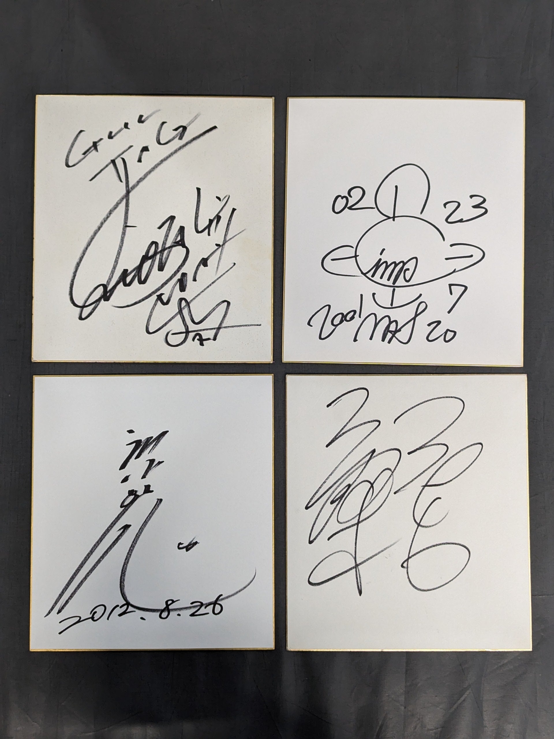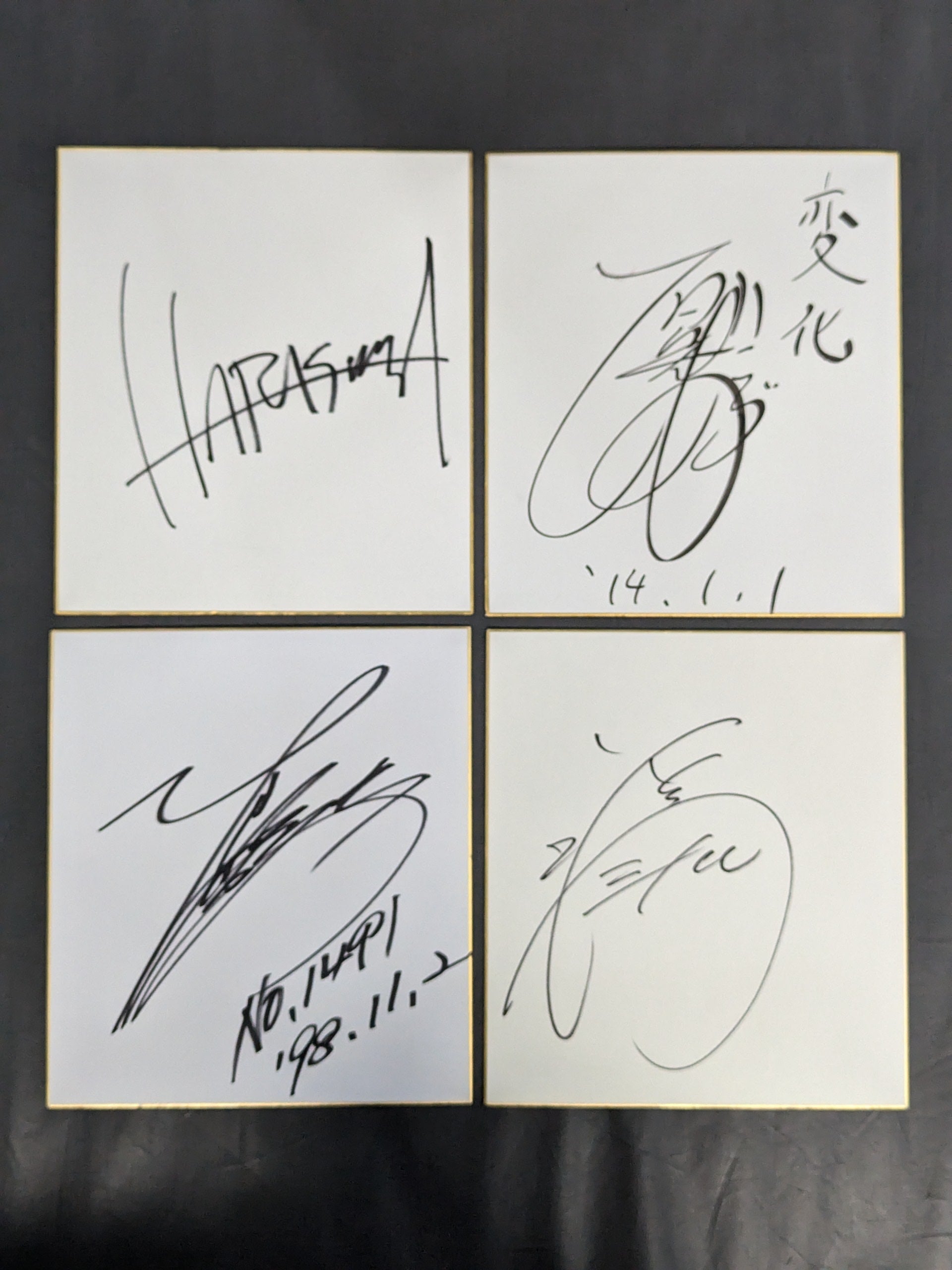 Go Shiozaki , CIMA, SUWAMA , Sanshiro Takagi, Shunji Takano, TAKA Michinoku , Masashi Takeda , Devil Murasaki, Akira Tozawa , Don Arakawa, Mitsuya Nagai, Katsuhiko Nakajima , Yasufumi Nakanoue , Nobuichi Nakano, Osamu Namiguchi, The Great Sasuke , HARASHIMA, Daisuke Harada, Ikuto Hidaka , Minoru Fujita , Yoshiaki Fujiwara , Norio Honaga , Masa Takanashi, MASA Michinoku (The Great Sasuke ), Muscle Sakai, Mr. Yannosuke. Milan Collection A.T., Kazunari Murakami, Kazuo Yamazaki, Yoshihisa Yamamoto, hand signed autograph of more than 30 fighters Shikishi ( Autograph board ) set!