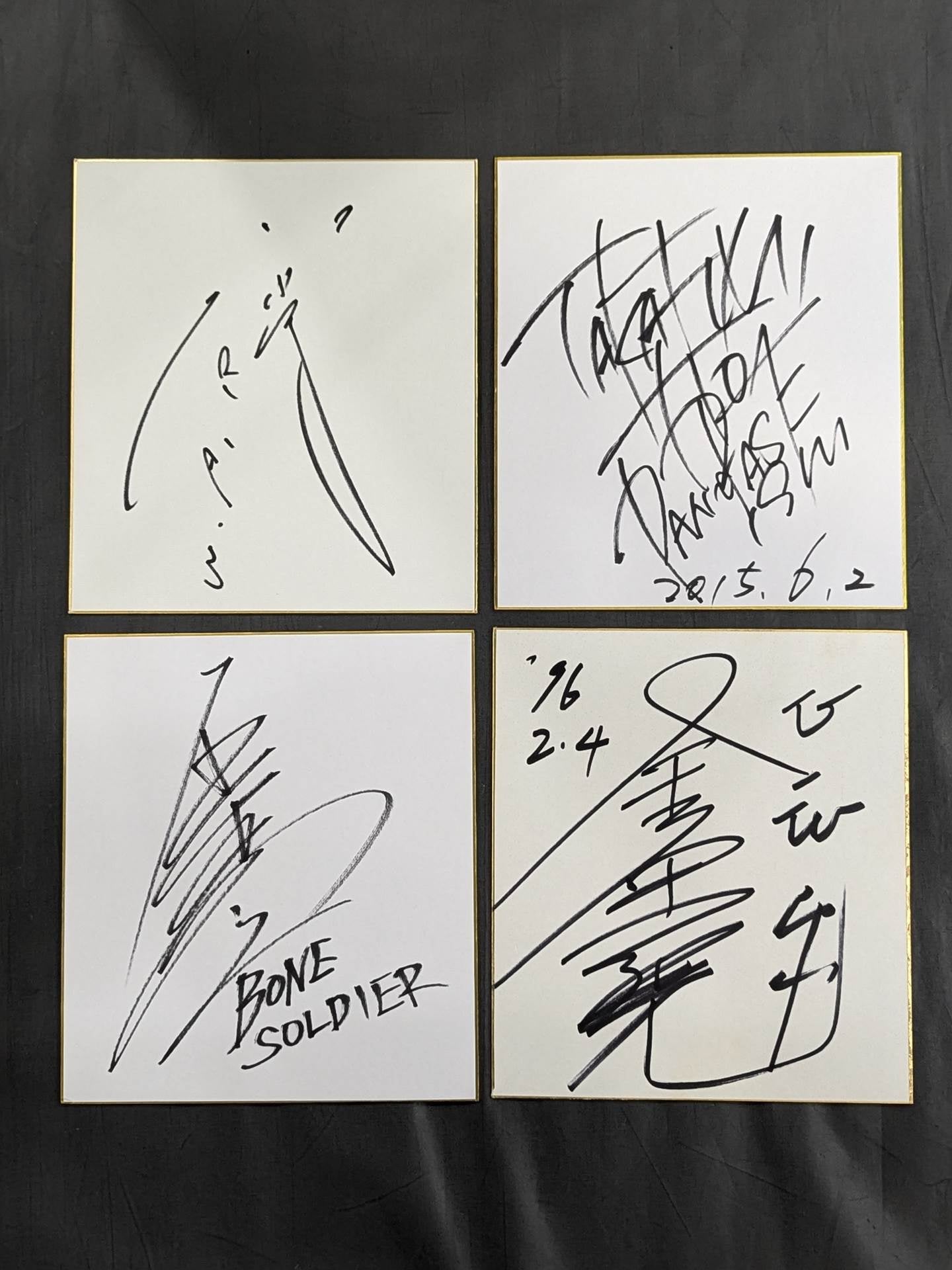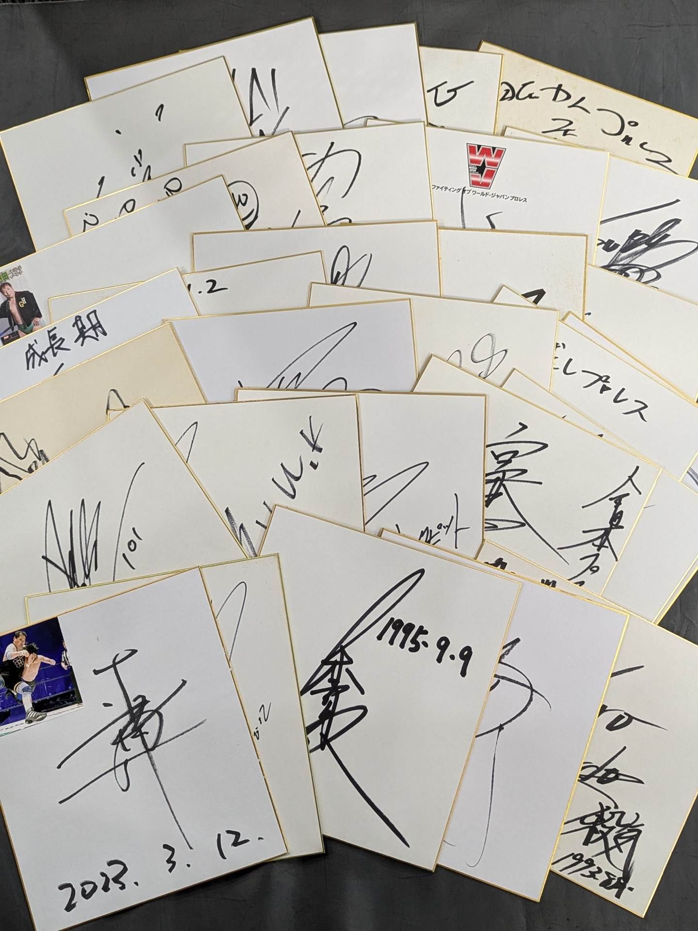 Tomohiro Ishii, Taiji Ishimori , Takashi Ito, Hiromitsu Kanehara, Juta Kara, Gran Hamada , SHINOBI, Takuya Sugawara, Kenso Suzuki, Spell Kakao, Manabu Soya , Super Electric Warrior Batranger Z, Tigre Blanco (TAJIRI), HERO! (HARASHIMA), Minoru Fujita , Masakatsu Funaki , Poison Sawada, Norio Honaga , Kengo Mashimo , Yuko Miyamoto , Aya Miyake, Shigeo Miyato, Yumitsu Miyato, Kazushi Miyamoto, Masato Yakushiji, Yoshiaki Yatsu , Manabu Yamada, Yoshihisa Yamamoto, Masato Yoshino, Leopard Negro (Hanzo Nakajima), more than 30 fighters hand signed autograph Shikishi ( Autograph board ) set !